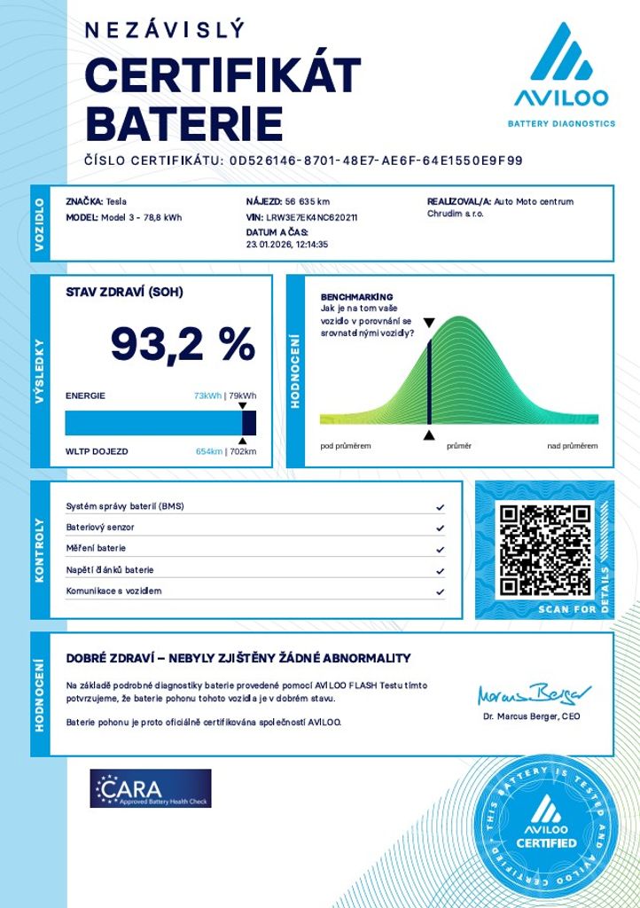 | Doplňující popis: | PRODÁNO Tesla Model 3 Long Range - FSD 366 kW SOH 93, 2% (ODPOČET DPH) - cena uvedena vč. DPH, baterie 78, 8 kWh, dovoz: Německo, VIN: LRW3E7EK4NC620211, elektro, do provozu: 23.9.2022, najeto: 56636 km, pohon kol: 4x4, automatická převodovka, STK do: 10/2027, WLTP 602 km, procesor AMD RYZEN, BOOM BOX, klimatizace, parkovací kamera, přední a zadní vyhřívaná sedadla, FSD - AUTOPILOT za 200.000 Kč. Záruka na Akumulátor a hnací ústrojí 8 let nebo po ujetí 192.000 km (podle toho, co nastane dříve).*MOŽNOST VYKOUPENÍ VAŠEHO STARÉHO VOZU PROTIÚČTEM* *MOŽNOST VÝHODNÉHO FINANCOVÁNÍ už bez nulové akontace* Pro nezávaznou kalkulaci nás neváhejte kontaktovat. Nutno vždy volat předem! Prohlídky možné i mimo pracovní dobu tel. 732710796 Mates auto. Nejedná se o návrh na uzavření smlouvy (nabídku) dle § 1731 zákona č. 89/2012 Sb., občanský zákoník, ale o nezávaznou nabídku., | |