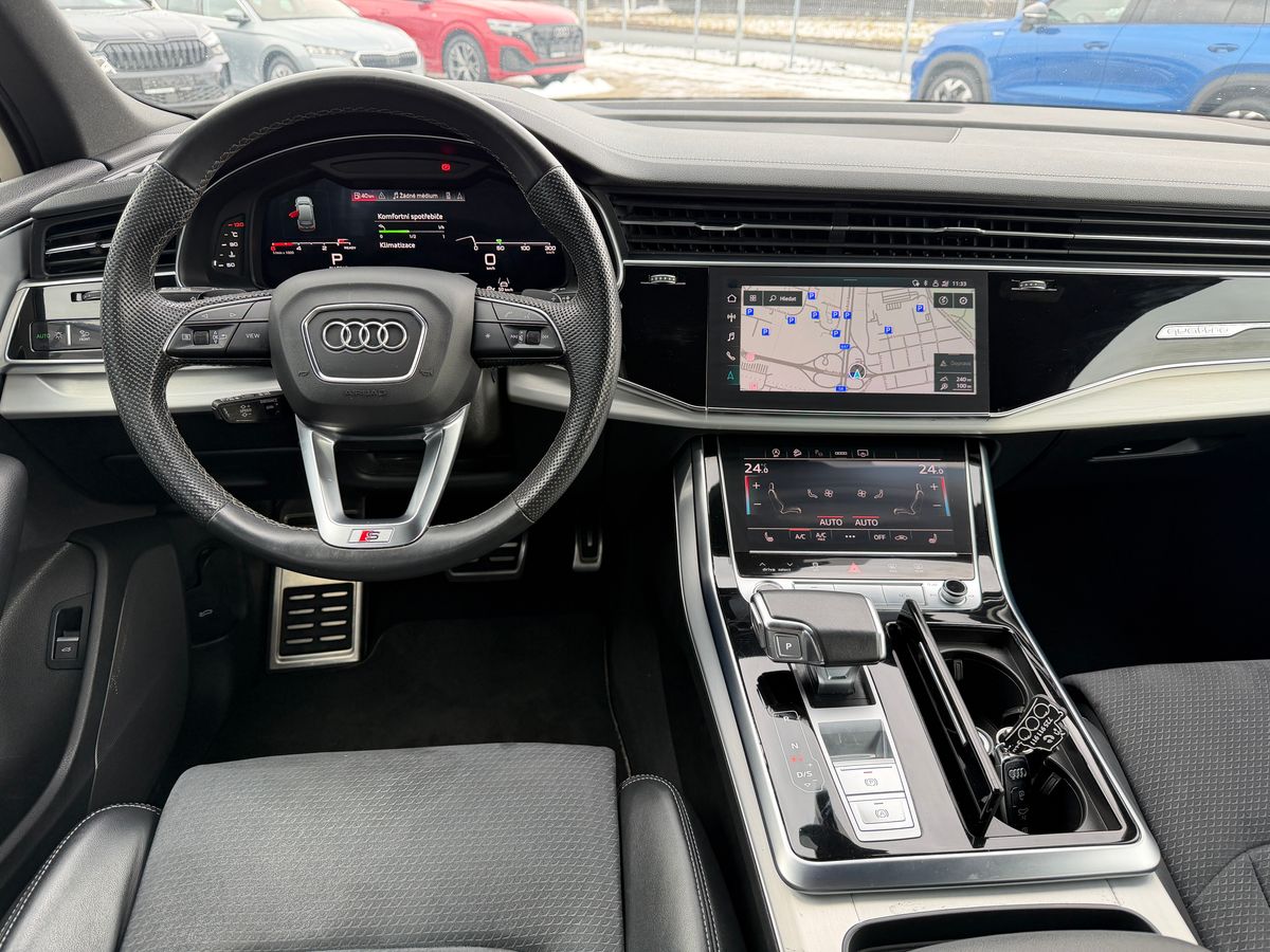 | Nadstandardní výbava: | senzor tlaku v pneumatikách, imobilizér, bezklíčové odemykání, bezklíčové startování, start-stop systém, palubní počítač, USB, satelitní navigace, digitální přístrojový štít, Apple CarPlay, multifunkční volant, vyhřívaný volant, nastavitelný volant, klimatizovaná přihrádka, zadní loketní opěrka, výškově nastavitelné sedadlo řidiče, výškově nastavitelná sedadla, vyhřívaná sedadla, sportovní sedadla, isofix, el. seřiditelná sedadla, zadní stěrač, denní svícení, mlhovky, alu kola, vyhřívaná zrcátka, el. sklopná zrcátka, senzor stěračů, el. přední okna, el. okna, el. víko zavazadlového prostoru, centrální zamykání, řazení pádly pod volantem, pérování vzduch, aut. klimatizace, centrál dálkový, adaptivní tempomat, parkovací senzory zadní, venkovní teploměr, stabilizace podvozku (ESP), protiprokluzový systém kol (ASR), pohon 4x4, aut. převodovka, 8 rychlostních stupňů, plní 'EURO VI', ABS, | |