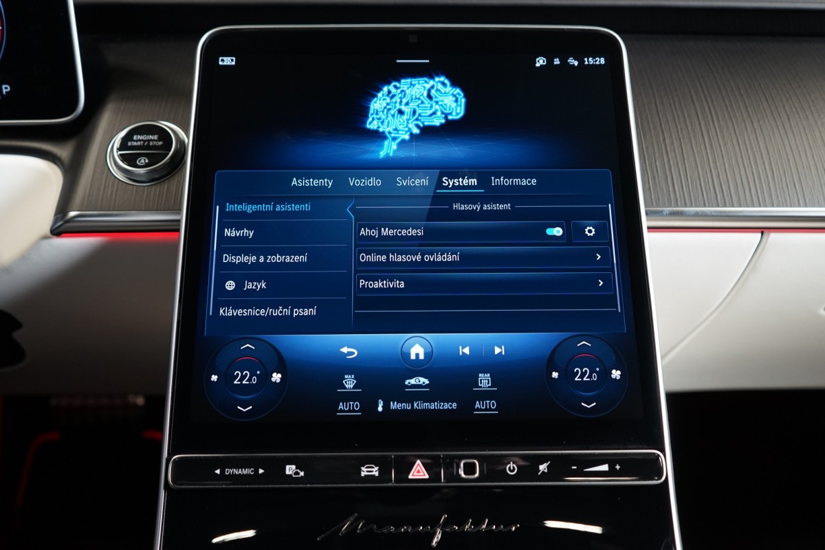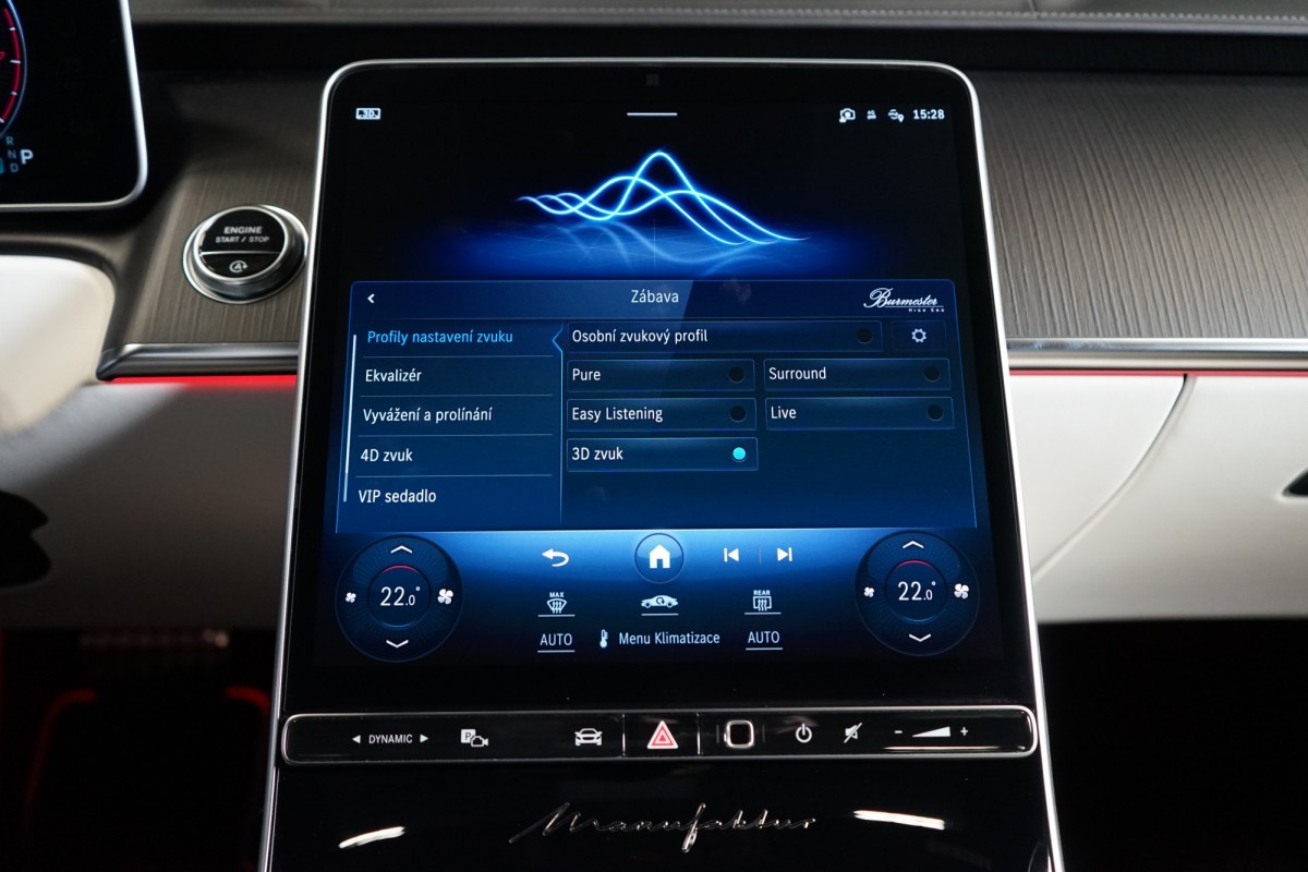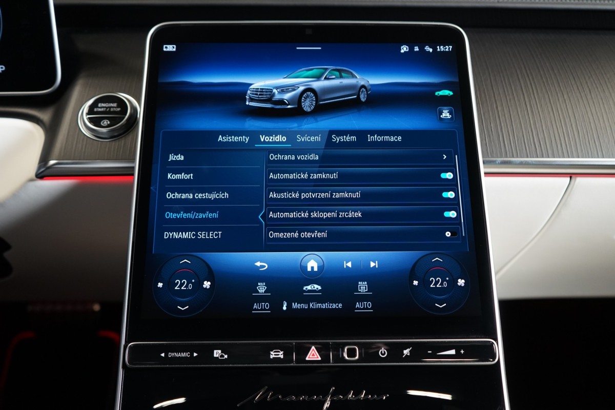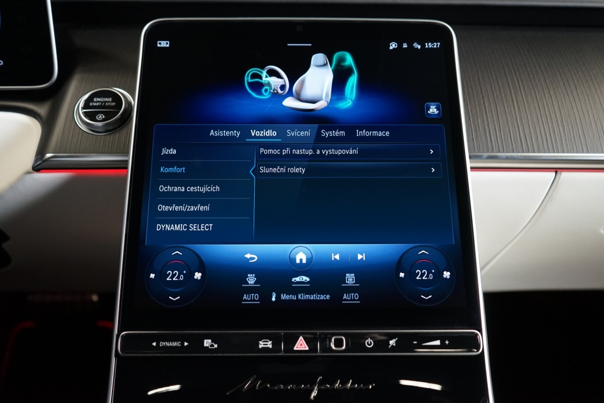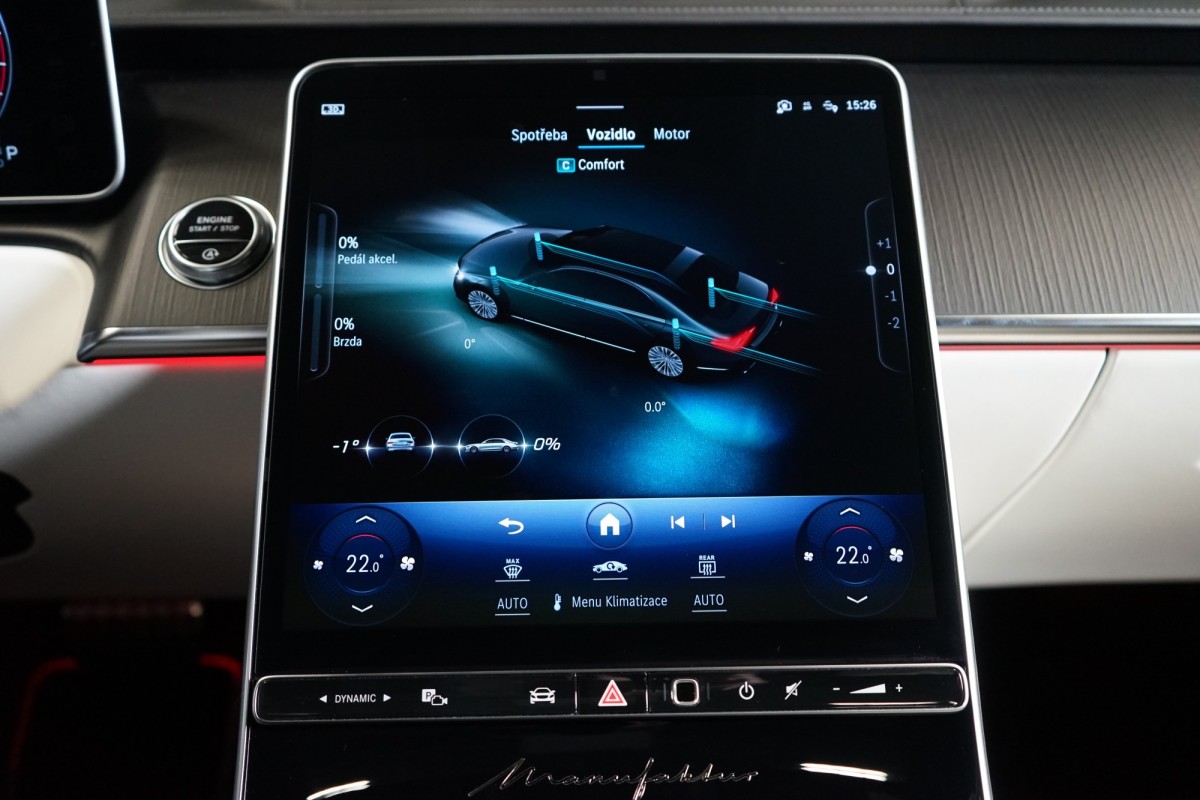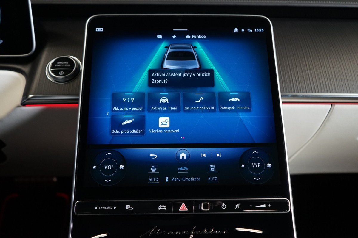 | Doplňující popis: | AS261584 Záruka: Vůz je v plnohodnotné tovární záruce Výbava: Barva: MANUFAKTUR Night Magno, černá Čalounění: MANUFAKTUR Kůže Exclusiv, bílá/žlutá 21 vícepaprsková kola AMG Sportovní brzdová soustava Sada linie AMG Sada pro integrování smartphonu Apple CarPlay, Android Auto Řízení zadní nápravy Elektrické nastavení zadních opěradel a opěrek hlavy Tempomat s regulací odstupu Plus (DISTRONIC PLUS) Aktivní parkovací asistent Adaptivní vnitřní osvětlení v zadní části vozidla Aktivní asistent jízdního pruhu (kamera) Vnitřní a vnější zrcátka s automatickou změnou odrazivosti Příčná podpora DISTRONIC PLUS (DTR+Q Paměťová sada (sedadlo řidiče, sloupek řízení a zrcátka) Paměťová funkce v zadní části vozu Automatická parkovací služba (parkování s obsluhou) Elektrická sluneční roleta v levých a pravých zadních dveřích Možnost nakládání přes loketní opěrku vzadu Světlomety LED digitální Funkce projekce přes světlomety linie Skener otisku prstu Přitápění zezadu na krk v zadní části vozidla Masáž lýtek v zadní části vozidla Prahová lišta MANUFAKTUR Klimatizace předních sedadel Klimatizace zadních sedadel Multikonturové sedadlo v zadní části vozidla Panoramatické posuvné skleněné střešní okno Dvoubarevný volant MANUFAKTUR Automatická 9stupňová převodovka Funkce projekce přes světlomety symboly Sedadlo závislé na dynamice jízdy vlevo a vpravo Inteligentní / sklopné komfortní opěrky hlavy vpředu Funkce projekce přes světlomety animace Vyhřívaný volant Head,up displej s rozšířenou realitou Dotyková obrazovka vzadu (touchscreen rear) 3D kombinovaný displej Nastavování sedadla spolujezdce řidičem Sedadlo s funkcí lehátka Kontrola tlaku v pneumatikách (RDK) AIRMATIC DC / vzduchové odpružení semiaktivní Kamera 360° Přední a zadní parkovací senzory Dálkově ovládané parkování Premium Rozpoznávání dopravních značek Ochranný kryt vozidla Digitální rádio se standardem DAB Elektrická roleta pro zadní okno Automatická regulace rychlosti Projekce loga přes zrcátko 4zónová automatická klimatizace Vnitřní obložení střechy mikrovlákno černé Automatické zapínání dálkových světel Plus (IHC+) Paket USB Doplňkový rozsah ozdobných prvků Soundsystém Burmester 4D, High End Digitální TV tuner Sklo s tmavým tónováním Hands,free access MAGIC VISION CONTROL vč. vyhřívaných ostřikovačů Ambientní osvětlení Premium Bezdrátové nabíjení telefonu v přední části Bezdrátové nabíjení telefonu v zadní části Vyhřívaná nádržka ostřikovačů ISOFIX Komfortní vyhřívání předních sedadel Komfortní vyhřívání sedadel vzadu Sedan dlouhý Aktivní asistent změny jízdního pruhu Rozšířené rozjíždění při provozu Stop,And,Go Asistent nouzového zastavení s varováním hands,off při změně jízdního pruhu Supersportovní volant, kůže s hlubokou ražbou Vozidlo s 4MATIC / pohonem všech kol Paket Chauffeur s paměťovou funkcí Paket sluneční ochrany Sada pro kvalitní vzduch Sada komfortních sedadel v zadní části Noční paket Sada MANUFAKTUR Paměťová sada vpředu Navigace MBUX Premium Podavač bezpečnostního pásu v zadní části vo | |