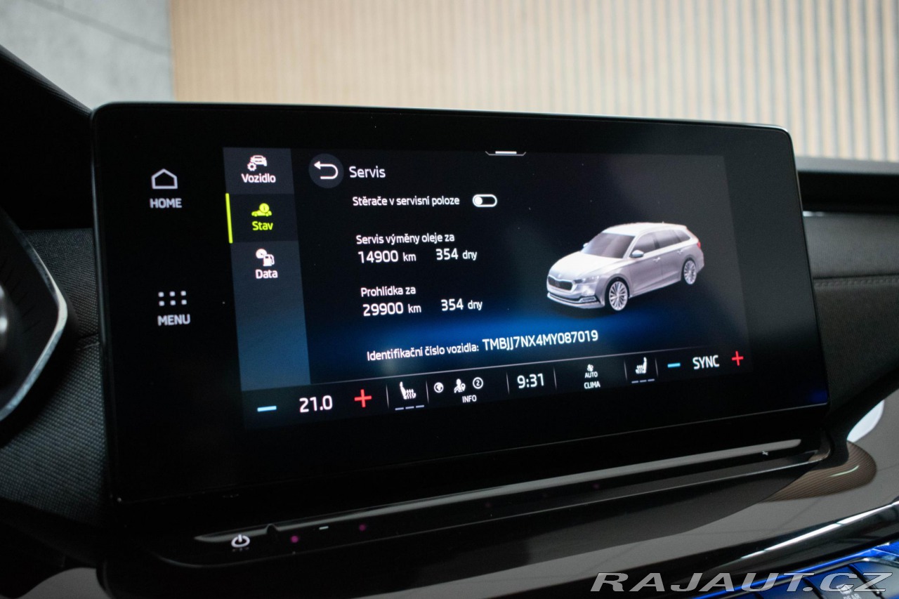 | Doplňující popis: | K vozu sada originálních letních kol. Vozidlo registrované jako nové v Německu. Pravidelně servisováno, aktuálně po výměně rozvodů, oleje v DSG, motorového oleje a filtrů. Nová STK. Historie vozidla prověřena společností CEBIA, na vyžádání lze zaslat Cebia report mailem. Vysoký výbavový stupeň First Edition. Z volitelné výbavy: Matrix LED světlomety, Head-up displej, Adaptivní tempomaty, Lane Assist + Rozpoznání dopravních značek, Asistent mrtvého úhlu, Travel Assist, 4x vyhřívané sedačky, volant a čelní sklo, Elektrické přední sedačky s pamětí, Elektrické víko kufru (virtuální pedál), Parkovací kamera a parkovací asistent, Keyless, Třízónová klimatizace, Bezdrátová nabíječka telefonu, Tažné zařízení. | |
