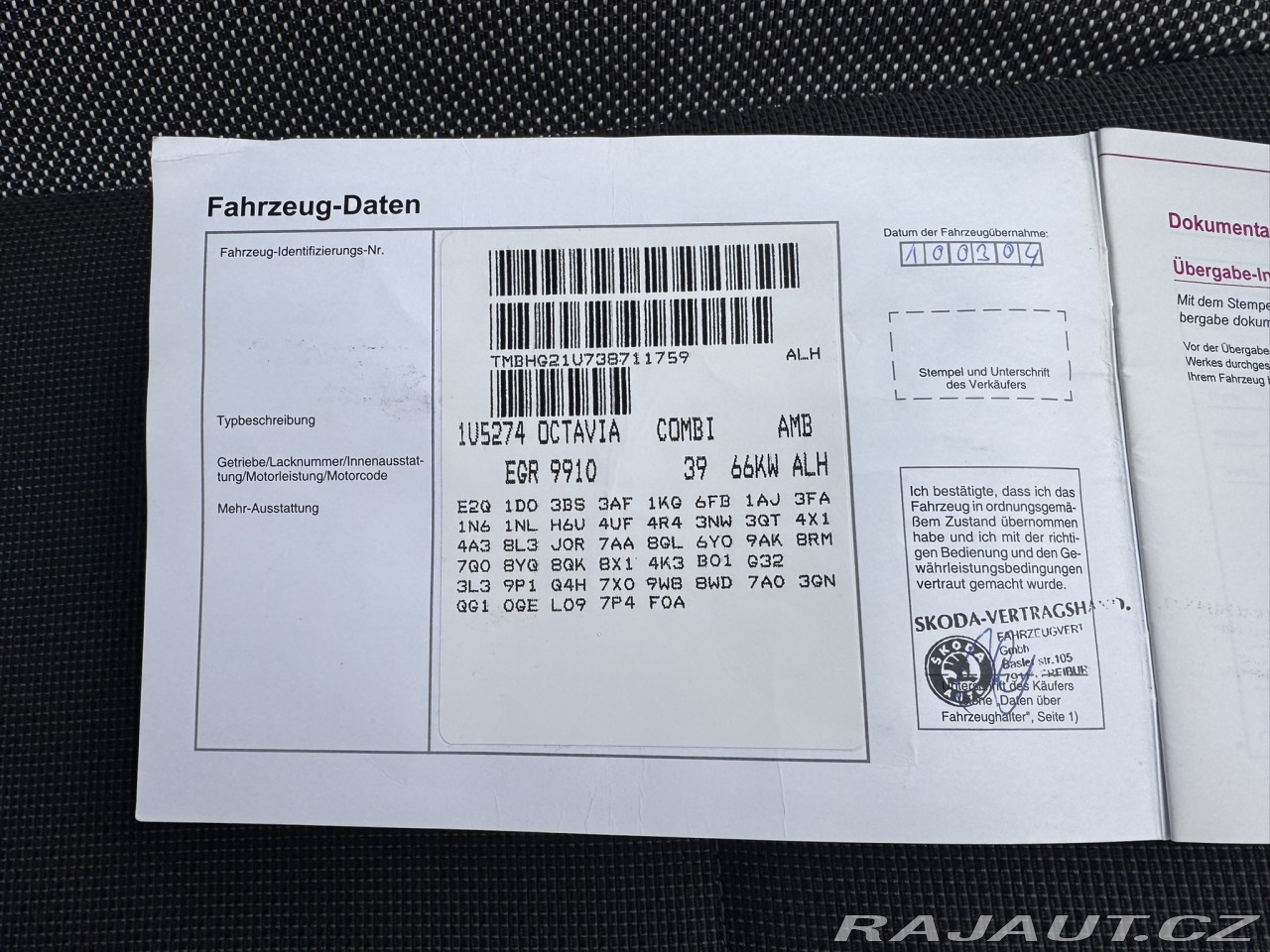 | Doplňující popis: | EDICE COLECTION, TDI 66 KW(ROTAČNÍ ČERPADLO)-VELICE DOBRÁ MOTORIZACE, SERVISNÍ KNIHA, XENONY, DVA KLÍČE, ROZVODY MĚNĚNY PŘI 240 TKM, TAŽNÉ ZAŘÍZENÍ NA 1300KG, NEZÁVISLÉ TOPENÍ+DÁLKA, NOVÉ TLUMIČE+PRUŽINY+ZADNÍ DÍL VÝFUKU, ZÁNOVNÍ BRZDY, VÝHŘEVY, TEMPOMAT, CLIMATRONIC, ZIMNÍ PNEUMATIKY, PALUBNÍ PC, 2X LOKETNÍ OPĚRKA, DOBRÝ MECHANICKÝ STAV, ZÁNOVNÍ STK DO 12/2027, PŘI PRODEJI POMOHU S POJIŠTĚNÍM VOZU. Najeto: 266 140 km Vyrobeno: 2004 V provozu od: 2/2004 VIN: TMBHG21U738711759 Klimatizace: Automatická Počet airbagů: 4 Počet dveří: 5 Počet míst: 5 Palivo: Nafta Objem: 1 896 ccm Výkon: 66 kW (90 koní) Převodovka: Manuální Převodový stupeň: 5 stupňová Pohon předních kol EURO 4 Serv. knížka: Ano Země původu: Německo STK: 12/2027 ABS Airbag 4x Autorádio Centrální zamykání Dálkové centrální zamykání Dělená zadní sedadla El. ovládání oken El. ovládání zrcátek Imobilizér Isofix Klimatizace aut. Litá kola Mlhovky Nastavitelná sedadla Nastavitelný volant Originální autorádio Ostřikovače světlometů Palubní počítač Podélný posuv sedadel Posilovač řízení Protiprokluzový systém kol (ASR) Tažné zařízení Tempomat Venkovní teploměr Vyhřívaná sedadla Vyhřívaná zrcátka Výsuvné opěrky hlav Výškově nastavitelné sedadlo řidiče Xenony Zadní loketní opěrka Zadní stěrač | |