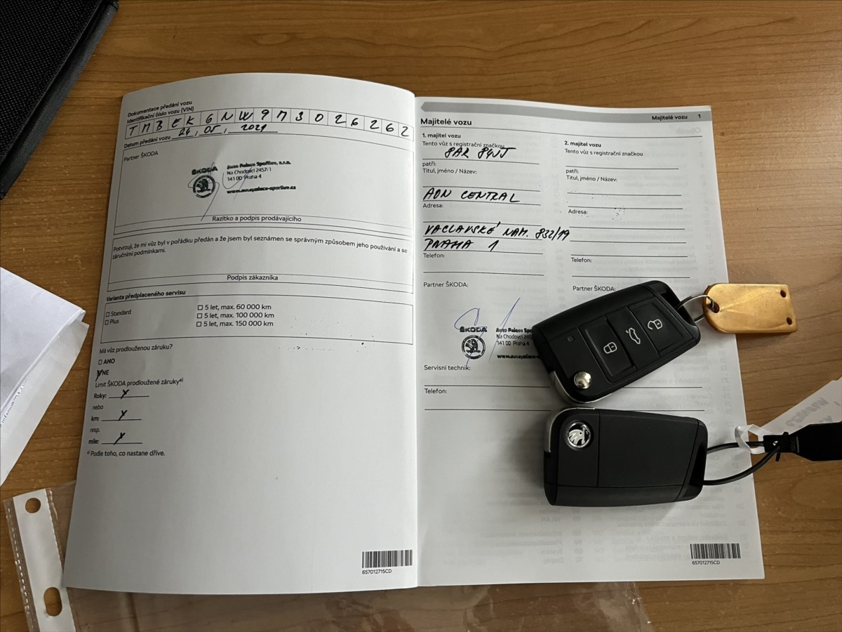 | Nadstandardní výbava: | digitální příjem rádia (DAB), USB, bluetooth, centrál dálkový, bezklíčové startování a odemykání, Apple CarPlay, imobilizér, el. okna, bezklíčové odemykání, el. zrcátka, el. sklopná zrcátka, vyhřívaná zrcátka, vyhřívané přední sklo, mlhovky, zadní světla LED, natáčecí světlomety, zatmavená zadní skla, přední světla LED, dojezdové rezervní kolo, aut. klimatizace, dělená zadní sedadla, vyhřívaná sedadla, LED denní svícení, výškově nastavitelná sedadla, nastavitelný volant, zadní stěrač, multifunkční volant, 8x airbag, deaktivace airbagu spolujezdce, palubní počítač, satelitní navigace, hlídání mrtvého úhlu, hlídání jízdního pruhu, venkovní teploměr, isofix, litá kola, senzor opotřebení brzdových destiček, ABS, ambientní osvětlení interiéru, EDS, protiprokluzový systém kol (ASR), stabilizace podvozku (ESP), brzdový asistent, řazení pádly pod volantem, aut. zabrždění v kopci, senzor tlaku v pneumatikách, posilovač řízení, aut. převodovka, 7 rychlostních stupňů, pohon 4x2, parkovací kamera, tempomat, parkovací senzory přední, parkovací senzory zadní, startování tlačítkem, senzor stěračů, senzor světel, přední pohon, start-stop systém, | |