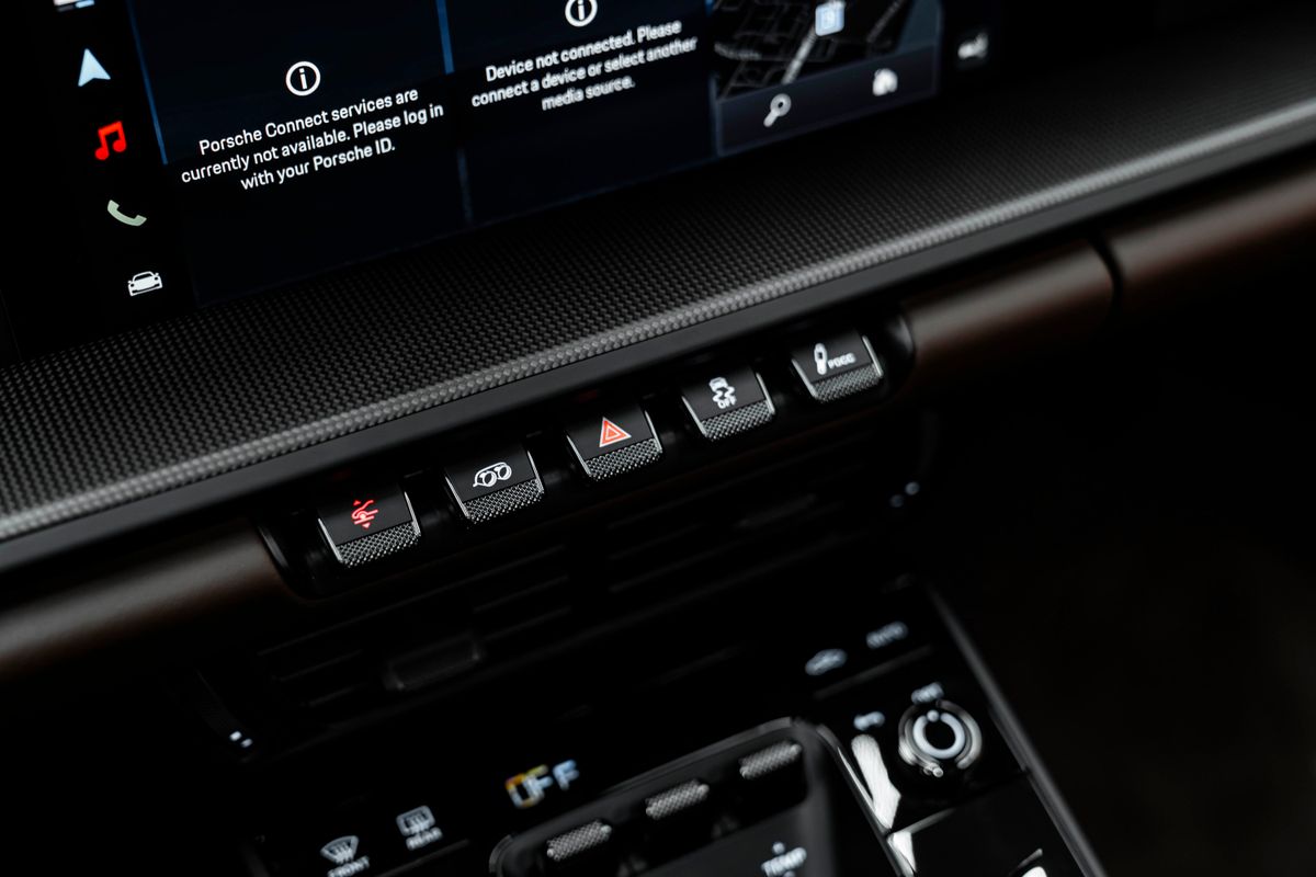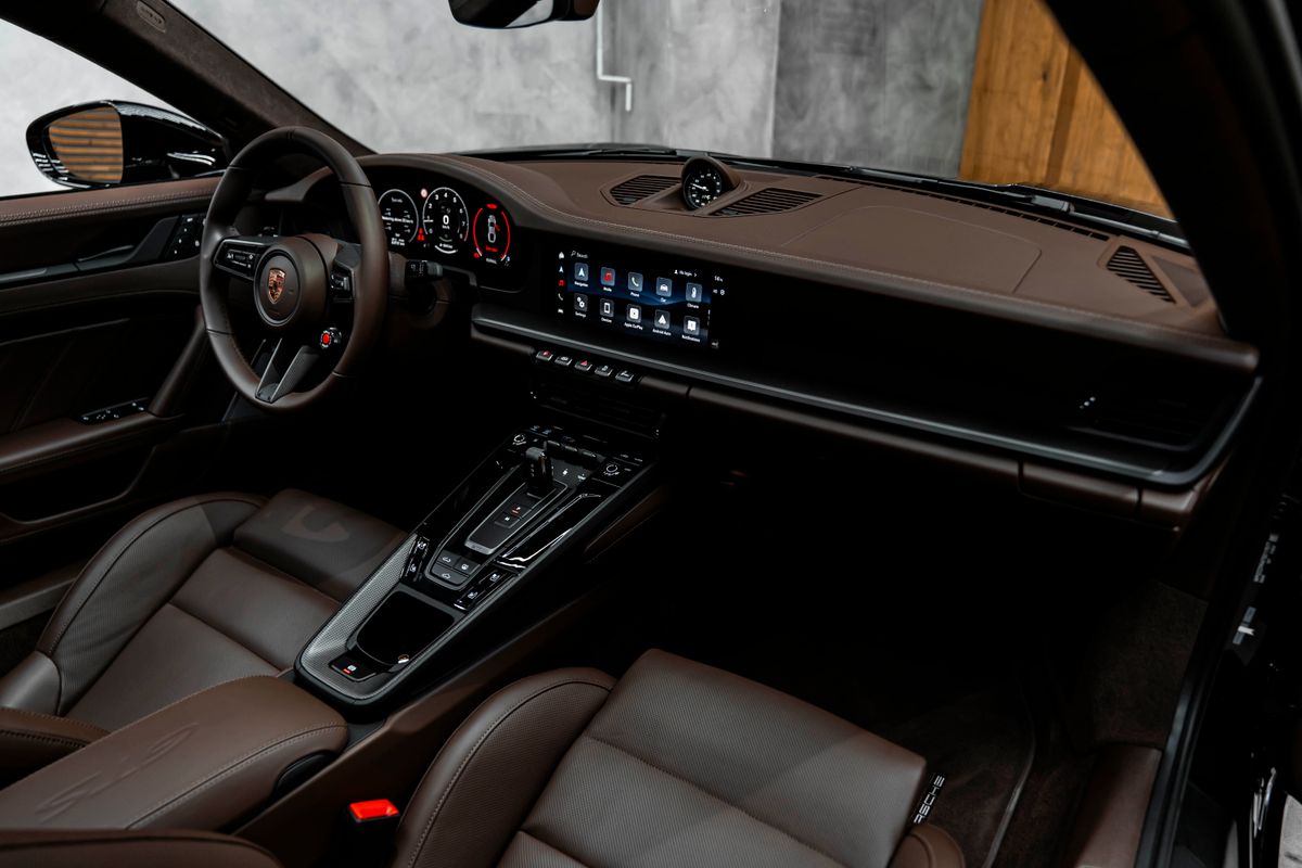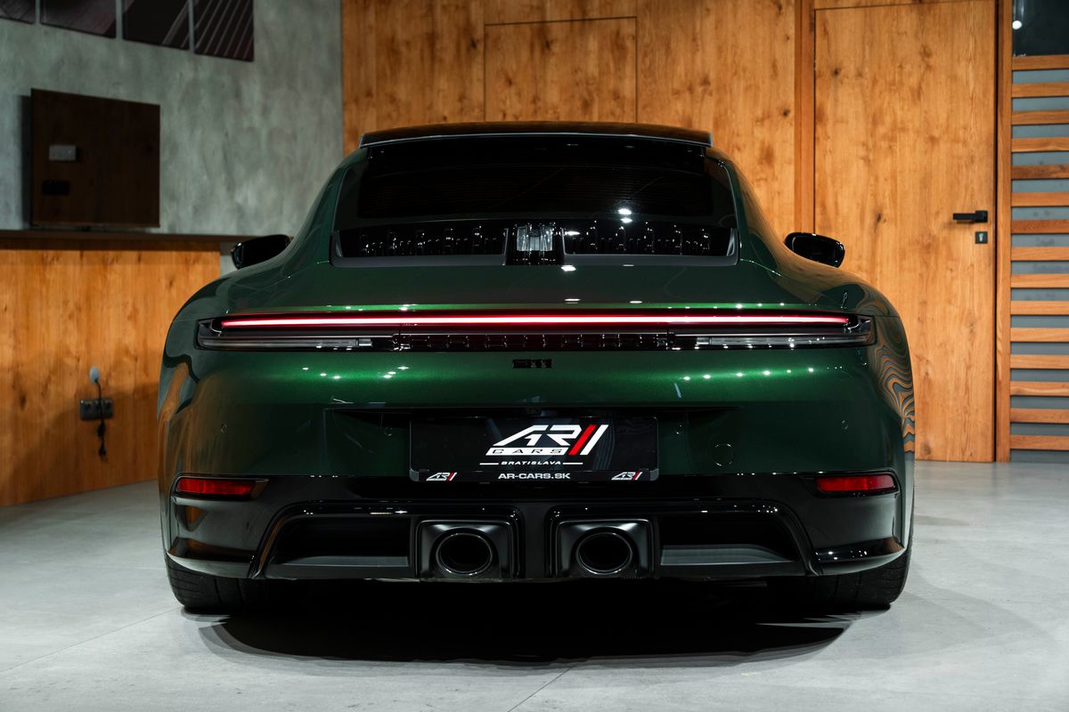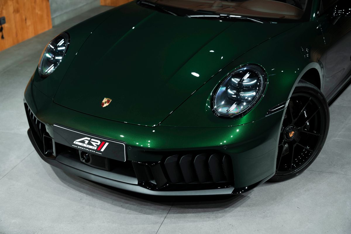 | Doplňující popis: | Bratislava Porsche 911 Carrera GTS Coupé (generácia 992.2) Mimoriadne vkusná konfigurácia – kombinácia laku Oak Green s interiérom Truffle Brown a karbónovými doplnkami je absolútna klasika v modernom podaní. Základné informácie Model: Porsche 911 Carrera GTS Coupé (992) Motor: 3,6-litrový (nový T-Hybrid systém) PPF: Ochranná fólia laku je aplykovaná na celej karosérii Exteriér N4 – Oak Green Metallic Neo: Metalíza v ikonickom odtieni dubovej zelenej (nová verzia Neo) 2D5 – Exterior Package painted in Black (high-gloss): Exteriérový paket lakovaný v čiernej farbe (vysoký lesk) QJ4 – Side window trims in Black (high-gloss): Lišty bočných okien v čiernej farbe (vysoký lesk) 8VH – Exclusive Design taillights: Zadné svetlá v špecifickom dizajne Exclusive 2W6 – Exclusive Design fuel filler cap: Viečko palivovej nádrže v dizajne Exclusive 1LR – Brake calipers painted in Black (high-gloss): Brzdové strmene lakované v čiernej farbe (vysoký lesk) 7M8 – Illuminated door sill guards in Carbon matt: Osvetlené prahové lišty z matného karbónu 2PF – GT Sports Steering Wheel in leather with matte carbon trim: Športový GT volant v koži s prvkami z matného karbónu a vyhrievaním 6E3 – Model designation on storage compartment lid: Označenie modelu na veku odkladacej priehradky (stredová opierka) Strecha a presklenie 3FE – Electric slide/tilt glass sunroof: Elektrické sklenené strešné okno (posuvné/výklopné) Q1J – Adaptive Sports Seats Plus (18-way): Adaptívne športové sedadlá Plus (18-smerové, elektrické) s pamäťovým paketom Interiér a čalúnenie HY – Club Leather Interior in Truffle Brown: Interiér z výberovej kože (Club Leather) vo farbe hľuzovková hnedá 3HB – Leather Package 930: Kožený paket 930 (prešívanie odkazujúce na pôvodné Turbo) 5MH – Interior Package Carbon matt: Interiérový paket z matného karbónu s čiernymi akcentmi 5HD – Extended Interior Package: Rozšírený kožený paket – radiaca páka a výplne dverí v koži 2C8 – Steering column casing in leather: Kryt stĺpika riadenia v koži ALB – Cupholder trim in leather: Lemovanie držiakov na nápoje v koži AVY – Interior mirror console in Race-Tex: Konzola vnútorného spätného zrkadla v materiáli Race-Tex s kontrastným prešívaním 5XK – Sun visors in Race-Tex: Slnečné clony v materiáli Race-Tex (mikrovlákno) 3B5 – Seat belt outlet trims in Race-Tex: Kryty vývodov bezpečnostných pásov v Race-Tex-e 2TG – Sports Seat Plus backrest in leather: Zadná strana operadiel športových sedadiel v koži s dekoratívnym prvkom 3J7 – Porsche Crest embossed on headrests: Znak Porsche vyrazený na opierkach hlavy UD1 – LED door projectors: LED projektory v dverách (premietajú nápis „PORSCHE“) Sedadlá a komfort 3UG – Rear seat system: Zadný systém sedadiel (2+2 usporiadanie) 4D3 – Seat ventilation (front): Odvetrávanie predných sedadiel 2V4 – Air ioniser: Ionizátor vzduchu 4F2 – Comfort Access: Bezkľúčový prístup a štartovanie QE3 – Storage net: Odkladacia sieť v priestore nôh spolujazdca FT3 – Surround Vi | |