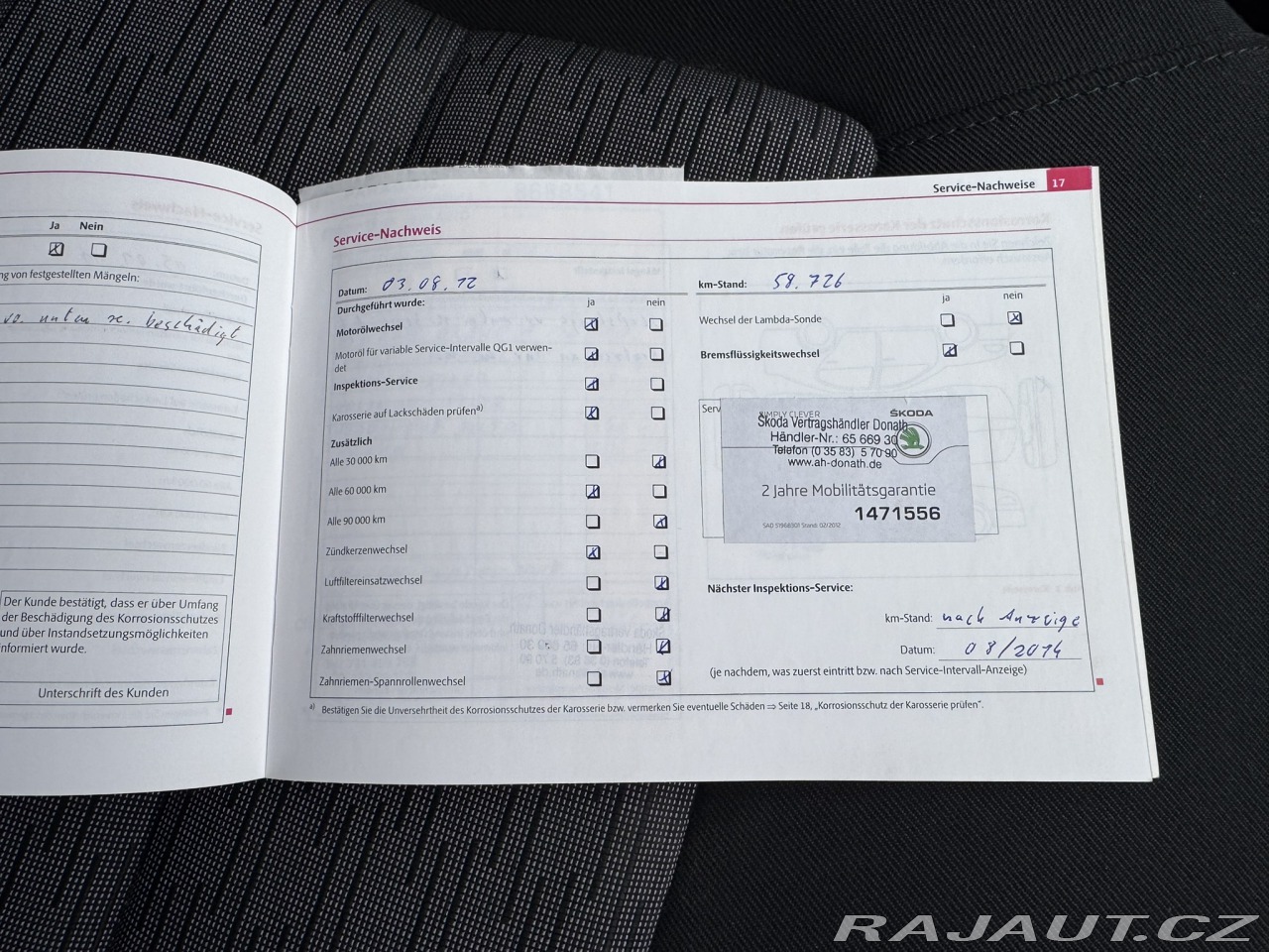 | Doplňující popis: | TŘETÍ MAJITEL, NA VOZE NOVÉ ROZVODY MOTORU+MOTOROVÝ OLEJ, TAŽNÉ ZAŘÍZENÍ NA 1200KG, ŠESTISTUPEŇ, AUTOMATIKA, ZADNÍ PARKOVACÍ SENZORY, TEMPOMAT, 2X LOKETNÍ OPĚRKA, DVOJITÉ DNO KUFRU, ZIMNÍ PNEUMATIKY, PALUBNÍ PC, PLATNÁ STK DO 3/2026, PŘI PRODEJI POMOHU S POJIŠTĚNÍM VOZU, K DISPOZICI CEBIA REPORT. Najeto: 154 426 km Vyrobeno: 2009 V provozu od: 6/2009 VIN: TMBHJ61Z1A2008209 Klimatizace: Manuální Počet airbagů: 4 Počet dveří: 5 Počet míst: 5 Benzín Objem: 1 390 ccm Výkon: 90 kW (122 koní) Převodovka: Manuální 6 stupňová EURO 5 Serv. knížka: Ano Země původu: Německo STK: 3/2026 ABS Airbag 4x Autorádio Centrální zamykání Dálkové centrální zamykání Dělená zadní sedadla Denní svícení El. ovládání zrcátek El. přední okna ESP Imobilizér Isofix Klimatizace man. Mlhovky Nastavitelná sedadla Nastavitelný volant Originální autorádio Palubní počítač Parkovací senzory zadní Podélný posuv sedadel Posilovač řízení Protiprokluzový systém kol (ASR) Senzor opotřebení brzd. destiček Senzor stěračů Tažné zařízení Tempomat Venkovní teploměr Vyhřívaná sedadla Vyhřívaná zrcátka Výsuvné opěrky hlav Výškově nastavitelné sedadlo řidiče Zadní loketní opěrka Zadní stěrač | |