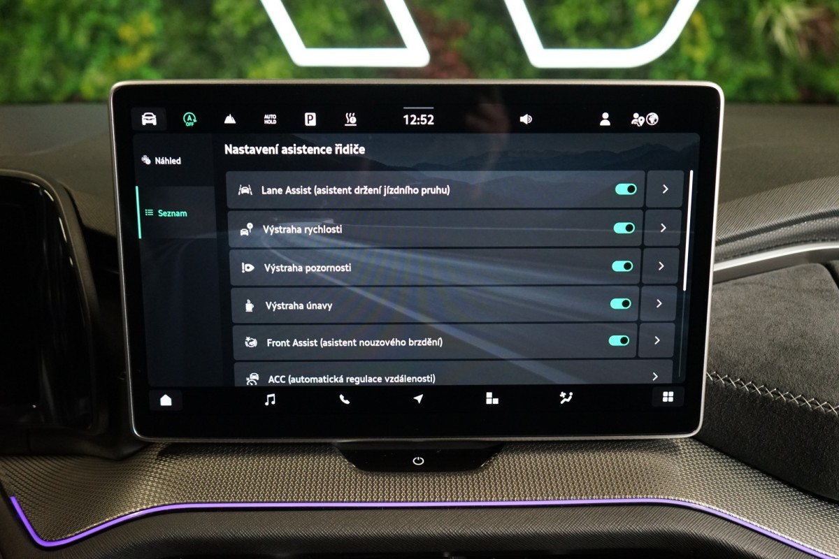 | Nadstandardní výbava: | 360° monitorovací systém (AVM), adaptivní regulace podvozku, parkovací kamera, adaptivní tempomat, ABS, ambientní osvětlení interiéru, Android Auto, Apple CarPlay, asistent jízdy v jízdním pruhu, asistent rozjezdu do kopce (HSA), asistent změny jízdního pruhu, aut. aktivace výstražných světlometů, stabilizace podvozku (ESP), protiprokluzový systém kol (ASR), brzdový asistent, aut. zabrzdění v kopci, parkovací senzory přední, parkovací senzory zadní, bezdrátová nabíječka mobilních telefonů, bezklíčové odemykání, senzor opotřebení brzdových destiček, senzor tlaku v pneumatikách, autorádio, bluetooth, USB, denní svícení, digitální příjem rádia (DAB), aut. klimatizace, dotykové ovládání palubního počítače, centrál dálkový, el. okna, centrální zamykání, el. seřiditelná sedadla, alu kola, el. startér, el. tažné zařízení, el. víko zavazadlového prostoru, hands free, satelitní navigace, head-up display, hlasové ovládání palubního počítače, hlídání jízdního pruhu, hlídání mrtvého úhlu, imobilizér, isofix, el. přední okna, senzor stěračů, LED adaptivní světlomety, LED denní svícení, LED matrixové světlomety, automatické přepínání dálkových světel, nastavitelný volant, natáčecí světlomety, nezávislé topení, nouzové brzdění (PEBS), přední světla LED, paměť nastavení sedadla řidiče, panoramatická střecha, parkovací asistent, senzor světel, zadní světla LED, regulace tuhosti podvozku, pohon 4x4, polohovací sedadla, 7 rychlostních stupňů, aut. převodovka, zadní pohon, regulace rychlosti při jízdě ze svahu, digitální přístrojová deska, digitální přístrojový štít, elektronická ruční brzda, palubní počítač, venkovní teploměr, vnitřní teploměr, volba jízdního režimu, sledování únavy řidiče, multifunkční volant, posilovač řízení, řazení pádly pod volantem, start-stop systém, podélný posuv sedadel, střešní šíbr el., tažné zařízení, tónovaná skla, třízónová klimatizace, ukazatel rychlostního limitu (SLIF), sportovní sedadla, bezklíčové startování, startování tlačítkem, vyhřívaná sedadla, vyhřívaná zadní sedadla, el. sklopná zrcátka, vyhřívané přední sklo, vyhřívaný volant, výškově nastavitelná sedadla, výškově nastavitelné sedadlo řidiče, zadní loketní opěrka, el. zrcátka, zadní stěrač, samostmívací zrcátka, zatmavená zadní skla, záruka, vyhřívaná zrcátka, | |