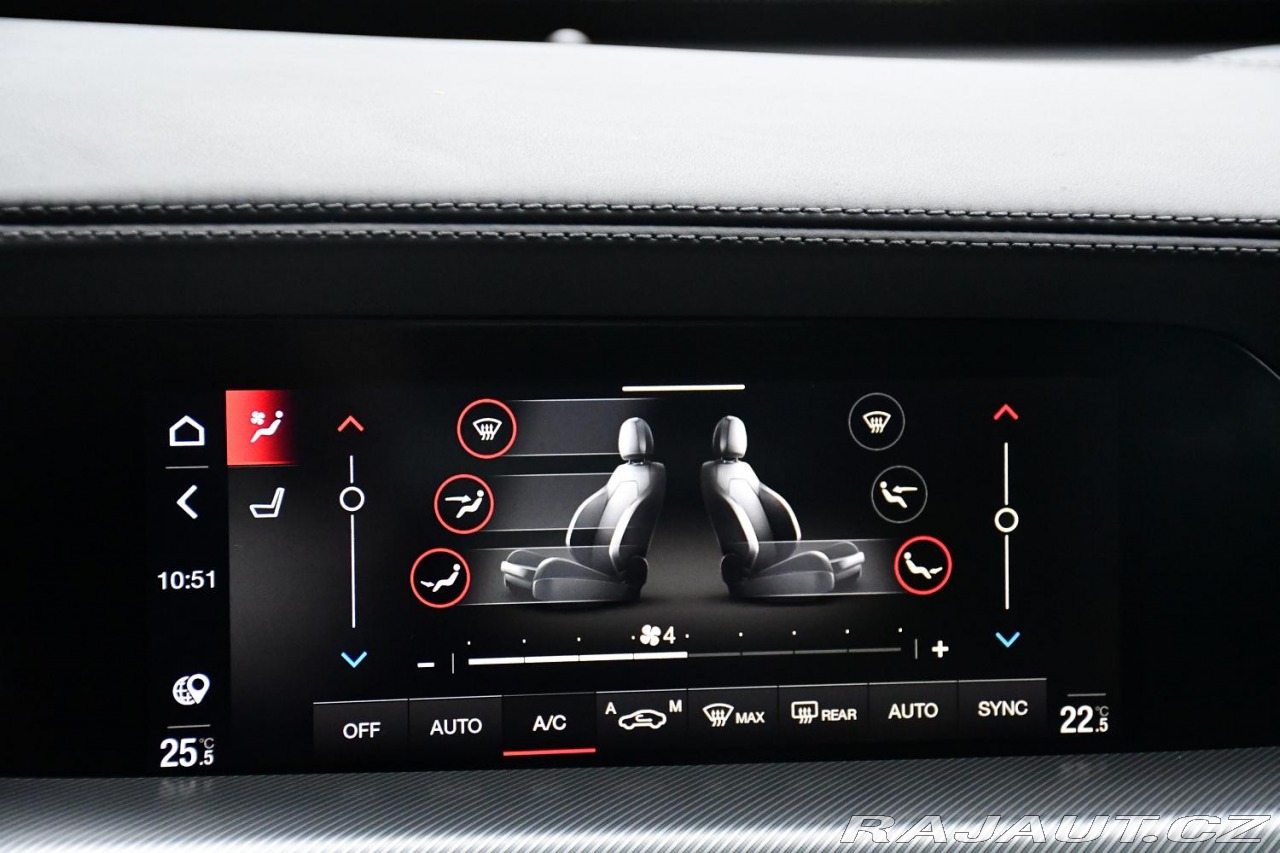 | Nadstandardní výbava: | pohon 4x4, aut. převodovka, 8x airbag, ABS, brzdový asistent, stabilizace podvozku (ESP), protiprokluzový systém kol (ASR), nouzové brzdění (PEBS), asistent rozjezdu do kopce (HSA), ukazatel rychlostního limitu (SLIF), hlídání jízdního pruhu, hlídání mrtvého úhlu, asistent jízdy v jízdním pruhu, sledování únavy řidiče, regulace tuhosti podvozku, adaptivní regulace podvozku, tažné zařízení, posilovač řízení, dvouzónová klimatizace, aut. klimatizace, adaptivní tempomat, LED adaptivní světlomety, LED denní svícení, automatické přepínání dálkových světel, alu kola, palubní počítač, hlasové ovládání palubního počítače, dotykové ovládání palubního počítače, digitální přístrojový štít, volba jízdního režimu, elektronická ruční brzda, satelitní navigace, parkovací senzory přední, parkovací senzory zadní, parkovací asistent, parkovací kamera, bezklíčové startování, bezklíčové odemykání, senzor světel, senzor stěračů, nastavitelný volant, multifunkční volant, řazení pádly pod volantem, deaktivace airbagu spolujezdce, hands free, Android Auto, Apple CarPlay, bezdrátová nabíječka mobilních telefonů, bluetooth, el. víko zavazadlového prostoru, el. okna, střešní nosič, el. sklopná zrcátka, el. zrcátka, samostmívací zrcátka, startování tlačítkem, imobilizér, centrál dálkový, centrální zamykání, potahy kůže, isofix, kožené čalounění, vyhřívaná sedadla, el. seřiditelná sedadla, výškově nastavitelná sedadla, polohovací sedadla, senzor tlaku v pneumatikách, senzor opotřebení brzdových destiček, přední světla LED, zadní světla LED, mlhovky, USB, autorádio, venkovní teploměr, zadní loketní opěrka, vnitřní teploměr, zadní stěrač, tónovaná skla, zatmavená zadní skla, el. tažné zařízení, digitální přístrojová deska, | |