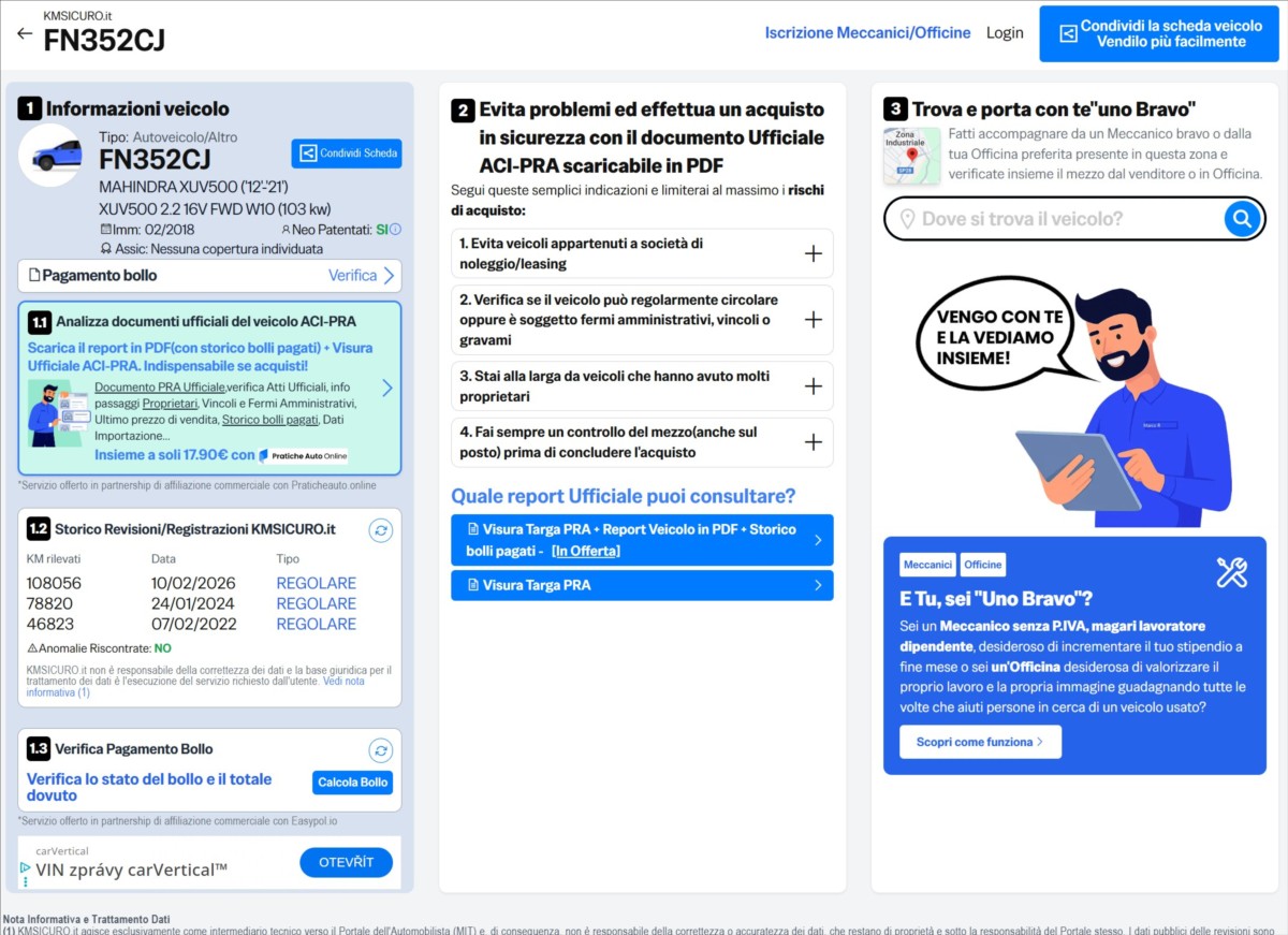 | Prověření auta: | ||