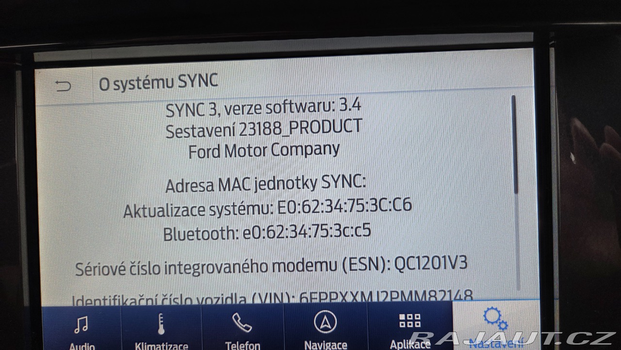 | Nadstandardní výbava: | Výbava: Pohon & technika - Automatická 10stupňová převodovka - Pohon 4×4 - Redukční převodovka - Uzávěrka zadního diferenciálu - Asistent sjíždění kopců Exteriér - LED světlomety s automatickým přepínáním dálkových světel - LED denní svícení - Mlhové světlomety - Originální alu kola Wildtrak - Boční nášlapy - Střešní ližiny a nosič THULE - Ultrazvukový plašič kun a hlodavců - Designové prvky Wildtrak - Prosklený hardtop s možností větrání výklopnými okny - Plastová vložka korby a zátěžový koberec. Interiér & komfort - Kožený interiér Wildtrak s oranžovým prošíváním - Vyhřívaná přední sedadla - Elektricky nastavitelná přední sedadla - Multifunkční kožený volant - Bezklíčové odemykání a startování - Vzdálený přístup a dálkové startování - Automatická dvouzónová klimatizace - Elektrická okna - Elektricky nastavitelná a vyhřívaná zrcátka - Tempomat - Palubní počítač Multimédia & asistenti - Dotykový infotainment Ford SYNC 3, verze SW 3.4, vč. aktualizací - Navigace - Apple CarPlay / Android Auto - Bluetooth handsfree - USB vstupy - Couvací kamera - Parkovací senzory vpředu i vzadu - Aktivní parkovací asistent - Asistent rozjezdu do kopce - Systémy stability a trakce - Rozpoznávání dopravních značek - Hlídání jízdního pruhu Doplňky Gumové koberečky v interiéru + nepoužité nové originální vyšívané koberečky Zimní pneumatiky a téměř nové letní. | |