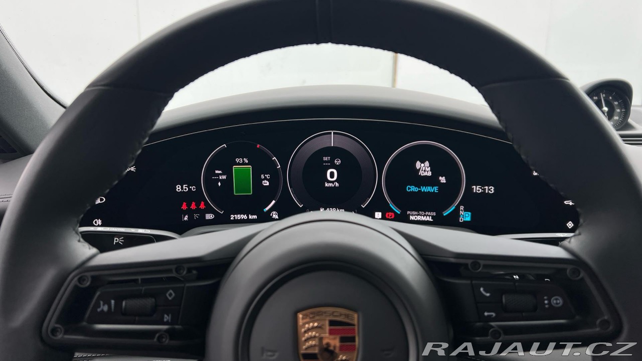 | Doplňující popis: | Původ vozu ČR. Prodloužená záruka Porsche Approved na 12 měsíců s možností prodloužení. Nadstandartní výbava: Vůz je vybaven mimo jiné černě lakovanými brzdovými třmeny (high-gloss), panoramatickou střechou, znakem Porsche na opěrkách předních sedadel, vyhříváním sedadel vpředu i vzadu a ventilací vpředu, komfortním přístupem, bočními airbagy vzadu, uspořádáním 4+1 míst, matným karbonovým interiérovým paketem, 21 koly Aero Design, vnějšími zrcátky v barvě karoserie, asistentem změny jízdního pruhu (monitoring mrtvého úhlu), HD-Matrix LED světlomety, paketem Sport Chrono s funkcí Push-to-Pass, audiosystémem BOSE® Surround Sound, kamerovým systémem Surround View s aktivní parkovací podporou, Porsche Electric Sport Sound, dovíráním dveří Soft-close, baterií Performance Battery Plus, head-up displejem, systémem Porsche InnoDrive s aktivním udržováním v jízdním pruhu, komfortními předními sedadly (14směrně elektricky nastavitelnými) s pamětí, úložným paketem, černými (high-gloss) lištami bočních oken, osvětlenými prahovými lištami z černě broušeného hliníku a tepelně i hlukově izolovanými skly včetně privacy zasklení. | |