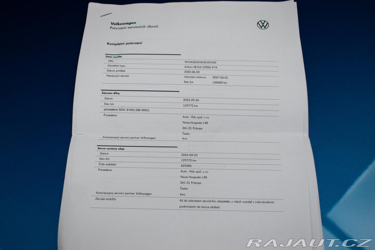 | Doplňující popis: | Vozidlo registrované jako nové v ČR od 1.majitele, s možností odpočtu DPH. Pravidelně servisováno, poslední servisní interval proveden ve 129 772 km, ve 118 841 km provedena výměna oleje v DSG . Historie vozidla prověřena společností CEBIA, na vyžádání lze zaslat Cebia report mailem. Z volitelné výbavy: Paket Assistance High, Paket Business Premium, Paket Design, Side Assist a PreCrash Plus Side Assist, ergoComfort sedadlo klimatizované, Tažné zařízení; elektricky výklopné, Zatmavená a akustická okna, Zpětná kamera, Multifunkční volant v kůži vyhřívaný, Potahy sedadel v kůži Nappa, Nezávislé topení s dálkovým ovládáním; s časovačem, Parkovací asistent Park Assist, Vyhřívané čelní sklo reflektující infračervené záření. Tato nabídka má pouze informativní charakter a neslouží jako podklad pro uzavření objednávky. STOP CARS s.r.o. si vyhrazuje právo uzavření všech smluvních vztahů písemně. | |