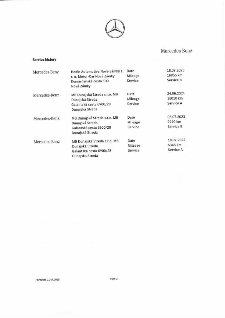| Nadstandardní výbava: | - interiér AMG Line - exteriér AMG Line - športový podvozok - multifunkčný športový volant v koži napa - disky AMG z ľahkej zliatiny s 5-lúčovým dizajnom - parkovací balík s 360-stupňovou kamerou - navigácia MBUX premium - aktívny asistent parkovania so systémom PARKTRONIC - aktívny asistent udržiavania odstupu DISTRONIC - štartovacia funkcia KEYLESS-GO - DYNAMIC SELECT - predné sedadlá elektricky nastaviteľné s pamäťovou - aktívny asistent udržiavania jazdného pruhu - vonkajšie zrkadlá elektricky sklopné - diaľkové zatváranie veka batožinového priestoru Výbava: ABS, Airbagy - počet, ASR, Brzdový asistent, Centrálne zamykanie, ESP, Imobilizér, Isofix, Parkovacia kamera, Systém kontroly tlaku v pneumatikách (TPMS), 360° kamera, Autorádio, Bezkľúčové otváranie dverí, Bezkľúčové štartovanie, Bluetooth handsfree, Diaľkové ovládanie zamykania, Dotykový displej, Elektrické okná, Elektrické sedadlá, Elektrické zrkadlá, Elektrické ovládanie kufra, Klimatizácia, Kožený interiér, Kožený paket, Lakťová opierka, LED svetlomety, LED svietenie, Multifunkčný volant, Navigačný systém, Palubný počítač, Pamäťové sedačky, Parkovacie senzory, Parkovací asistent, Vyhrievané sedačky, Vyhrievané zrkadlá, Vonkajší teplomer, Apple CarPlay, Android Auto, Virtuálny kokpit, Asistent jazdných pruhov, Asistent rozjazdu do kopca, Dažďový senzor, Hliníkové disky, Stop&start systém, Svetelný senzor | |