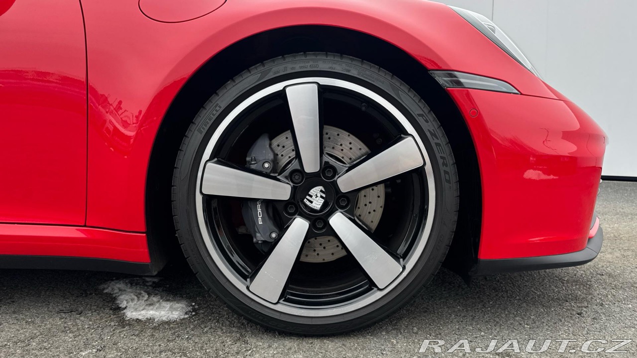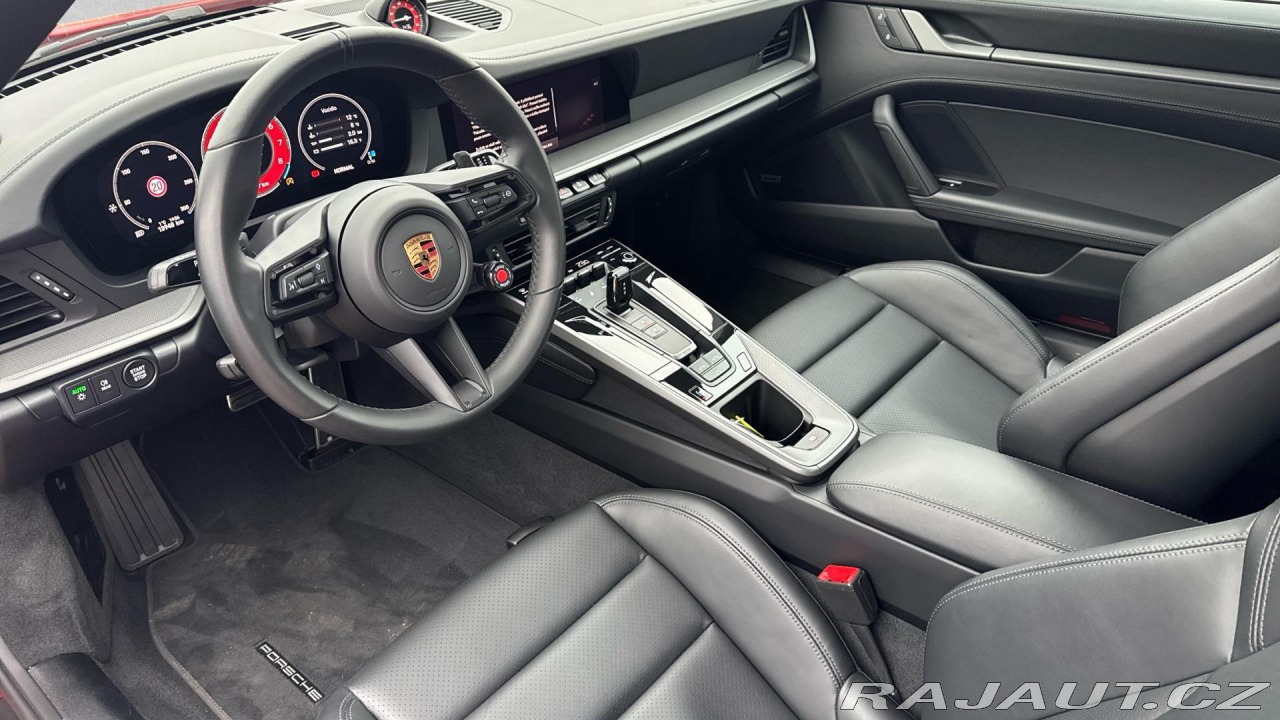 | Doplňující popis: | Původ Porsche Centrum Praha. Záruka Porsche Approved na 12 měsíců s možností prodloužení. Nadstandartní výbava: Vůz je vybaven rozšířenou palivovou nádrží (Fuel Tank 2), sportovním výfukovým systémem s koncovkami v černé barvě, posilovačem řízení Power Steering Plus, koly lakovanými v odstínu Satin Black (20/21 Carrera S), vyhřívaným GT sportovním volantem v kůži, logy „911“ a „PORSCHE“ lakovanými v černé barvě (vysoký lesk), znakem Porsche na opěrkách hlavy, komfortním přístupem, kryty spodní části zrcátek v barvě karoserie se základnami v černém vysokém lesku, asistentem změny jízdního pruhu, HD-Matrix LED hlavními světlomety, paketem Sport Chrono Package včetně aplikace Porsche Track Precision a zobrazení teploty pneumatik, adaptivním tempomatem, zadními svítilnami Exclusive Design, audiosystémem BOSE Surround Sound System, systémem Surround View s aktivní parkovací podporou, červenými kryty bezpečnostních pásů, sportovními sedadly Plus s elektrickým nastavením ve 4 směrech, LED projektory loga „PORSCHE“ ve dveřích a přístrojovým štítem Sport Chrono se stopkami a digitálním zobrazením. | |