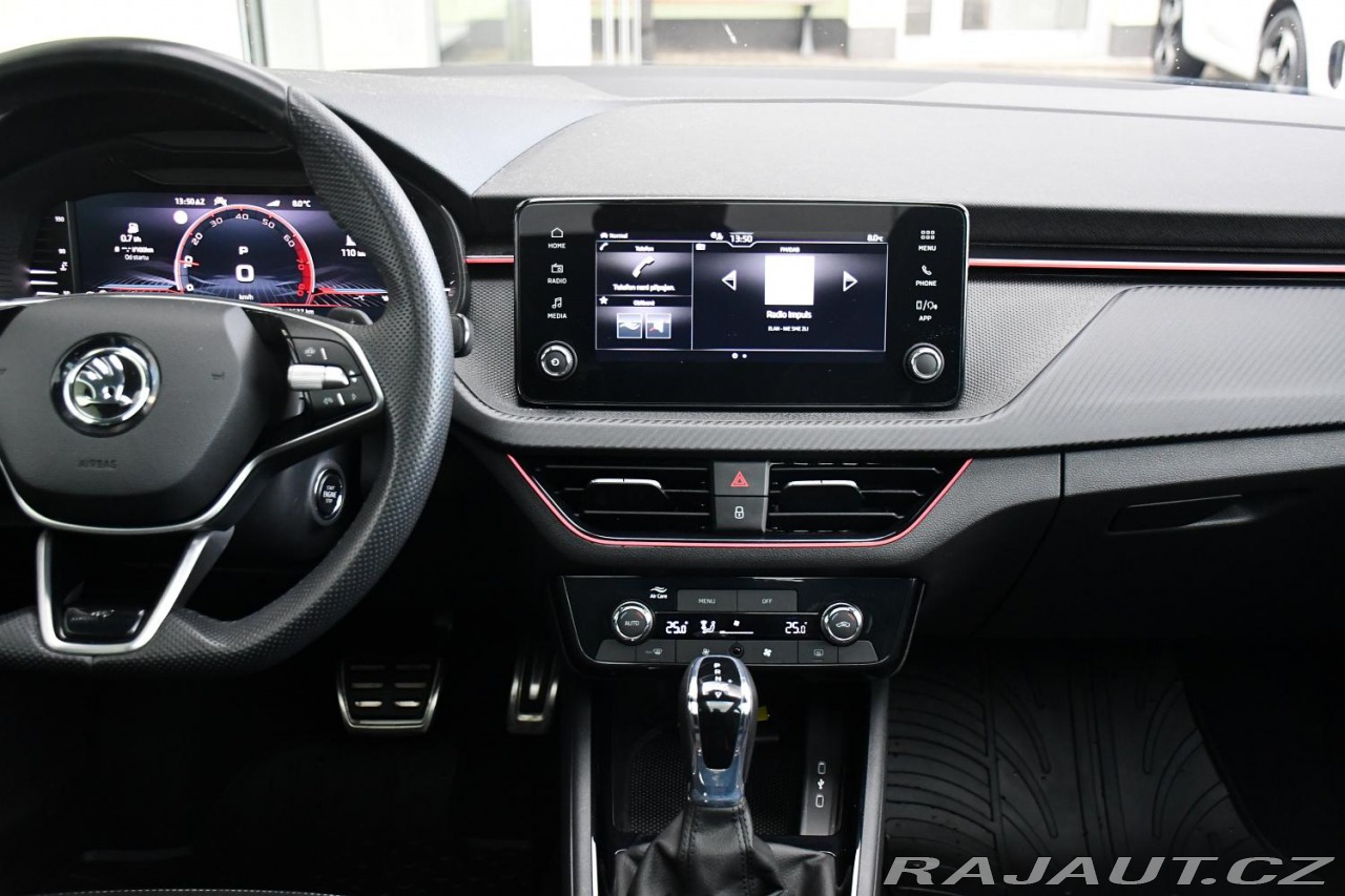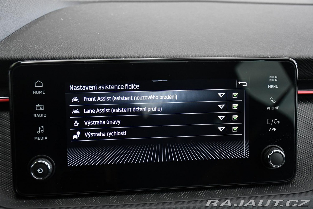 | Nadstandardní výbava: | aut. převodovka, 10x airbag, ABS, brzdový asistent, stabilizace podvozku (ESP), protiprokluzový systém kol (ASR), nouzové brzdění (PEBS), asistent rozjezdu do kopce (HSA), ukazatel rychlostního limitu (SLIF), hlídání jízdního pruhu, asistent jízdy v jízdním pruhu, sledování únavy řidiče, posilovač řízení, dvouzónová klimatizace, aut. klimatizace, tempomat, LED adaptivní světlomety, LED denní svícení, automatické přepínání dálkových světel, alu kola, palubní počítač, hlasové ovládání palubního počítače, dotykové ovládání palubního počítače, digitální přístrojový štít, volba jízdního režimu, elektronická ruční brzda, satelitní navigace, parkovací senzory přední, parkovací senzory zadní, parkovací asistent, parkovací kamera, bezklíčové startování, bezklíčové odemykání, senzor světel, senzor stěračů, nastavitelný volant, multifunkční volant, řazení pádly pod volantem, deaktivace airbagu spolujezdce, hands free, Android Auto, Apple CarPlay, bluetooth, el. víko zavazadlového prostoru, el. okna, panoramatická střecha, el. sklopná zrcátka, el. zrcátka, samostmívací zrcátka, startování tlačítkem, imobilizér, centrál dálkový, centrální zamykání, isofix, výškově nastavitelná sedadla, polohovací sedadla, senzor tlaku v pneumatikách, senzor opotřebení brzdových destiček, přední světla LED, zadní světla LED, mlhovky, USB, autorádio, digitální příjem rádia (DAB), venkovní teploměr, vyhřívaná zrcátka, zadní loketní opěrka, vnitřní teploměr, zadní stěrač, tónovaná skla, zatmavená zadní skla, záruka, digitální přístrojová deska, | |