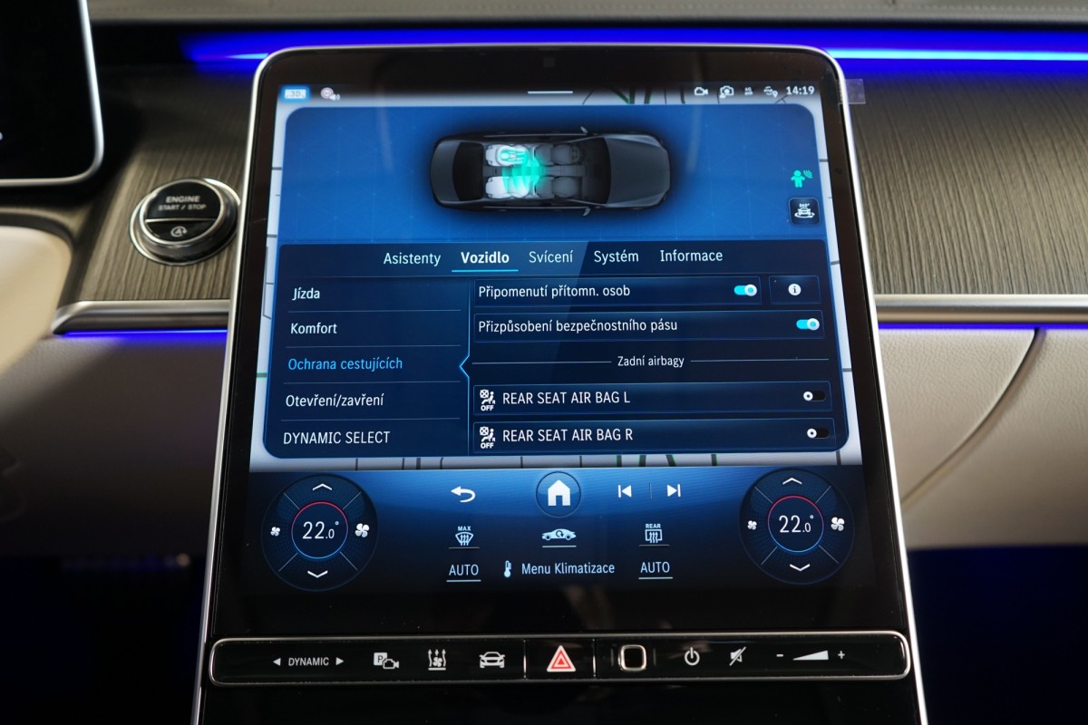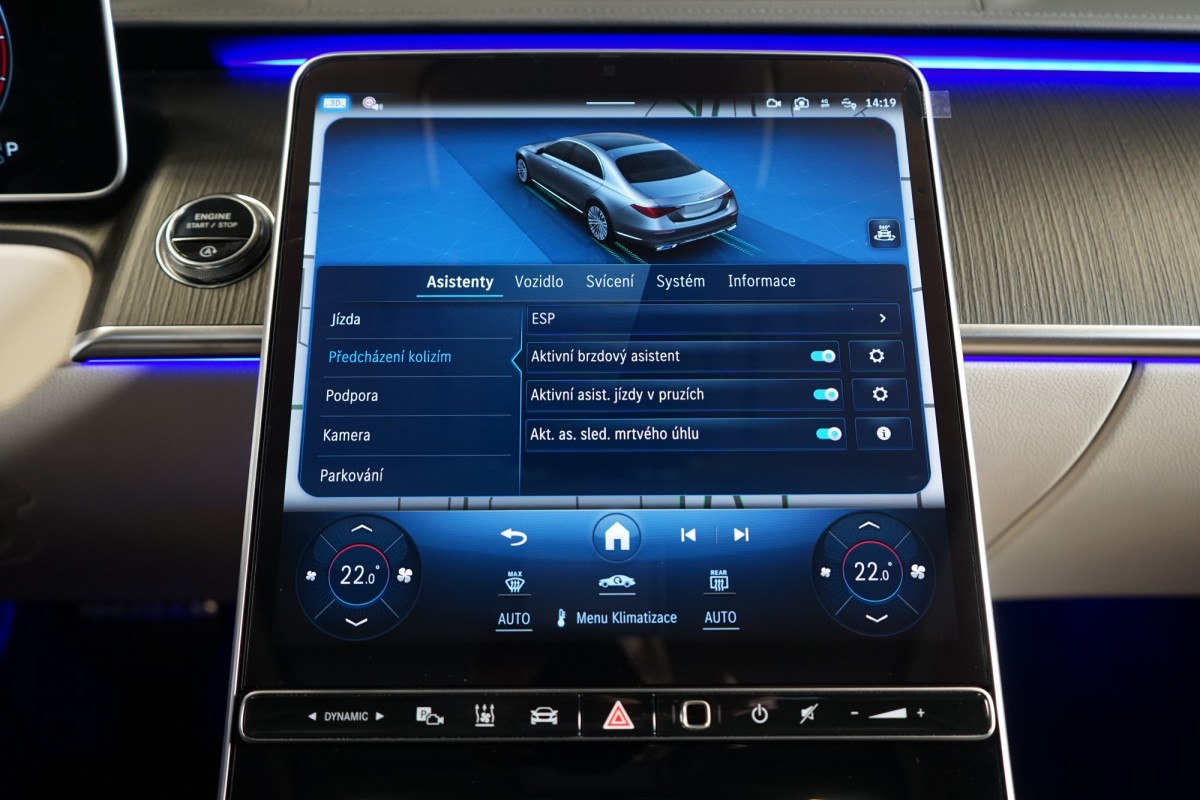 | Doplňující popis: | AS250722 Záruka: Vůz je v plnohodnotné tovární záruce Výbava: Barva: Šedá graphite Čalounění: Kůže Nappa, béžová Macchiato 21 vícepaprsková kola AMG Sportovní brzdová soustava Sada linie AMG Sada pro integrování smartphonu Apple CarPlay, Android Auto Řízení zadní nápravy, 4,5° Palubní kamera Elektrické nastavení zadních opěradel a opěrek hlavy Nezávislé topení Tempomat s regulací odstupu Plus (DISTRONIC PLUS) Aktivní parkovací asistent Aktivní asistent jízdního pruhu (kamera) Vnitřní a vnější zrcátka s automatickou změnou odrazivosti Příčná podpora DISTRONIC PLUS (DTR+Q) Paměťová sada (sedadlo řidiče, sloupek řízení a zrcátka) Paměť v zadní části vozu Elektrická sluneční roleta v zadních dveřích Světlomety LED digitální Funkce projekce přes světlomety Skener otisku prstu Systém tísňového volání eCall Vyhřívaná a ventilovaná přední sedadla Masážní funkce pro přední sedadla Vyhřívaná a ventilovaná zadní sedadla Panoramatické posuvné skleněné střešní okno Automatická 9stupňová převodovka Sedadlo závislé na dynamice jízdy Inteligentní sklopné komfortní opěrky hlavy vpředu Vyhřívaný multifunkční volant Head,Up displej s rozšířenou realitou Dotyková obrazovka vzadu 3D kombinovaný displej Nastavování sedadla spolujezdce řidičem Kontrola tlaku v pneumatikách AIRMATIC DC / vzduchové odpružení semiaktivní Multimediální systém MBUX včetně videostreamingu Kamera 360° Přední a zadní parkovací senzory Dálkově ovládané parkování Premium Rozpoznávání dopravních značek Digitální rádio se standardem DAB Elektrická roleta pro zadní okno Automatická regulace rychlosti Vnitřní čalounění stropu látkové béžové Automatická klimatizace s 4zónovou regulací Projekce loga přes zrcátko Prosklení s ochranou proti infračervenému záření Čelní okno vyhřívané Automatické zapínání dálkových světel Plus (IHC+) Středová konzola plast IMD lesklý černý Paket USB Bezdotykové ovládání gesty vpředu Soundsystém Burmester Sklo s tmavým tónováním Hands,free access MAGIC VISION CONTROL včetně vyhřívaných ostřikovačů Ambientní osvětlení Premium Komfortní zavírání víka zavazadlového prostoru Servozavírání dveří, Soft Close KEYLESS Přístup a autorizace vozidla prostřednictvím smartphonu Bezdrátové nabíjení telefonu v zadní části Bezdrátové nabíjení telefonu vpředu MANUFAKTUR ISOFIX Vyhřívaná nádržka ostřikovačů Komfortní vyhřívání předních sedadel Komfortní vyhřívání sedadel vzadu Vyhřívané odkládací plochy vpředu Vyhřívané odkládací plochy vzadu Ozdobné prvky, dřevo Fineline antracit pórovité Aktivní asistent změny jízdního pruhu Rozšířené rozjíždění při provozu Stop,And,Go Přizpůsobení rychlosti v závislosti na trase Asistent nouzového zastavení s varováním hands,off při změně jízdního pruhu Supersportovní volant, kůže s hlubokou ražbou Vozidlo s 4MATIC / pohonem všech kol Paket Chauffeur s paměťovou funkcí Paket sluneční ochrany Sada jízdních asistentů Sada pro kvalitní vzduch Sada pro čistění vzduchu Sada Night Navigace MBUX Premium Podavač bezpečnostního pásu v zadní části vozidla Augment | |