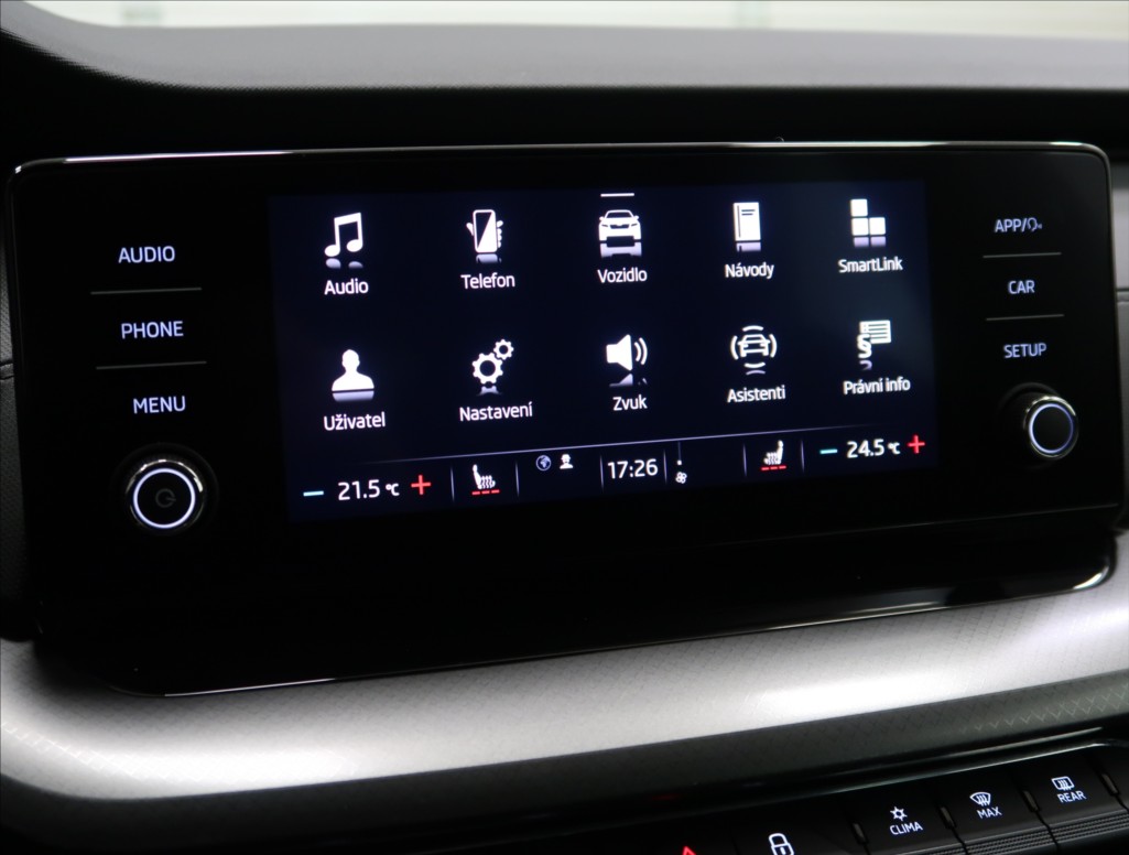 | Nadstandardní výbava: | 6 rychlostních stupňů, manuální převodovka, 6 x airbag, aut. klimatizace, Android Auto, Apple CarPlay, originál autorádio, bluetooth, hands free, palubní počítač, el. okna, el. zrcátka, výškově nastavitelná sedadla, vyhřívaná zrcátka, vyhřívaná sedadla, multifunkční volant, nastavitelný volant, indikátor parkování, LED denní svícení, posilovač řízení, tempomat, ABS, stabilizace podvozku (ESP), protiprokluzový systém kol (ASR), přední světla LED, zadní světla LED, centrál dálkový, litá kola, imobilizér, zadní stěrač, dělená zadní sedadla, venkovní teploměr, dvouzónová klimatizace, isofix, | |