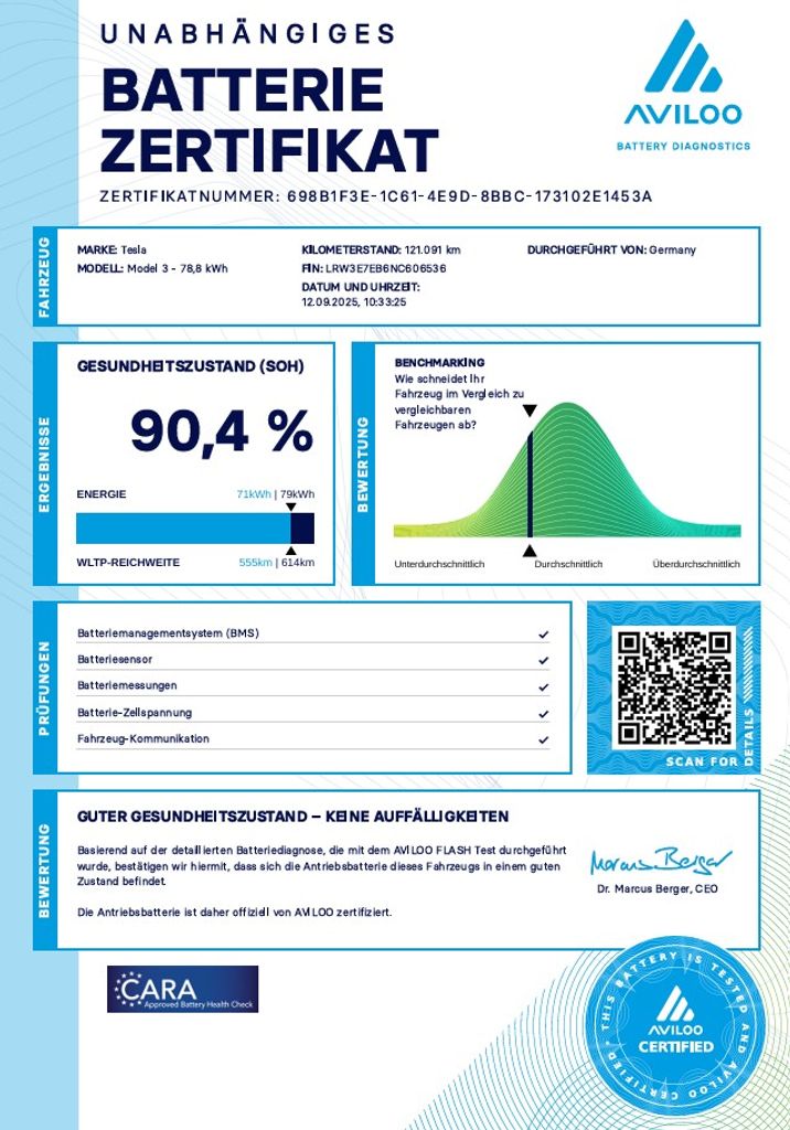 | Doplňující popis: | Tesla Model 3 Long Range Dual Motor - 366 kW SOH 90, 4% (ODPOČET DPH) - cena uvedena vč. DPH, baterie 78, 8 kWh, dovoz: Německo, VIN: LRW3E7EB6NC606536, elektro, do provozu: 29.8.2022, najeto: 123632 km, pohon kol: 4x4, automatická převodovka, STK do: 8/2026, WLTP 602 km, procesor AMD RYZEN, BOOM BOX, MATRIX SVĚTLOMETY, TAŽNÉ ZAŘÍZENÍ, klimatizace, parkovací kamera, přední a zadní vyhřívaná sedadla. Záruka na Akumulátor a hnací ústrojí 8 let nebo po ujetí 192.000 km (podle toho, co nastane dříve).*MOŽNOST VYKOUPENÍ VAŠEHO STARÉHO VOZU PROTIÚČTEM* *MOŽNOST VÝHODNÉHO FINANCOVÁNÍ už bez nulové akontace* Pro nezávaznou kalkulaci nás neváhejte kontaktovat. Nutno vždy volat předem! Prohlídky možné i mimo pracovní dobu tel. 732710796 Mates auto. Nejedná se o návrh na uzavření smlouvy (nabídku) dle § 1731 zákona č. 89/2012 Sb., občanský zákoník, ale o nezávaznou nabídku., | |