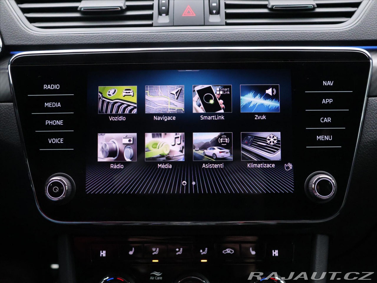 | Nadstandardní výbava: | aut. převodovka, 7 rychlostních stupňů, aut. klimatizace, dvouzónová klimatizace, klimatizovaná přihrádka, adaptivní tempomat, tempomat, parkovací kamera, parkovací senzory přední, parkovací senzory zadní, parkovací asistent, bi-xenonové světlomety, xenonové světlomety, zadní světla LED, LED denní svícení, denní svícení, natáčecí světlomety, ostřikovače světlometů, mlhovky, senzor tlaku v pneumatikách, vyhřívaná sedadla, el. seřiditelná sedadla, paměť nastavení sedadla řidiče, kožené čalounění, potahy kůže, sportovní sedadla, výškově nastavitelná sedadla, polohovací sedadla, dělená zadní sedadla, vyhřívané přední sklo, vyhřívaný volant, bezklíčové odemykání, bezklíčové startování a odemykání, bezklíčové startování, kožená sedadla, startování tlačítkem, el. víko zavazadlového prostoru, Apple CarPlay, Android Auto, satelitní navigace, digitální přístrojový štít, bluetooth, hands free, USB, regulace tuhosti podvozku, stabilizace podvozku (ESP), litá kola, ABS, protiprokluzový systém kol (ASR), brzdový asistent, aut. zabrždění v kopci, indikátor parkování, 7x airbag, deaktivace airbagu spolujezdce, multifunkční volant, řazení pádly pod volantem, nastavitelný volant, palubní počítač, hlasové ovládání palubního počítače, isofix, el. okna, el. přední okna, tónovaná skla, el. sklopná zrcátka, vyhřívaná zrcátka, samostmívací zrcátka, el. zrcátka, centrální zamykání, centrál dálkový, imobilizér, GPS zabezpečení, posilovač řízení, start-stop systém, senzor stěračů, senzor světel, venkovní teploměr, volba jízdního režimu, plní 'EURO V', repro, | |