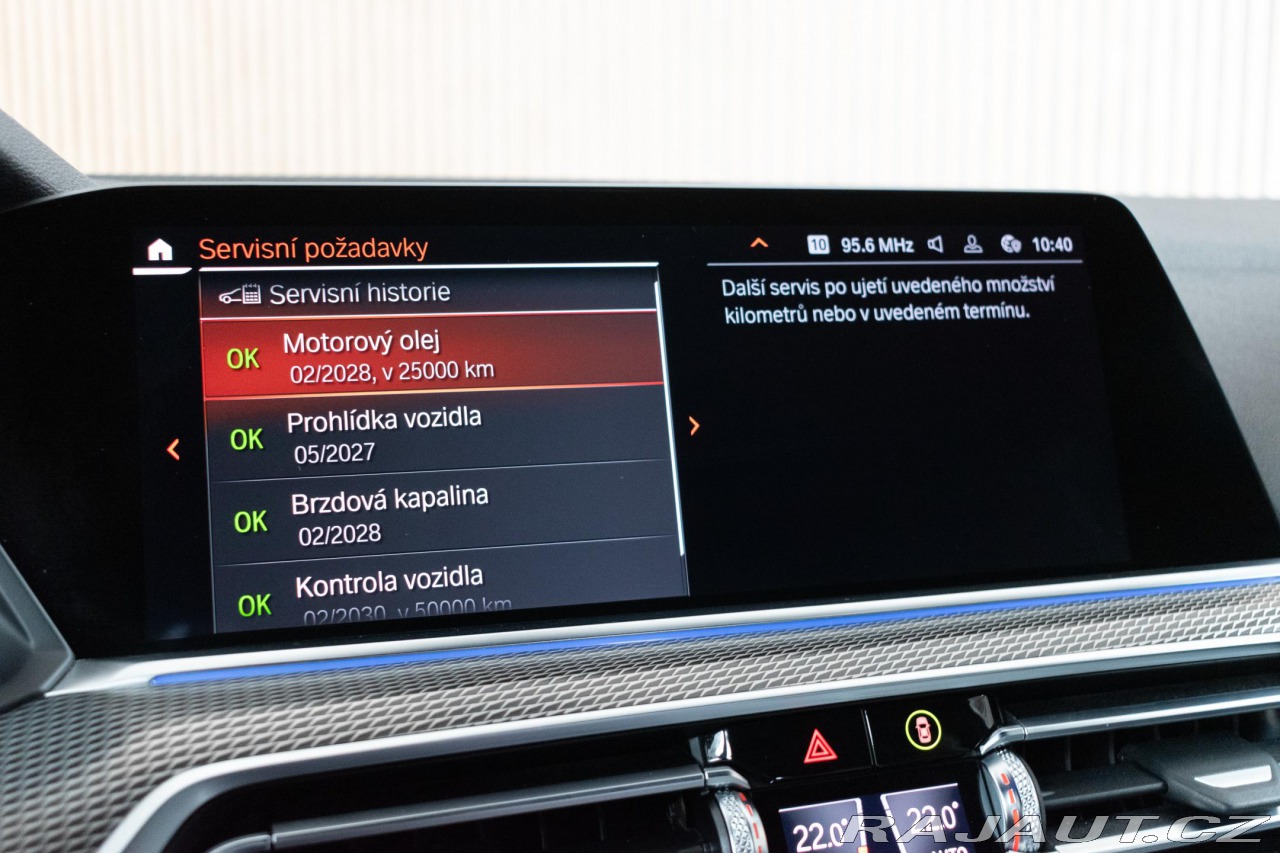 | Doplňující popis: | Vozidlo registrované jako nové v ČR, s možností odpočtu DPH. Pravidelně servisováno, aktuálně po servisním intervalu. Historie vozidla prověřena společností CEBIA, na vyžádání lze zaslat Cebia report mailem. Z volitelné výbavy: M Sportovní výfukový systém, Sportovní brzda M, Sport-automatická převodovka, Adaptivní M podvozek, Zabezpečovací systém, Zabezpečovací systém, Tažné zařízení, M střešní lišty, Shadow Line, Zavazadlový prostor paket, Klimatizovaná sedadla přední, Komfortní sedadlo s pamětí, Skleněná lišta Craftedclarity, Travel & Comfort Rail System, Vyhřívání sedadla přední a zadní, Komfortní balíček pro vyhřívání přední, Interiérové lišty hliník Tetragon, Autom. klimatizace se 4zónovou regulací, Ambient Air Paket, Rozšířený paket zrcátek, Adaptivní diodový světlomet, LED Fog lights, Dálkové světlo asistent, Active Guard Plus, Aktivní regulace rychl.+funkce Stop&Go, Systém parkovací asistence, Zobrazení přístrojů na čelním skle, Harman/Kardon Surround Sound System, Connected Drive Services, Connected Package Professional, Telefonie s bezdrátovým nabíjením, BMW Live Cockpit Professional, BMW ovládání posunky, M Kožený volant, M aerodynamický paket, Vysoký lesk Shadow-Line, Strop karoserie antracit, Aktivní ochrana chodců. Tato nabídka má pouze informativní charakter a neslouží jako podklad pro uzavření objednávky. STOP CARS s.r.o. si vyhrazuje právo uzavření všech smluvních vztahů písemně. | |