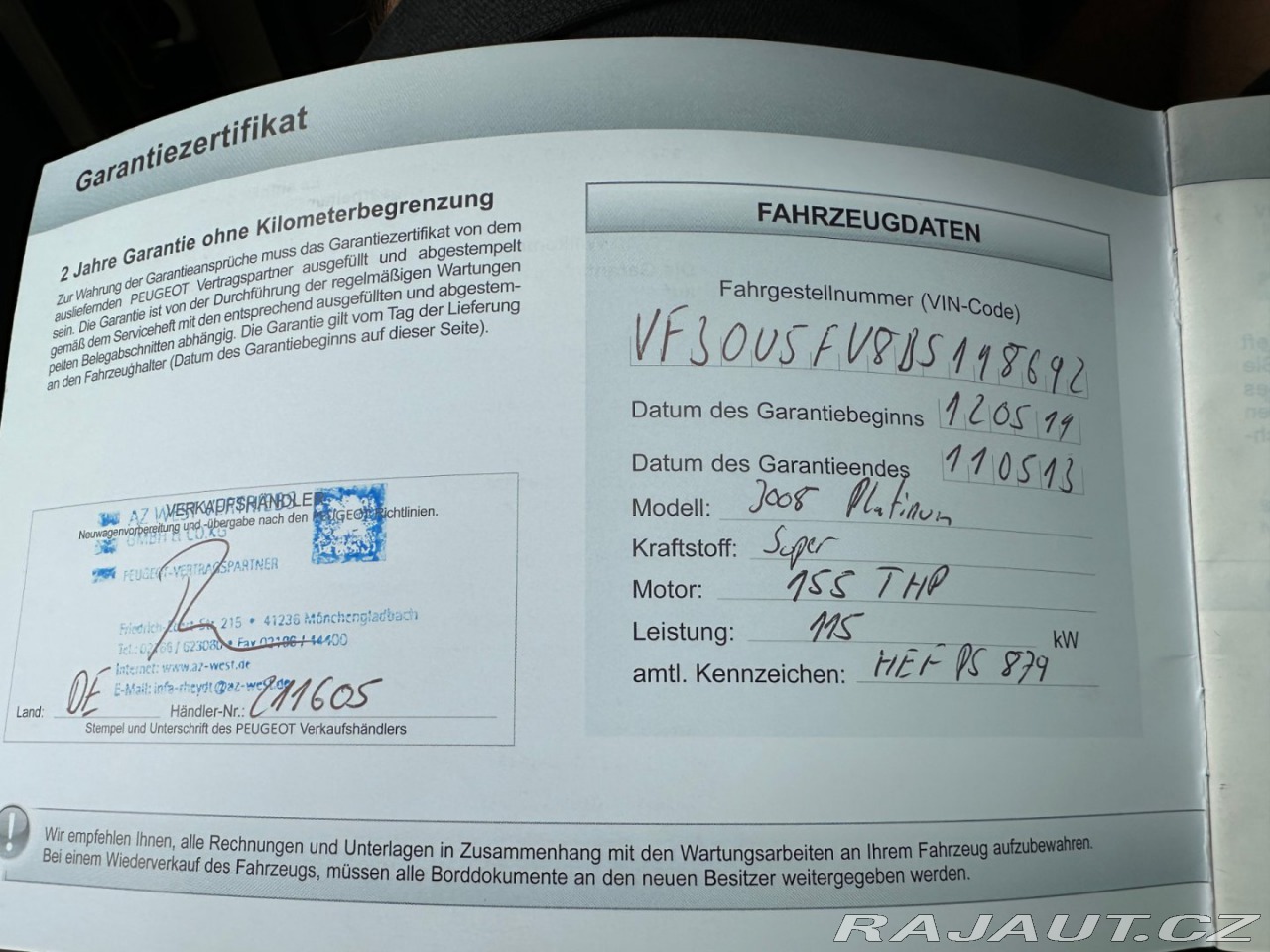 | Doplňující popis: | Koupeno u autorizovaného dealera v SRN, první majitel, nehavarované, servisní knížka. Na vozidlo poskytujeme 2 roky záruku a doživotní garanci na původ a počet najetých km. předprodejní servis - nová STK bude zajištěna při prodeji. Možnost úvěru. Financování zajišťujeme prostřednictvím ESSOX s.r.o. | |