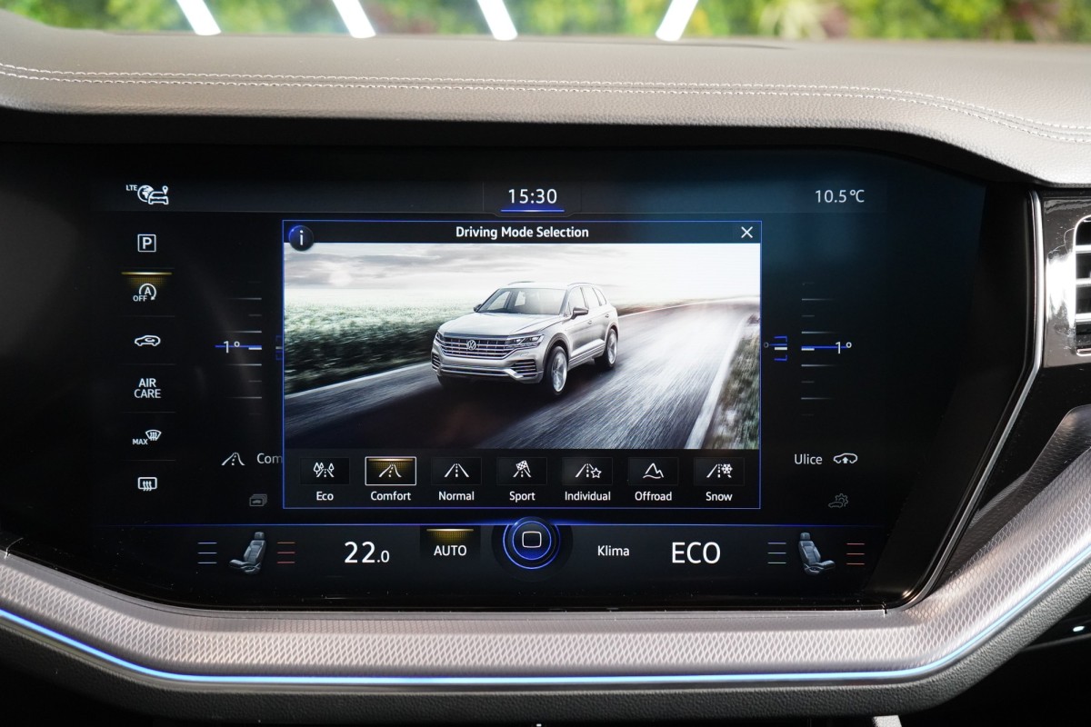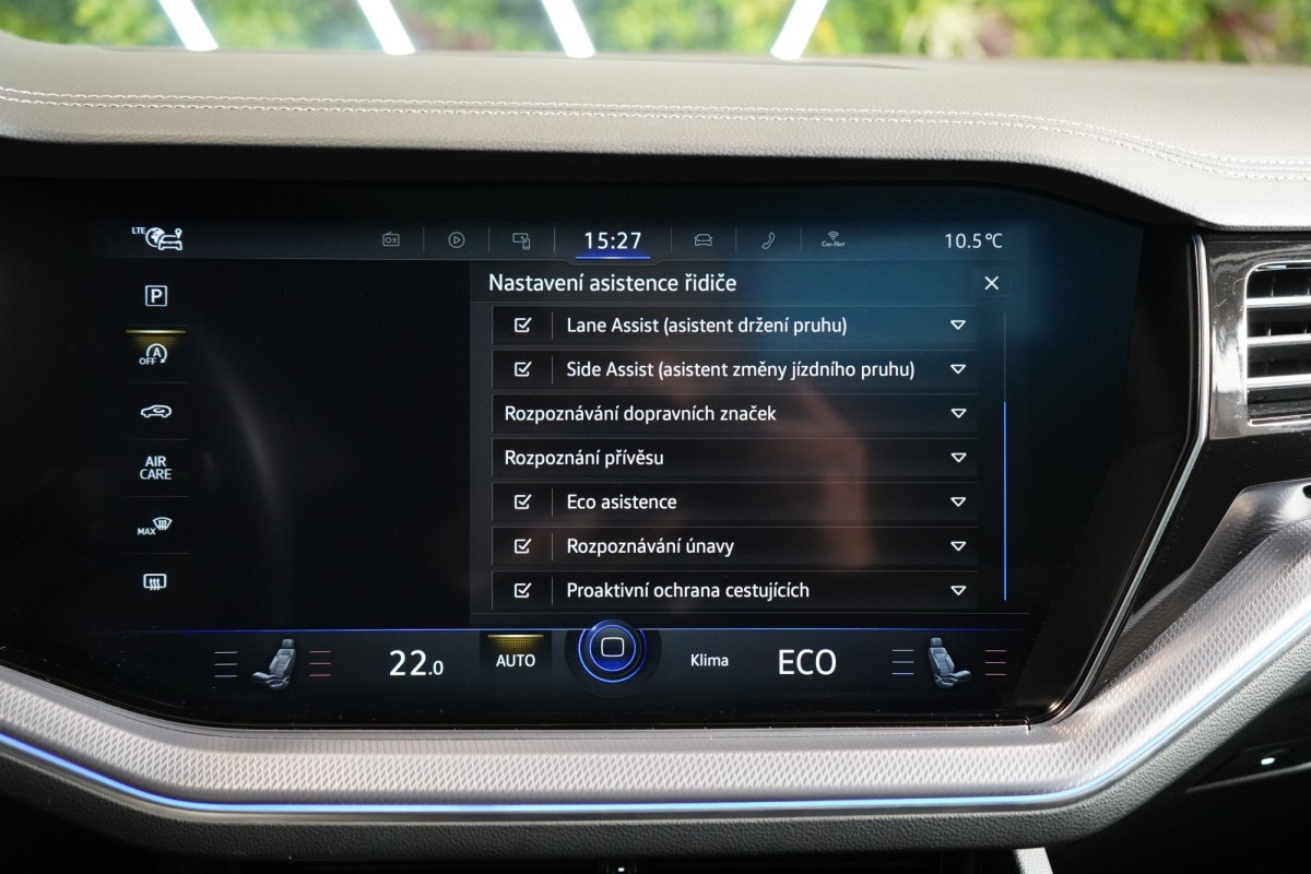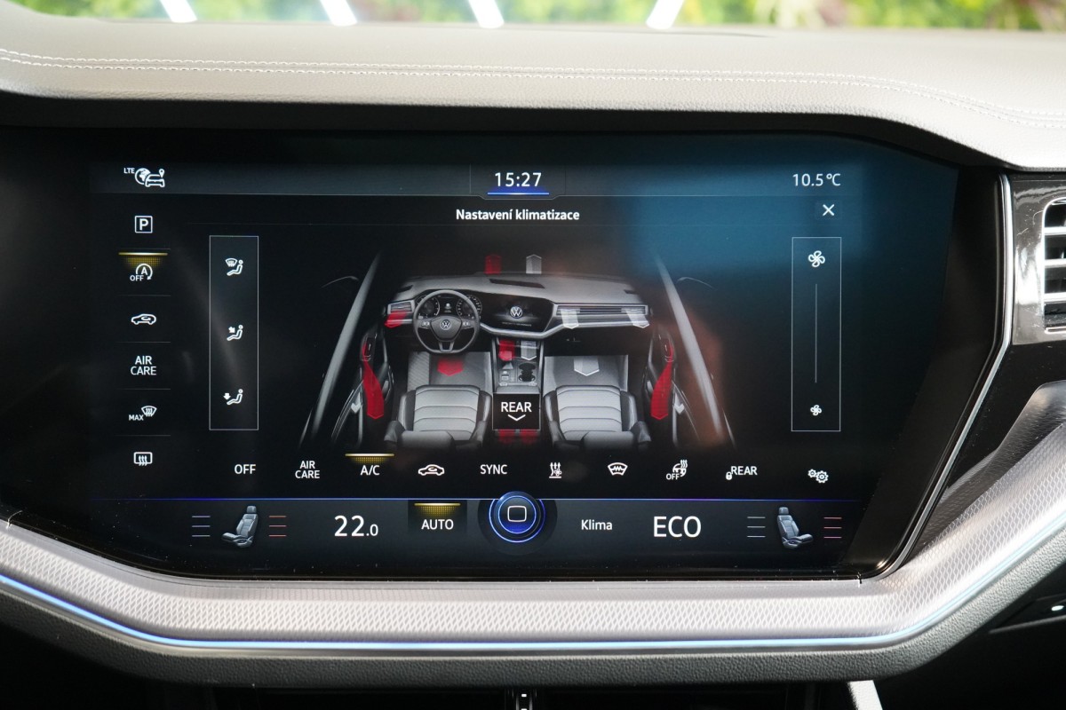 | Doplňující popis: | AS261750 Výbava: Barva: Silizium šedá, metalický lak Čalounění: Kůže Savona, černá 22 disky kol z lehkých slitin Řízení zadní nápravy Head,up displej 4zónová automatická klimatizace Climatronic Elektronicky řízené vzduchové odpružení s nastavitelnou výškou a tuhostí LED Matrix světlomety Komfortní paket Keyless Access Vnější zpětná zrcátka elektricky nastavitelná, vyhřívaná a sklopná Vnější zrcátka s automatickým stmíváním Park Assist Elektrická okna Automatická převodovka Tiptronic (8stupňová) ISOFIX Elektricky nastavitelná sedadla vpředu s paměťovou funkcí Vyhřívaná a ventilovaná sedadla vpředu Masážní funkce pro přední sedadla Nouzový systém volání (eCall) LED denní svícení Paměťový paket Premium 360° kamery Přední a zadní parkovací senzory Navigační systém Discover Premium Digitální rádio (DAB+) Bezdrátové nabíjení vpředu USB Ozvučení DYNAUDIO Adaptivní tempomat ACC včetně funkce Stop&Go Volič jízdních režimů Asistent dálkových světel Systém sledování únavy řidiče Asistent jízdy v jízdním pruhu Systém Front Assist s nouzovým brzděním ve městě Rozpoznávání dopravních značek Kontrola tlaku v pneumatikách Dešťový senzor Asistent pro manévrování s přívěsem Travel Assist Asistent změny jízdního pruhu Adaptivní regulace podvozku (DCC) Aktivní stabilizace náklonů karoserie Dynamické řízení dálkových světel (Dynamic Light Assist) Bederní opěrky vpředu Vyhřívaný kožený volant Loketní opěrka vzadu Zadní sedadla dělená, sklopná a podélně posuvná Digitální přístrojový štít Nezávislé topení s ventilací Vyhřívání zadních sedadel Multifunkční volant Pádla řazení pod volantem Satelitní navigace Elektricky výklopné tažné zařízení Elektrické víko zavazadlového prostoru Ambientní osvětlení | |