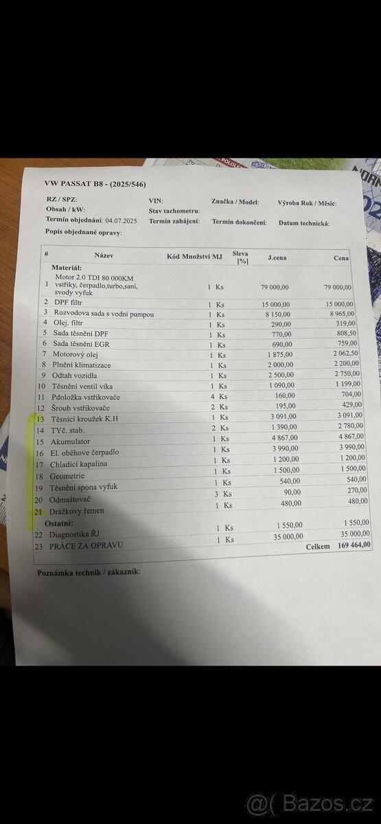 | Doplňující popis: | TEL: 776246940 OKR: BRNO Dobrý den, prodávám passat b8 comfortline -2016 -2.0 tdi 110kw -manuál -nájezd 285xxx km, teď motor 122xxx km -na motorové věci záruka půl roku, v příloze faktura, co vše bylo na autě děláno, oprava proběhla při 243xxx km -spojka dělána při 230xxx km, najeto 50xxx km -auto garážované a udržované -pečlivě staráno -každého půl roku ochrana laku -důvod prodeje : koupě nového vozu -při rychlém jednání sleva Více info po telefonu : 776 246 940, | |