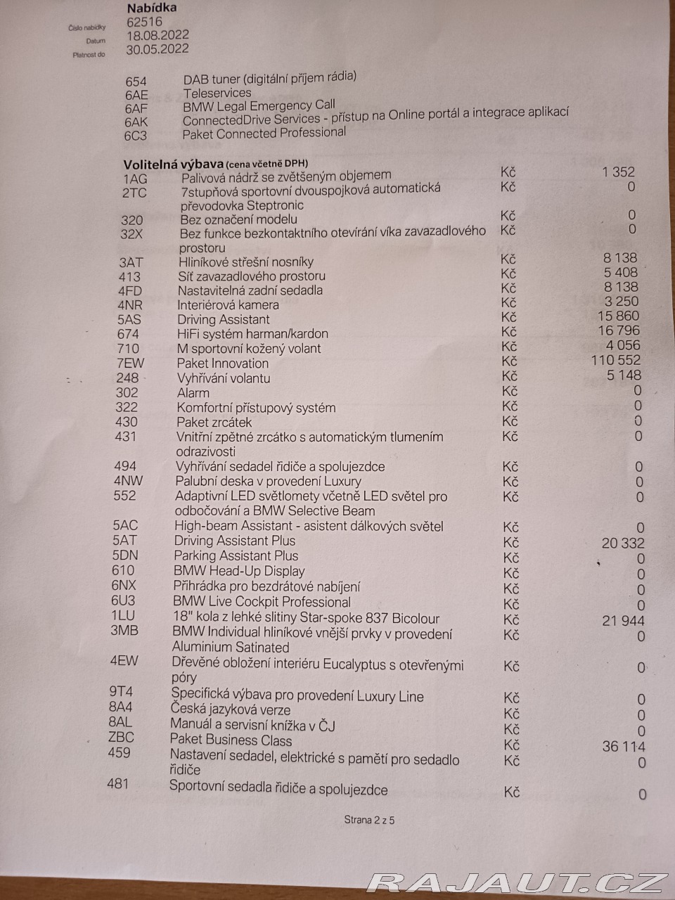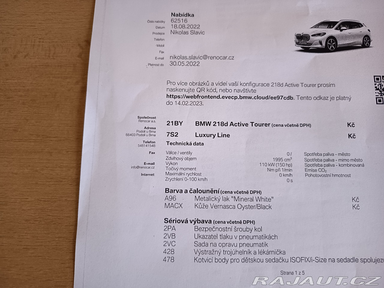 | Nadstandardní výbava: | Na prodej BMW 218d Active Tourer Luxury Line, r.v.08/2022, objem:1995ccm, výkon:110kw, Euro 6, zakoupeno v ČR Renocar a.s., 1 majitel v TP, garážováno, kompletní vzorná servisní historie v autorizovaném servisu BMW, ( zkrácený interval výměny oleje v motoru), 2 x klíč, 2 sady ALU kol letní (100%nové), zimní (80%). Tovární záruka BMW. Velmi dobrý technický stav i vzhled bez závad bez investic. Výbava Luxury Line zobrazená ve fotogalerii. Příplatkový packet Luxury Line, Business Packet Plus,prémiový audiosystém Hi-Fi, Full LED světelná technika,sportovní sedadla, parkovací asistenty, automatická převodovka, interiér vyhřívaná kůže, vypínatelný airbag spolujezdce , atd, atd, atd, atd... Najeto :105tkm s garancí ověřeno přes ministerstvo dopravy ČR a autorizovaný servis BMW. Vin pro prověření vozidla na požádání. Financování v případě zájmu o úvěr zajištěno. Možná prohlídka v autorizovaném servisu BMW popř STK a EM. Odpočet DPH lze uplatnit. Spotřeba 5,2l/100km. Uvedená cena je včetně DPH. Inzerát je platný do smazání. | |