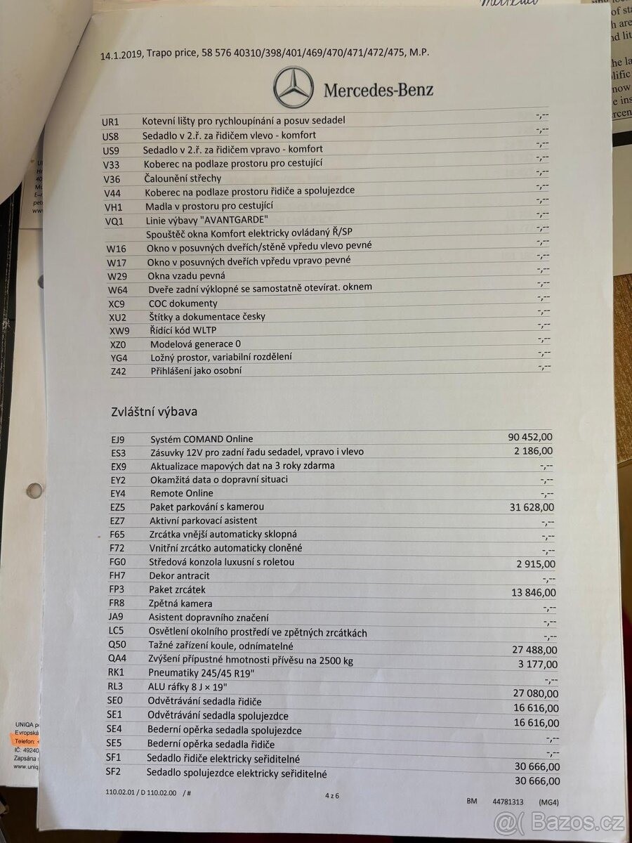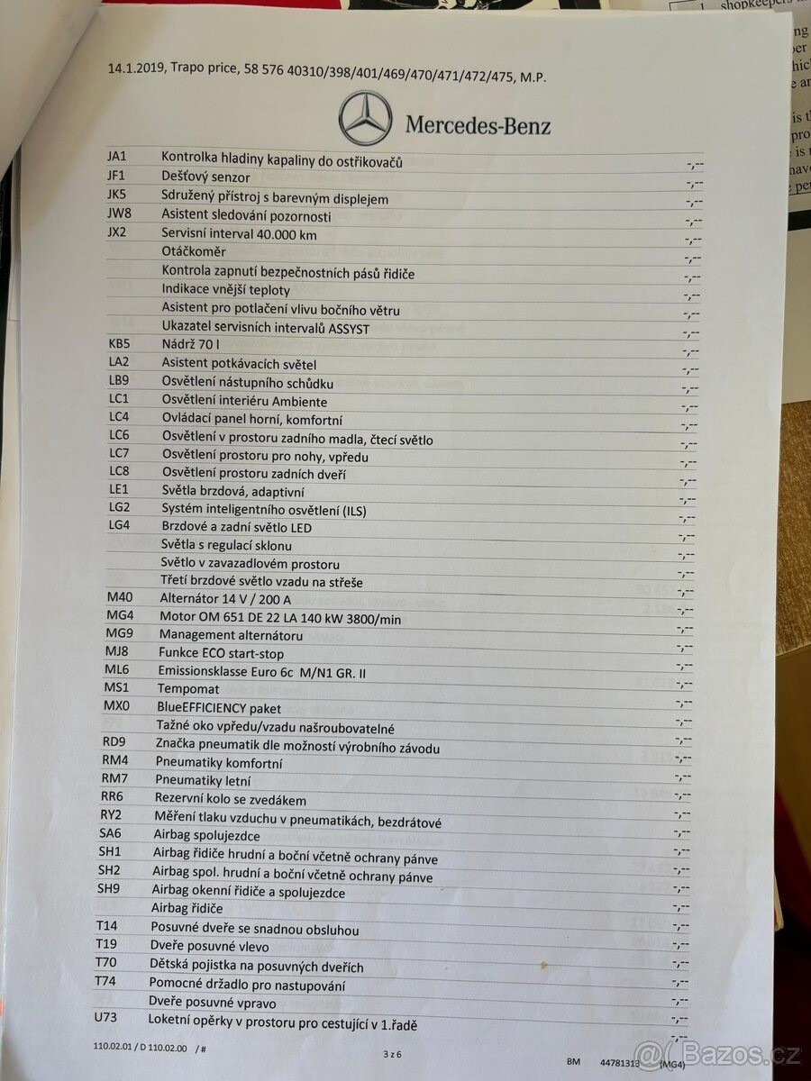 | Doplňující popis: | TEL: 777715101 OKR: TEPLICE Prodám Mercedes-Benz V 250 d L Avantgarde 4MATIC ve velmi dobré výbavě. Odpočet DPH. Vůz je pravidelně servisovaný. 2 sady kol. Příčníky. Tažné Najeto 147xxx Km Základní údaje • Model: Mercedes-Benz třídy V 250 d • Verze: Avantgarde • Motor: 2.2 CDI (OM651) • Výkon: 140 kW (190 koní) • Převodovka: automatická 7G-TRONIC PLUS • Pohon: 4MATIC (4x4) • Rozvor: 3200 mm • Celková hmotnost: 3200 kg • Barva: Stříbrná brilliant (MB 9744) Výbava Komfort • Elektricky ovládané posuvné dveře vlevo i vpravo • Elektrické zadní víko EASY-PACK • Kožené čalounění Lugano • Elektricky nastavitelná sedadla řidiče a spolujezdce • Vyhřívaná sedadla • Odvětrávaná sedadla • Bederní opěrky • Ambientní osvětlení interiéru • Multifunkční kožený volant • Automatická klimatizace THERMOTRONIC • Tempomat Technologie • Systém COMAND Online (navigace, multimédia) • Aktualizace map • Mercedes me connect • Barevný displej přístrojového štítu • Dešťový senzor • Systém sledování únavy řidiče • Asistent bočního větru • Asistent dopravních značek Parkování a bezpečnost • Parkovací paket • Zpětná kamera • Aktivní parkovací asistent • LED světla + inteligentní systém ILS • Adaptivní brzdová světla • Systém monitorování tlaku v pneumatikách • Kompletní airbagová výbava Praktické prvky • Tažné zařízení (odnímatelné) • Zvýšená hmotnost přívěsu až 2500 kg • Elektricky sklopná zrcátka • 12V zásuvky v zadní části • Tonovaná zadní skla • Rezervní kolo Podvozek a kola • AGILITY CONTROL podvozek • ALU kola 19” • Pneumatiky 245/45 R19, | |