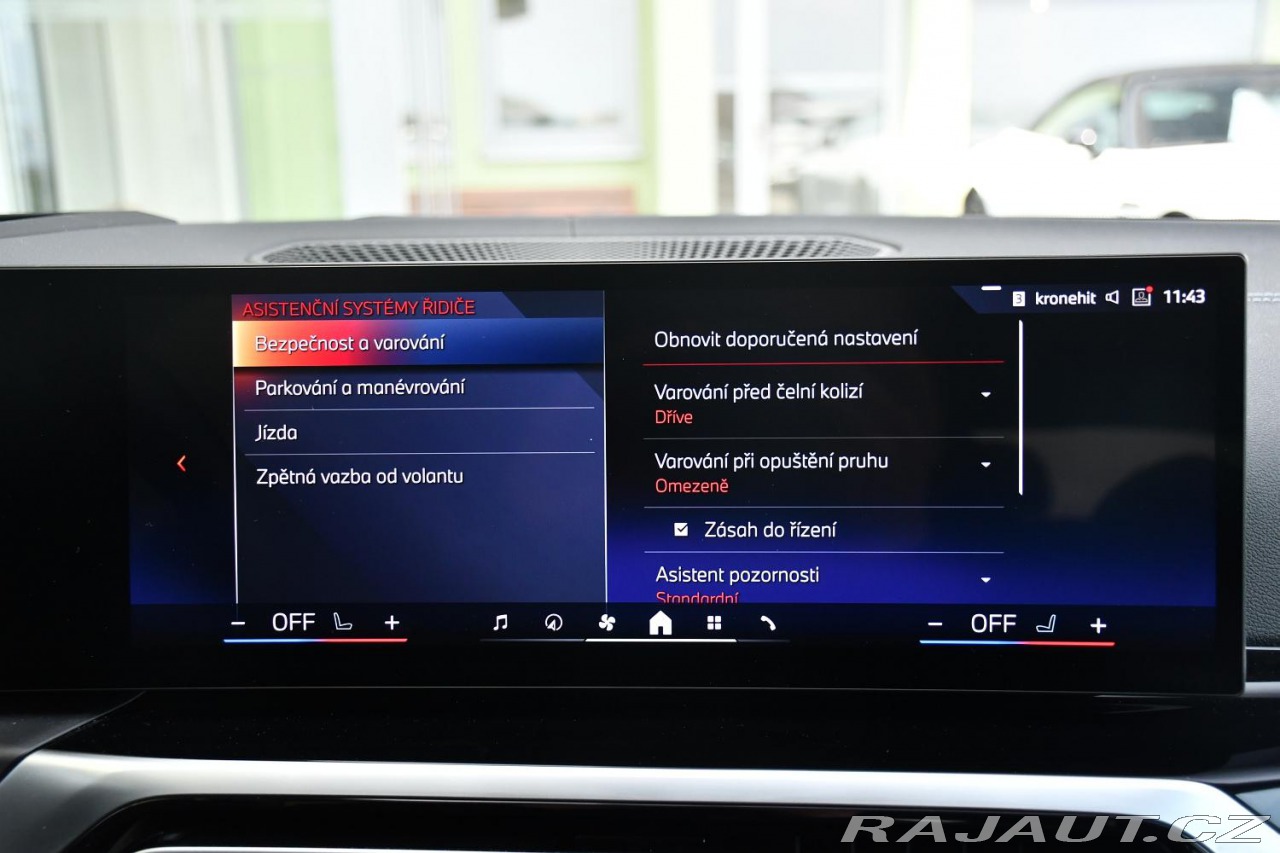 | Nadstandardní výbava: | aut. převodovka, 8x airbag, ABS, brzdový asistent, stabilizace podvozku (ESP), protiprokluzový systém kol (ASR), nouzové brzdění (PEBS), asistent rozjezdu do kopce (HSA), ukazatel rychlostního limitu (SLIF), hlídání jízdního pruhu, asistent jízdy v jízdním pruhu, posilovač řízení, třízónová klimatizace, aut. klimatizace, nezávislé topení, nezávislé topení s čas. předehřívačem, tempomat, LED denní svícení, alu kola, palubní počítač, hlasové ovládání palubního počítače, dotykové ovládání palubního počítače, digitální přístrojový štít, volba jízdního režimu, elektronická ruční brzda, satelitní navigace, head-up display, parkovací senzory přední, parkovací senzory zadní, parkovací asistent, parkovací kamera, senzor světel, senzor stěračů, nastavitelný volant, multifunkční volant, deaktivace airbagu spolujezdce, hands free, Android Auto, Apple CarPlay, bluetooth, el. víko zavazadlového prostoru, el. okna, el. sklopná zrcátka, el. zrcátka, samostmívací zrcátka, startování tlačítkem, imobilizér, centrál dálkový, centrální zamykání, potahy kůže, isofix, kožené čalounění, vyhřívaná sedadla, výškově nastavitelná sedadla, polohovací sedadla, senzor tlaku v pneumatikách, senzor opotřebení brzdových destiček, přední světla LED, zadní světla LED, mlhovky, USB, autorádio, digitální příjem rádia (DAB), venkovní teploměr, zadní loketní opěrka, vnitřní teploměr, tónovaná skla, zatmavená zadní skla, digitální přístrojová deska, | |
