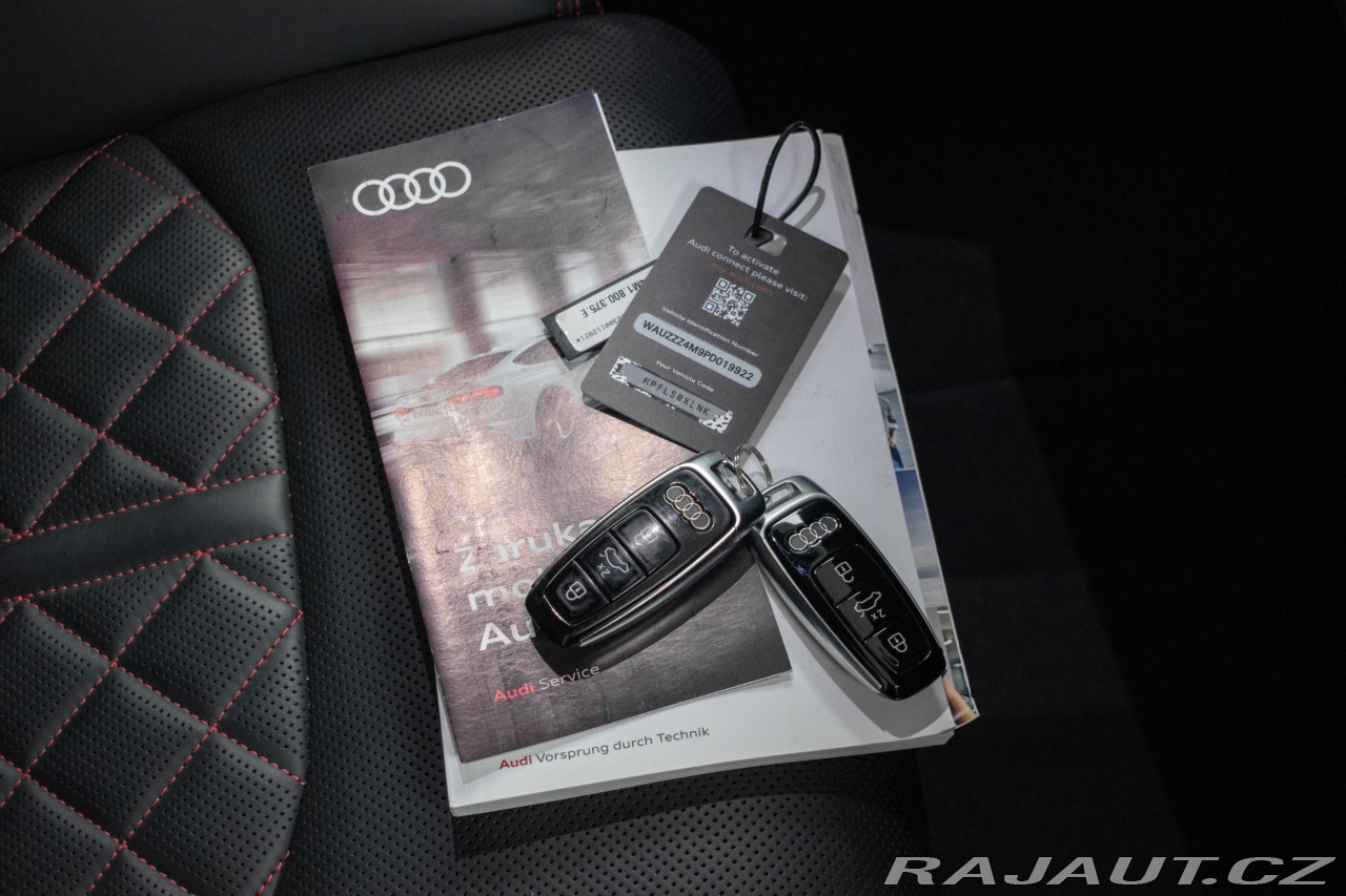 | Doplňující popis: | Vozidlo v PPF ochranné folii za 120tis. Registrované jako nové v ČR, s možností odpočtu DPH, pravidelně servisováno. Historie vozidla prověřena společností CEBIA, na vyžádání lze zaslat Cebia report mailem. Z volitelné výbavy: Akční paket Gravity, Asistenční paket 1, Asistenční paket Tour, Paket černé optiky a kruhy Audi a loga v lesklé černé barvě, Paket parkovacích asistenčních systémů, S line sportovní paket, Sedadla S sportovní Plus vpředu, Adaptivní pneumatický podvozek, Audi virtual cockpit plus, Brzdové třmeny lakované v červené barvě, Elektricky nastavitelná přední sedadla s pamětí pro sedadlo řidiče, Head-up display, Servomechanické dovírání předních a zadních dveří, Světlomety Matrix LED, Vnější zpětná zrcátka elektricky sklopná s pamětí, Ambientní a konturní osvětlení interiéru, Čalounění sedadel v kůži Valcona s diamantovým prošitím, Dekorace z karbonu Vector, Multifunkční sportovní vyhřívaný volant, Ochranná roleta proti slunci, Prvky interiérové výbavy rozšířené v kůži, Vstupní osvětlení s logem kruhů Audi, Odvětrávací a masážní funkce vpředu, Vyhřívání předních a zadních vnějších sedadel, Panoramatické střešní okno, 3místné provedení zadních sedadel plus, Klimatizace 4zónová automatická, Komfortní středová loketní opěrka vpředu, Parkovací asistent, Audi smartphone interface, Bang & Olufsen Premium Sound System s 3D ozvucením. Tato nabídka má pouze informativní charakter a neslouží jako podklad pro uzavření objednávky. STOP CARS s.r.o. si vyhrazuje právo uzavření všech smluvních vztahů písemně. | |