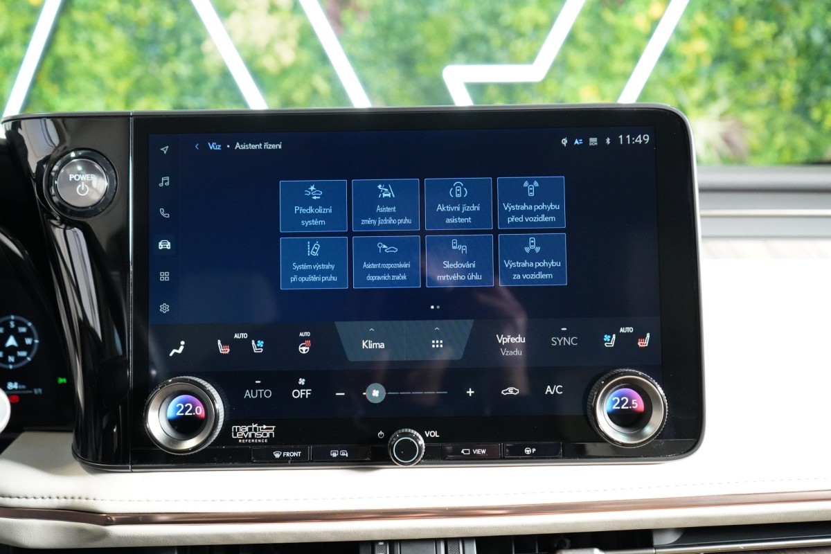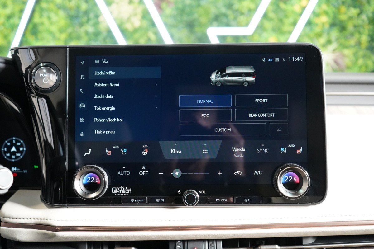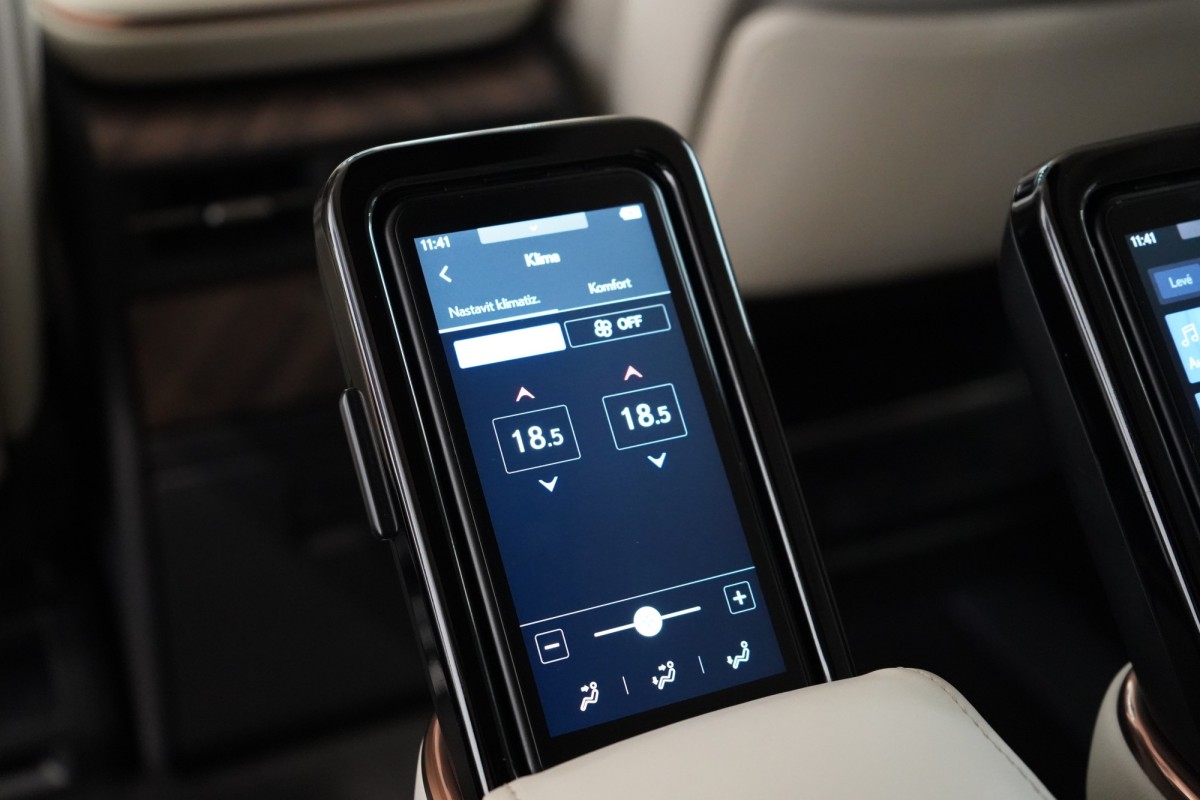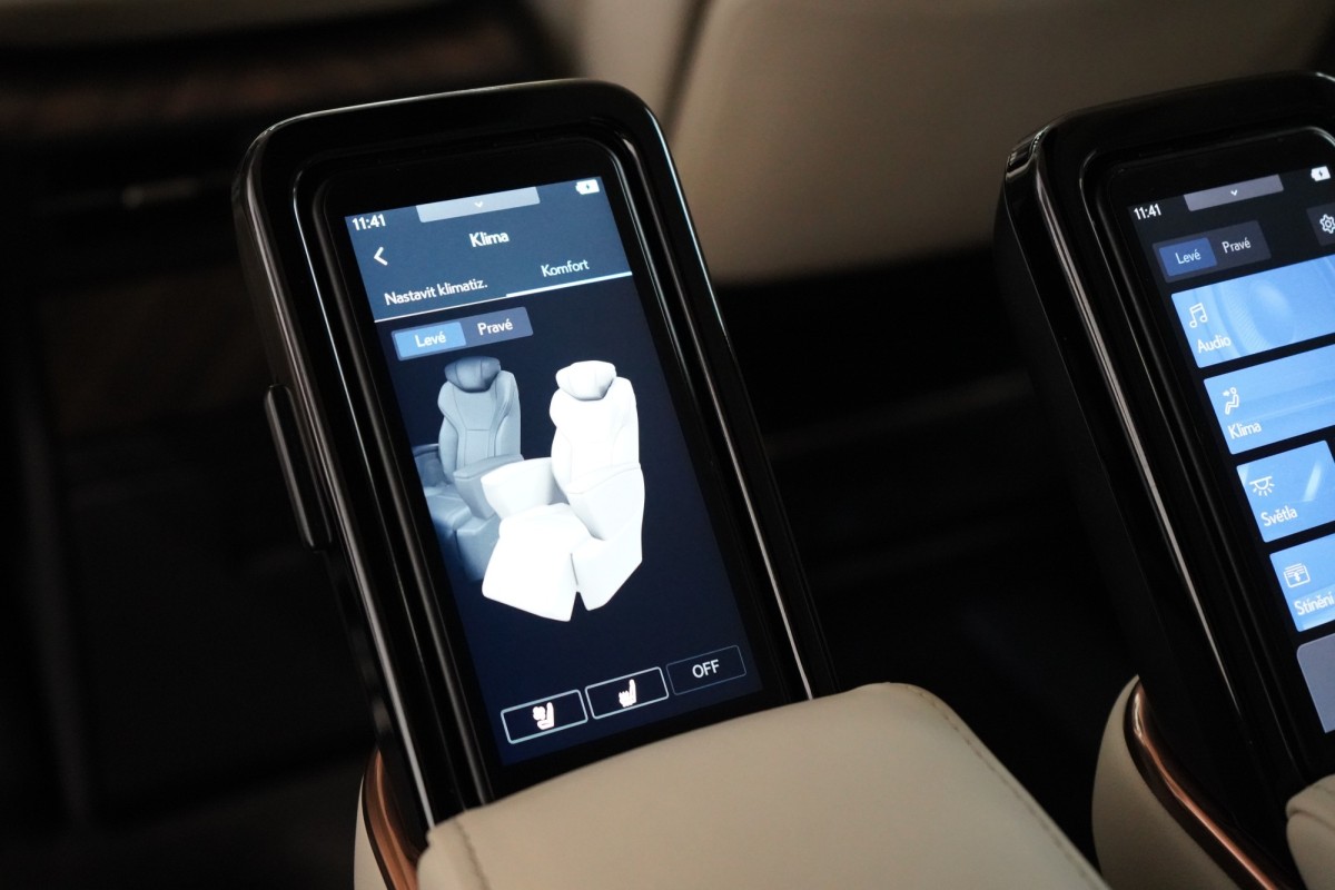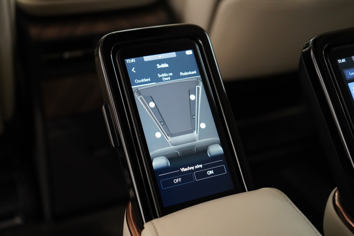 | Doplňující popis: | AS251415 Výbava: Barva: Černá Grafitová, metalický lak Čalounění: Pískovcová, Čalounění semi,anilin vpředu a poslední řadě / Čalounění L,anilin & tahara prostřední řada 19 litá kola, design Multi,Spoke Brzdové třmeny s nápisem Lexus Přístrojová deska, čalounění syntetickou kůží Tahara Paket světlého interiéru Čalounění dvěří: Syntetická kůže Tahara Přední středová loketní opěrka čalouněná syntetickou kůží Tahara Textilní koberce 860g m PW210V2002 Zatmavená skla Privacy Chromovaná ozdobná lišta nárazníku a masky chladiče Trojité LED světlomety LED světla pro denní provoz (DRL) Senzor stmívání Vnější zpětná zrcátka, vyhřívaná Vnější zpětná zrcátka, elektricky nastavitelná a sklopná Zadní LED sdružená světla Osvětlení klik dveří LED světla pro svícení do zatáček Automatické nastavování světlometů, dynamické Dešťový senzor stěrače čelního skla Vnější zpětná zrcátka, elektrochromatická Zadní LED mlhová světla Inteligentní parkovací senzory, vpředu a vzadu Lexus Safety System + Adaptivní odpružení, AVS Jízdní režim EV Přednárazový bezpečnostní systém, PCS Elektronické rozdělování brzdné síly, EBD Řízení stability vozidla, VSC Systém sledování slepého úhlu, BSM Asistent pro udržení jízdy v jízdním pruhu, LTA Akustický systém AVAS Asistent změny jízdního pruhu, LCA Asistent bezpečného vystupování, SEA Vzdálené automatické parkování Systém monitorování provozu před vozidlem, FCTA Asistent odbočování na křižovatce, ITA Předkolizní výstražná světla, FHL Dynamický adaptivní tempomat, DRCC Protiprokluzový systém, TRC Elektrický posilovač řízení, EPS Protiblokovací systém brzd, ABS Asistent rozjezdu do kopce, HAC Elektrická parkovací brzda, EPB Systém sledování tlaku v pneumatikách, TPWS Asistent rozpoznávání dopravních značek, RSA Adaptivní dálková světla, AHS Proaktivní asistent řízení, PDA Jízdní režimy: Eco / Comfort / Normal / Custom / Sport Asistent nouzového zastavení, EDSS Nouzový asistent řízení, ESA Systém monitorování řidiče, DMC ISOFIX Head,Up displej Anténa ve tvaru žraločí ploutve Rádio DAB (Digital Audio Broadcasting) Aplikace Lexus Link Pro Embedovaná Lexus Link navigace 12,3 Tazuna kokpit Bezdrátová nabíječka 14 zábavní displej vzadu USB HDMI Mobilní telefon s funkcí Bluetooth® a audio konektivita Panoramatické zobrazení okolí vozu, PVM 14 multimediální dotykový displej Zásuvka 220V vzadu Audiosystém Mark Levinson s 21 reproduktory Aktivní regulace hluku, ANC Zábavní systém na zadních sedadlech, RSE Sloupek řízení, elektricky nastavitelný v několika směrech Tříramenný volant obšitý kůží a s dřevěnými obklady Víko kufru, paměťová funkce horní polohy otevření Sedadlo řidiče elektricky nastavitelné v 8 směrech s paměťovou funkcí Vyhřívaná a ventilovaná přední sedadla Digitální čtyřzónová klimatizace Vyhřívaný volant Řazení pádly pod volantem Elektricky ovládané víko kufru Vyhřívaná zadní sedadla Vícebarevné ambientní osvětlení Vyhřívaná a ventilovaná zadní sedadla Ion generátor Nanoe™ X Bezpečné vystupování z auta e,Latch Masážní sedadla ve 2. řa | |