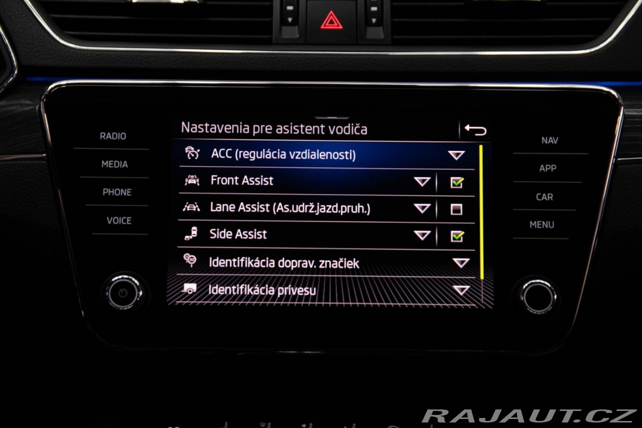 | Nadstandardní výbava: | Výbava: ABS, Adaptívny tempomat, Airbagy, Airbagy - počet, Alarm, ASR, Brzdový asistent, Centrálne zamykanie, Deaktivácia airbagov, EBV, ESP, Imobilizér, Isofix, Natáčacie svetlomety, Parkovacia kamera, Systém kontroly tlaku v pneumatikách (TPMS), Asistent rozpoznávania dopravných značiek (ISLW/ISLA), Varovanie o vzdialenosti (BAS Plus), Systém rozpoznania únavy vodiča (DAW), Systém tiesňového volania (e-Call), Upozornenie premávky za vozidlom (RCTA), Autorádio, Bezdotykové otváranie kufra, Bezkľúčové otváranie dverí, Bezkľúčové štartovanie, Bluetooth handsfree, Diaľkové ovládanie zamykania, Dotykový displej, Elektrické okná, Elektrické sedadlá, Elektrické zrkadlá, Elektrické ovládanie kufra, Klimatizácia, Klimatizovaná priehradka, Kožený paket, Lakťová opierka, LED svetlomety, LED svietenie, Multifunkčný volant, Navigačný systém, Palubný počítač, Pamäťové sedačky, Parkovacie senzory, Parkovací asistent, Posilňovač riadenia, Tempomat, Vyhrievané predné sklo, Vyhrievané sedačky, Vyhrievané zrkadlá, Vyhrievaný volant, Vonkajší teplomer, Apple CarPlay, Android Auto, Welcome light, WLAN / Wifi Hotspot, Virtuálny kokpit, Radenie pod volantom, Ambientné osvetlenie, Asistent jazdných pruhov, Asistent rozjazdu do kopca, Dažďový senzor, Hliníkové disky, Hmlovky, Kontrola mŕtveho uhla, Stop&start systém, Strešný nosič, Svetelný senzor, Ťažné zariadenie | |