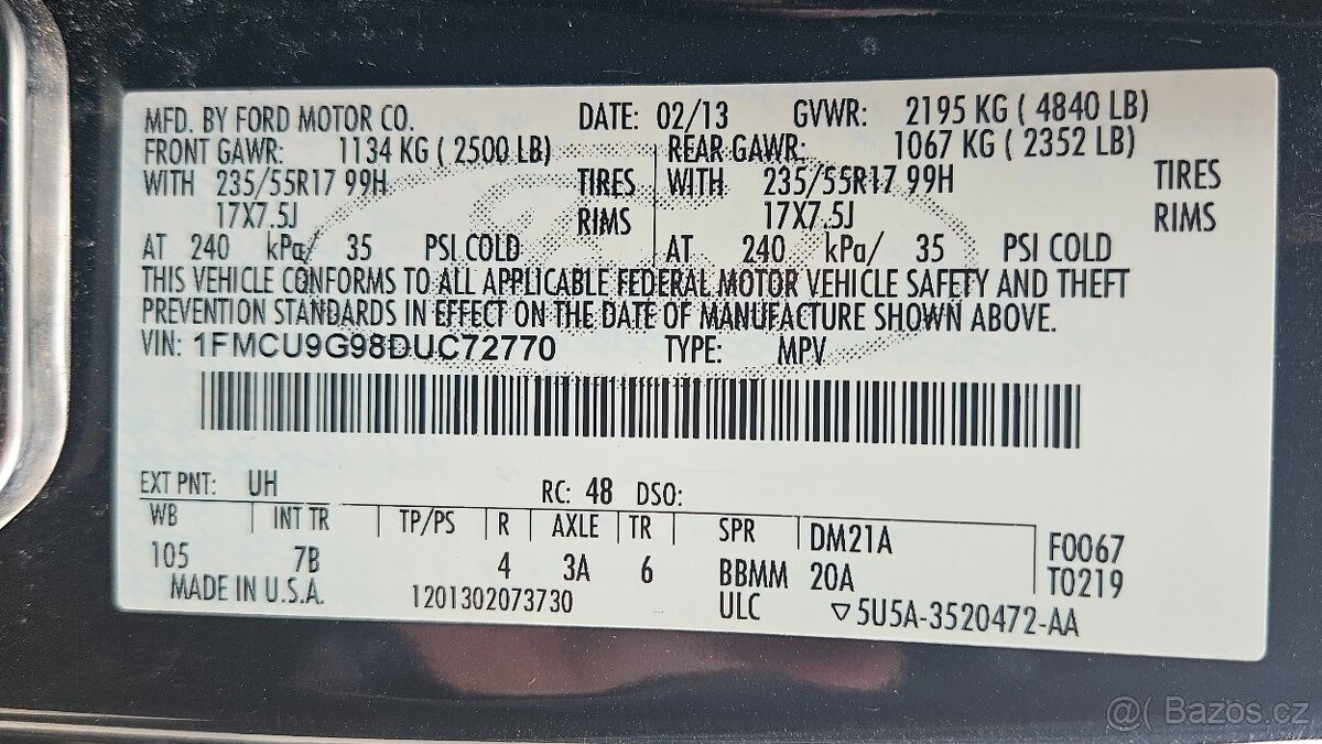 | Doplňující popis: | První majitel, TEL: 603555518 OKR: VSETÍN R.v. 2013, dovoz USA. Od 12/2015 první a jediný majitel v ČR, najeto 139tkm. STK do 11/2027. Barva černá. Motor 2.0 EcoBoost 178kW (benzín), 4x4, automat 6 st., manualní klimatizace. Americká verze (Escape), splňuje evropské normy. Servisní knížka, servisováno v autorizovaném servise. Bližší info na telefonu, volat mezi 8.00 - 20.00., | |