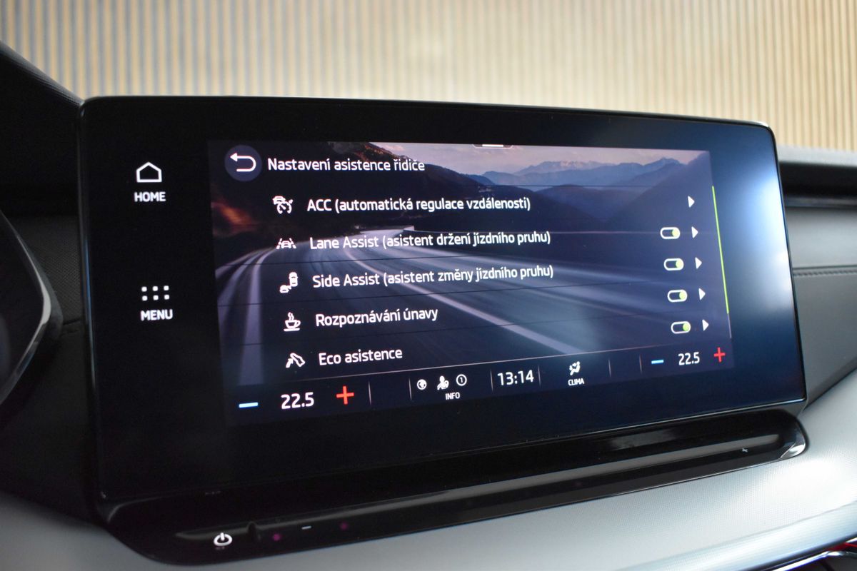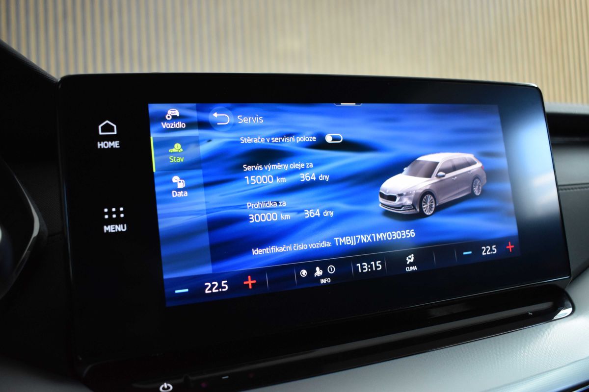 | Nadstandardní výbava: | bluetooth, senzor tlaku v pneumatikách, sledování únavy řidiče, hlídání mrtvého úhlu, imobilizér, bezklíčové startování, start-stop systém, palubní počítač, digitální příjem rádia (DAB), USB, satelitní navigace, digitální přístrojový štít, dotykové ovládání palubního počítače, autorádio, Apple CarPlay, Android Auto, multifunkční volant, nastavitelný volant, klimatizovaná přihrádka, ambientní osvětlení interiéru, zadní loketní opěrka, výškově nastavitelné sedadlo řidiče, výškově nastavitelná sedadla, isofix, zadní stěrač, denní svícení, zadní světla LED, alu kola, el. zrcátka, vyhřívaná zrcátka, el. sklopná zrcátka, senzor stěračů, senzor světel, el. přední okna, el. okna, tónovaná skla, řazení pádly pod volantem, dvouzónová klimatizace, přední světla LED, deaktivace airbagu spolujezdce, centrál dálkový, dělená zadní sedadla, hlasové ovládání palubního počítače, adaptivní tempomat, hands free, parkovací senzory přední, venkovní teploměr, stabilizace podvozku (ESP), protiprokluzový systém kol (ASR), nouzové brzdění (PEBS), aut. zabrzdění v kopci, 7x airbag, přední pohon, aut. převodovka, 7 rychlostních stupňů, asistent jízdy v jízdním pruhu, hlídání jízdního pruhu, ABS, | |