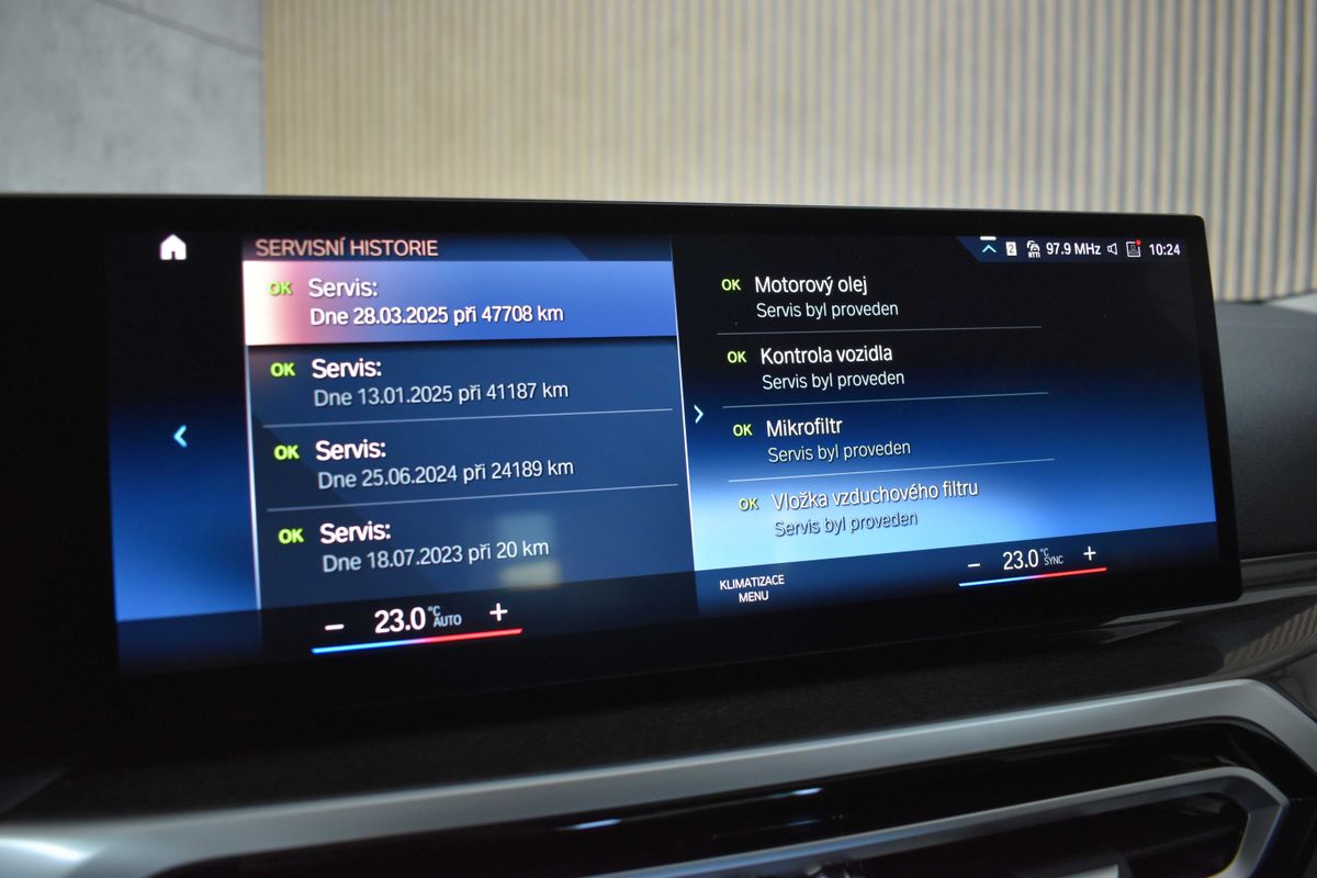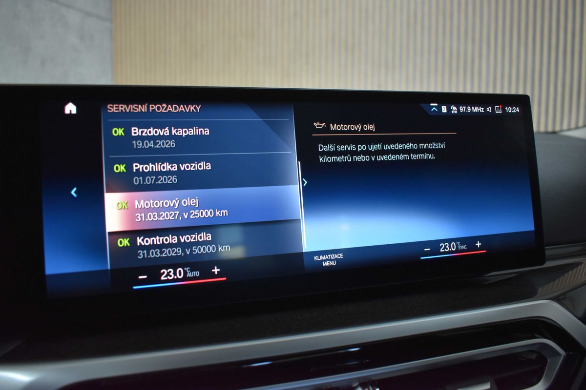 | Doplňující popis: | Vozidlo registrované jako nové v ČR od 1.majitele, vůz v prodloužené tovární záruce BMW do 25.7 2026, k vozu sada letních a zimních kol, s možností odpočtu DPH. Pravidelně servisováno, poslední servisní interval proveden v 47 708 km, historie vozidla prověřena společností CEBIA, na vyžádání lze zaslat Cebia report mailem, z volitelné výbavy: Driving asistant, akustická izolace předních bočních oken, asistent dálkových světlometů, Parking asistant, ambientní osvětlení, vyhřívání volantu, elektricky nastavitelná bederní opěrka, sportovní přední sedadla, vyhřívání předních sedadel, elektricky ovládané sklenění střešní okno, nezávislé topení, HiFi systém - 10 reproduktorů, přihrádka pro bezdrátové dobíjení, komfortní přístupový systém, zpětné zrcátko s automatickou clonou, nastavitelný multifunkční volant, elektricky nastavitelné zpětné zrcátka, automatická 3 zónová klimatizace, stěrače s dešťovým senzorem, integrace mobilního telefonu. Tato nabídka má pouze informativní charakter a neslouží jako podklad pro uzavření objednávky. STOP CARS s.r.o. si vyhrazuje právo uzavření všech smluvních vztahů písemně. | |