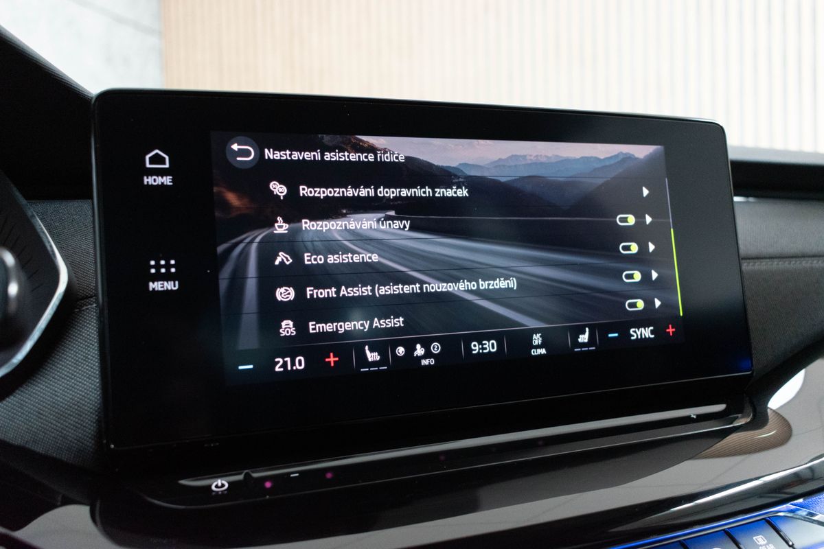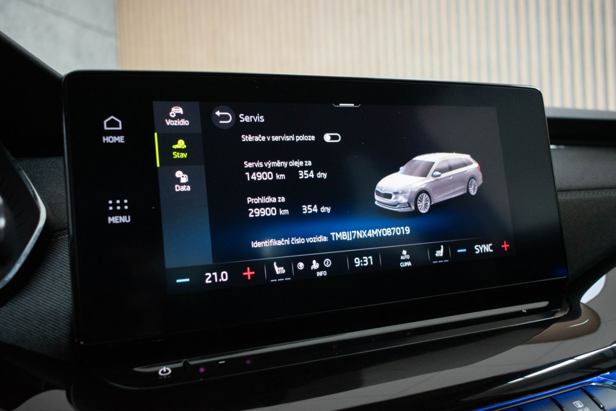 | Nadstandardní výbava: | bluetooth, sledování únavy řidiče, hlídání mrtvého úhlu, automatické parkování, elektronická ruční brzda, bezklíčové odemykání, bezklíčové startování, start-stop systém, palubní počítač, digitální příjem rádia (DAB), USB, digitální přístrojový štít, dotykové ovládání palubního počítače, autorádio, bezdrátová nabíječka mobilních telefonů, Apple CarPlay, Android Auto, multifunkční volant, vyhřívaný volant, nastavitelný volant, klimatizovaná přihrádka, ambientní osvětlení interiéru, zadní loketní opěrka, paměť nastavení sedadla řidiče, vyhřívaná sedadla, isofix, zadní stěrač, denní svícení, zadní světla LED, ostřikovače světlometů, automatické přepínání dálkových světel, mlhovky, alu kola, el. zrcátka, vyhřívaná zrcátka, el. sklopná zrcátka, senzor stěračů, senzor světel, el. přední okna, el. okna, vyhřívané přední sklo, el. víko zavazadlového prostoru, centrální zamykání, řazení pádly pod volantem, střešní nosič, dvouzónová klimatizace, LED adaptivní světlomety, deaktivace airbagu spolujezdce, centrál dálkový, dělená zadní sedadla, head-up display, hlasové ovládání palubního počítače, adaptivní tempomat, parkovací senzory zadní, tažné zařízení, sportovní podvozek, posilovač řízení, stabilizace podvozku (ESP), protiprokluzový systém kol (ASR), EDS, nouzové brzdění (PEBS), asistent stability přívěsu (TSA), aut. zabrzdění v kopci, 7x airbag, přední pohon, aut. převodovka, plní 'EURO VI', autochladnička, ABS, | |