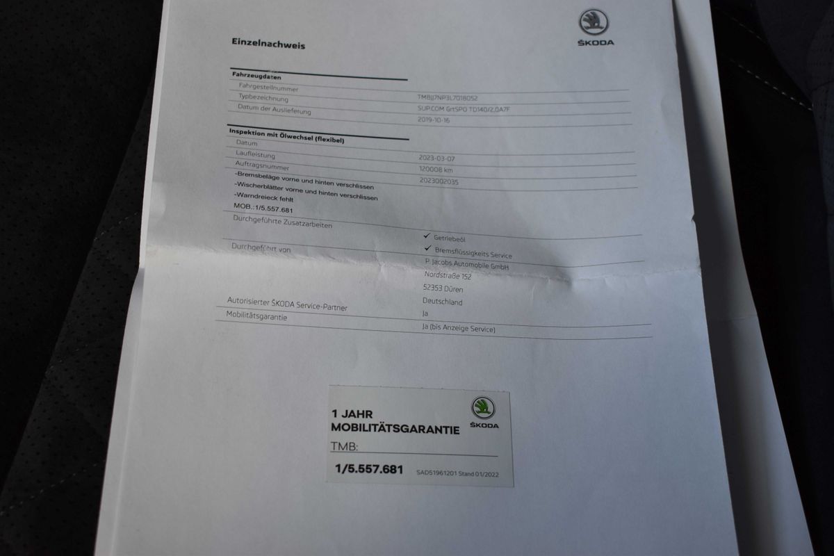 | Doplňující popis: | Vozidlo registrované jako nové v Německu, pravidelně servisováno, příští servisní interval za 22 200 km, ve 120 000 km provedena výměna oleje v DSG + výměna brzdové kapaliny, historie vozidla prověřena společností CEBIA, na vyžádání lze zaslat Cebia report mailem, z volitelné výbavy: Panoramatická střecha, Vyhřívané čelní sklo, Business Columbus, KESSY - bezklíčové odemykání vozu a start motoru., alarm a SAFE system, FRONT ASSIST - adaptivní tempomat do 210km/h, Vyhřívání předních a zadních sedadel s oddělenou regulací, S vyhřívanými tryskami ostřikovače skla, Kožený multifunkční volant, vyhřívaný s Tiptronic, Vnitřní zpětné zrcátko automaticky odcloněné, Climatronic ( 3-zóny) s ovladačem vzadu, Přídavné tlumení vnějšího hluku, 7-stupňová automatická převodovka, Sport-komfortní sedadla vpředu, Navigační přístroj-High, El. seřizování obou předních sedadel s pamětí, Sportovní nárazník, LED- Hlavní světlomety s natočením v zatáčkách (spec. zesílená sig.denních světlel), Čelní asistent včetně City ANB pro aktivní tempomat high. Tato nabídka má pouze informativní charakter a neslouží jako podklad pro uzavření objednávky. STOP CARS s.r.o. si vyhrazuje právo uzavření všech smluvních vztahů písemně. | |