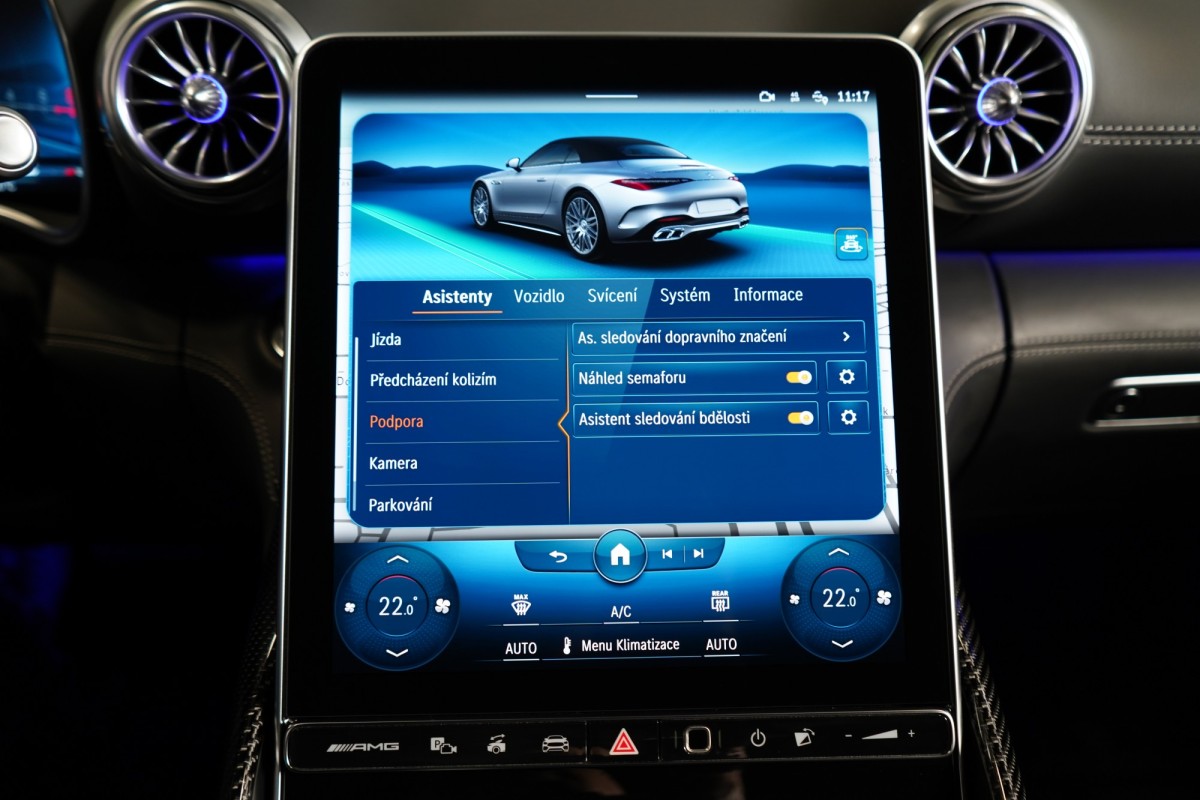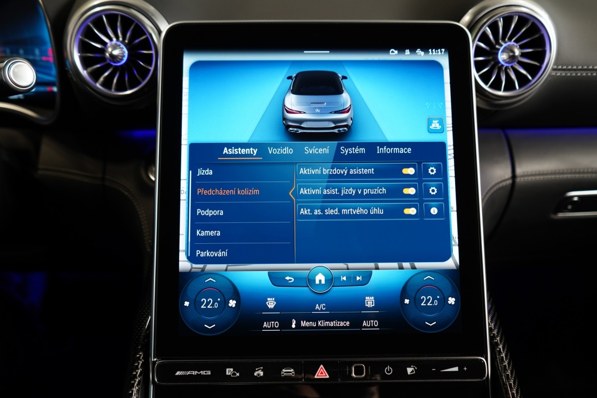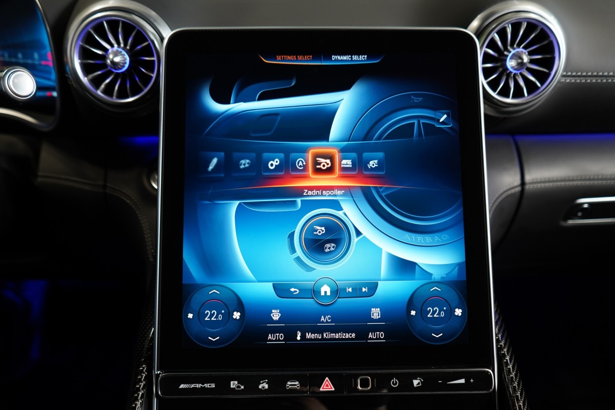 | Doplňující popis: | AS261867 Záruka: Prodloužená záruka na 4 roky / 200 000 km Výbava: Barva: Bílá opalith – metalický lak Čalounění: Kůže/nappa/semianilin černá/anthracite 20 dvoupaprsková kola AMG Vysoce výkonná brzdová soustava AMG Plus se žlutými třmeny Apple CarPlay, Android Auto Tempomat s regulací odstupu Plus (DISTRONIC PLUS) Řízení zadní nápravy Palubní kamera Aktivní parkovací asistent Aktivní asistent jízdního pruhu (kamera) Vnitřní a vnější zrcátka s automatickou změnou odrazivosti Track Pace Zadní snímače pro asistenta jízdy v pruzích Příčná podpora DISTRONIC PLUS (DTR+Q) Přední senzory pro monitoring křižovatek Paměťová sada (sedadlo řidiče, sloupek řízení a zrcátka) PRE,SAFE® Světlomety LED digitální Držák nápojů Skener otisku prstu Personalizace zvuku Zapínatelný zvuk motoru Systém tísňového volání eCall Multikonturové sedadlo vpředu s masážní funkcí Klimatizace předních sedadel Systém Airscarf vpředu Automatická 9stupňová převodovka Head,Up displej Vyhřívaný multifunkční volant Elektronická uzávěrka diferenciálu Semiaktivní stabilizace jízdy (Semi ARS) Kontrola tlaku v pneumatikách (RDK) USB Vnější zpětná zrcátka, elektricky sklopná Kamera 360° Rozpoznávání dopravních značek Digitální rádio se standardem DAB Automatická regulace rychlosti Automatická klimatizace s 2zónovou regulací Projekce loga přes podélník Zatmavené světlomety Vnitřní obložení střechy, mikrovlákno, černá Automatické zapínání dálkových světel Plus (IHC+) Plně elektrická přepážka zavazadlového prostoru Tkanina skládací střechy červená Milan Bezdotykové ovládání gesty vpředu Nápisy a logo MB v černé barvě Soundsystém Burmester MAGIC VISION CONTROL včetně vyhřívaných ostřikovačů Komfortní zavírání víka zavazadlového prostoru KEYLESS Ambientní osvětlení Premium ISOFIX Bezdrátové nabíjení telefonu v přední části Paket Aerodynamik AMG Ozdobné prvky, karbon s vysokým leskem Aktivní asistent změny jízdního pruhu Rozšířené rozjíždění při provozu Stop,And,Go Volant AMG,kůže Nappa Vozidlo s 4MATIC / pohonem všech kol Parkovací paket Paket zrcátek Exteriérový Night paket AMG Paměťová sada vpředu Sada AMG Dynamic Plus Sada AMG Night II Navigace MBUX Premium Augmented Reality Video Prahové lišty osvětlené Tlačítka na volantu AMG (AMG DRIVE UNIT) | |