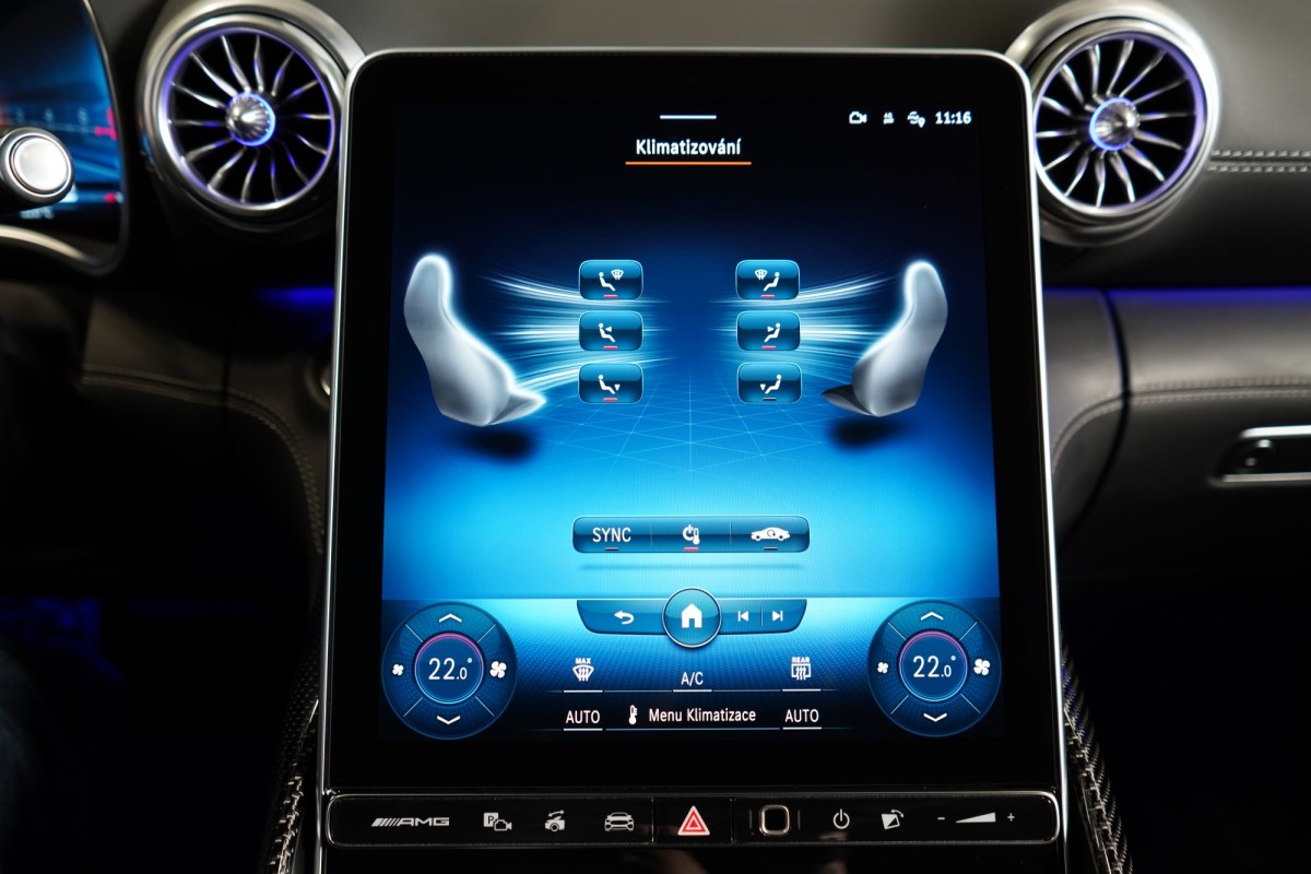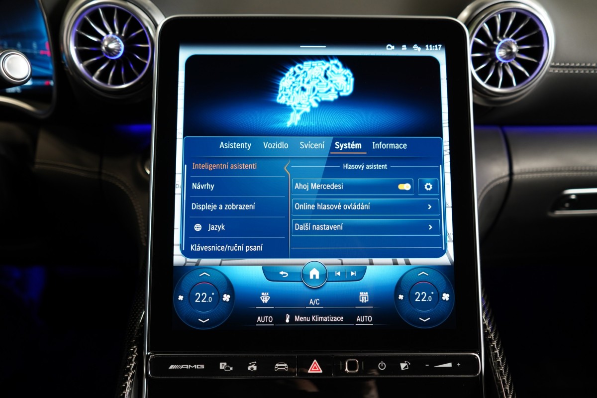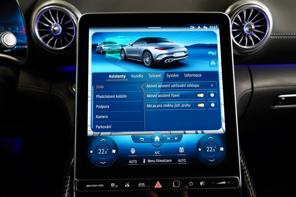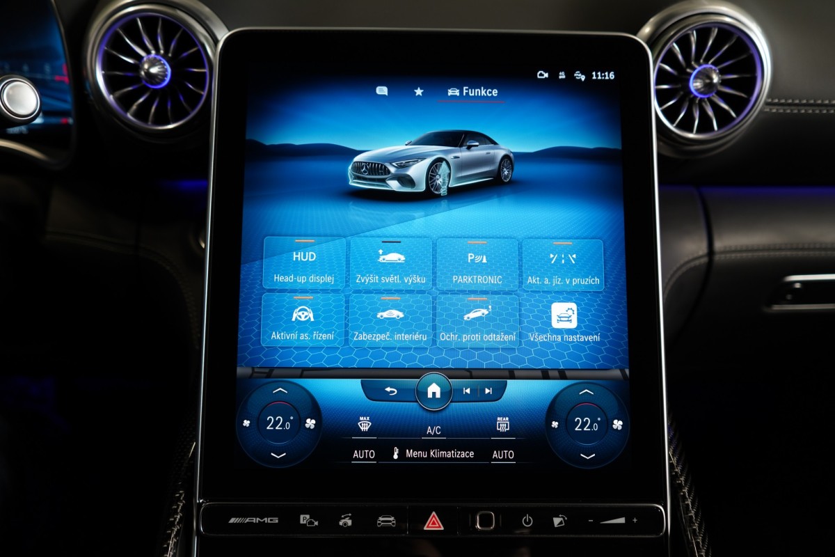 | Doplňující popis: | AS261867 Záruka: Prodloužená záruka na 4 roky / 200 000 km Výbava: Barva: Bílá opalith – metalický lak Čalounění: Kůže/nappa/semianilin černá/anthracite 20 dvoupaprsková kola AMG Vysoce výkonná brzdová soustava AMG Plus se žlutými třmeny Apple CarPlay, Android Auto Tempomat s regulací odstupu Plus (DISTRONIC PLUS) Řízení zadní nápravy Palubní kamera Aktivní parkovací asistent Aktivní asistent jízdního pruhu (kamera) Vnitřní a vnější zrcátka s automatickou změnou odrazivosti Track Pace Zadní snímače pro asistenta jízdy v pruzích Příčná podpora DISTRONIC PLUS (DTR+Q) Přední senzory pro monitoring křižovatek Paměťová sada (sedadlo řidiče, sloupek řízení a zrcátka) PRE,SAFE® Světlomety LED digitální Držák nápojů Skener otisku prstu Personalizace zvuku Zapínatelný zvuk motoru Systém tísňového volání eCall Multikonturové sedadlo vpředu s masážní funkcí Klimatizace předních sedadel Systém Airscarf vpředu Automatická 9stupňová převodovka Head,Up displej Vyhřívaný multifunkční volant Elektronická uzávěrka diferenciálu Semiaktivní stabilizace jízdy (Semi ARS) Kontrola tlaku v pneumatikách (RDK) USB Vnější zpětná zrcátka, elektricky sklopná Kamera 360° Rozpoznávání dopravních značek Digitální rádio se standardem DAB Automatická regulace rychlosti Automatická klimatizace s 2zónovou regulací Projekce loga přes podélník Zatmavené světlomety Vnitřní obložení střechy, mikrovlákno, černá Automatické zapínání dálkových světel Plus (IHC+) Plně elektrická přepážka zavazadlového prostoru Tkanina skládací střechy červená Milan Bezdotykové ovládání gesty vpředu Nápisy a logo MB v černé barvě Soundsystém Burmester MAGIC VISION CONTROL včetně vyhřívaných ostřikovačů Komfortní zavírání víka zavazadlového prostoru KEYLESS Ambientní osvětlení Premium ISOFIX Bezdrátové nabíjení telefonu v přední části Paket Aerodynamik AMG Ozdobné prvky, karbon s vysokým leskem Aktivní asistent změny jízdního pruhu Rozšířené rozjíždění při provozu Stop,And,Go Volant AMG,kůže Nappa Vozidlo s 4MATIC / pohonem všech kol Parkovací paket Paket zrcátek Exteriérový Night paket AMG Paměťová sada vpředu Sada AMG Dynamic Plus Sada AMG Night II Navigace MBUX Premium Augmented Reality Video Prahové lišty osvětlené Tlačítka na volantu AMG (AMG DRIVE UNIT) | |