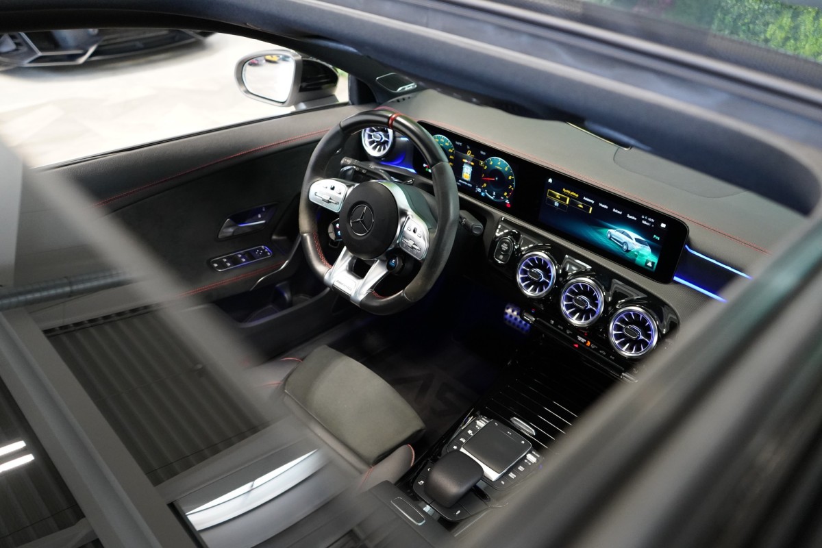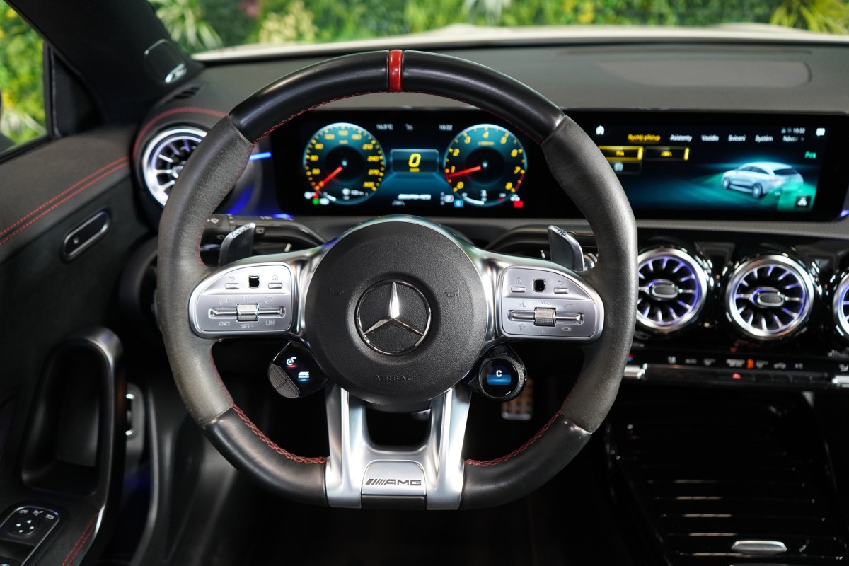 | Doplňující popis: | AS261821 Výbava: Barva: Bílá polar Čalounění: Tkanina / syntetická kůže / mikrovlákno – černá/antracit 19 kola AMG v dvoupaprskovém designu Červeně lakované brzdové třmeny AMG Sada pro integrování smartphonu Apple CarPlay, Android Auto Zpětná kamera Přední a zadní parkovací senzory Palubní kamera Aktivní parkovací asistent Aktivní asistent jízdního pruhu (kamera) Sada AMG Driver Vnitřní zpětné zrcátko s automatickou změnou odrazivosti Track Pace Varování před kolizí s aktivním brzdným zásahem FCW Stop Dešťový senzor Systém tísňového volání eCall Panoramatické posuvné skleněné střešní okno Dvouspojková převodovka automatická 8stupňová Tempomat Touchpad Ocelové odpružení s nastavitelným tlumením Kontrola tlaku v pneumatikách Vnější zpětná zrcátka, elektricky sklopná Rozpoznávání dopravních značek Vnitřní čalounění stropu látkové černé Digitální rádio se standardem DAB Tažné zařízení Automatická klimatizace Světlomety LED dynamické Automatické zapínání dálkových světel Plus (IHC+) Soundsystém Burmester Sklo s tmavým tónováním Vyhřívaná sedadla vpředu Ambientní osvětlení Elektrické víko zavazadlového prostoru ISOFIX Volič jízdních režimů AGILITY SELECT Vozidlo s 4MATIC / pohonem všech kol Navigace MBUX Plus Parkovací paket Paket zrcátek Augmented Reality Video 12V zásuvka v zavazadlovém prostoru Paket komfortních sedadel Tlačítka na volantu AMG (AMG DRIVE UNIT) | |