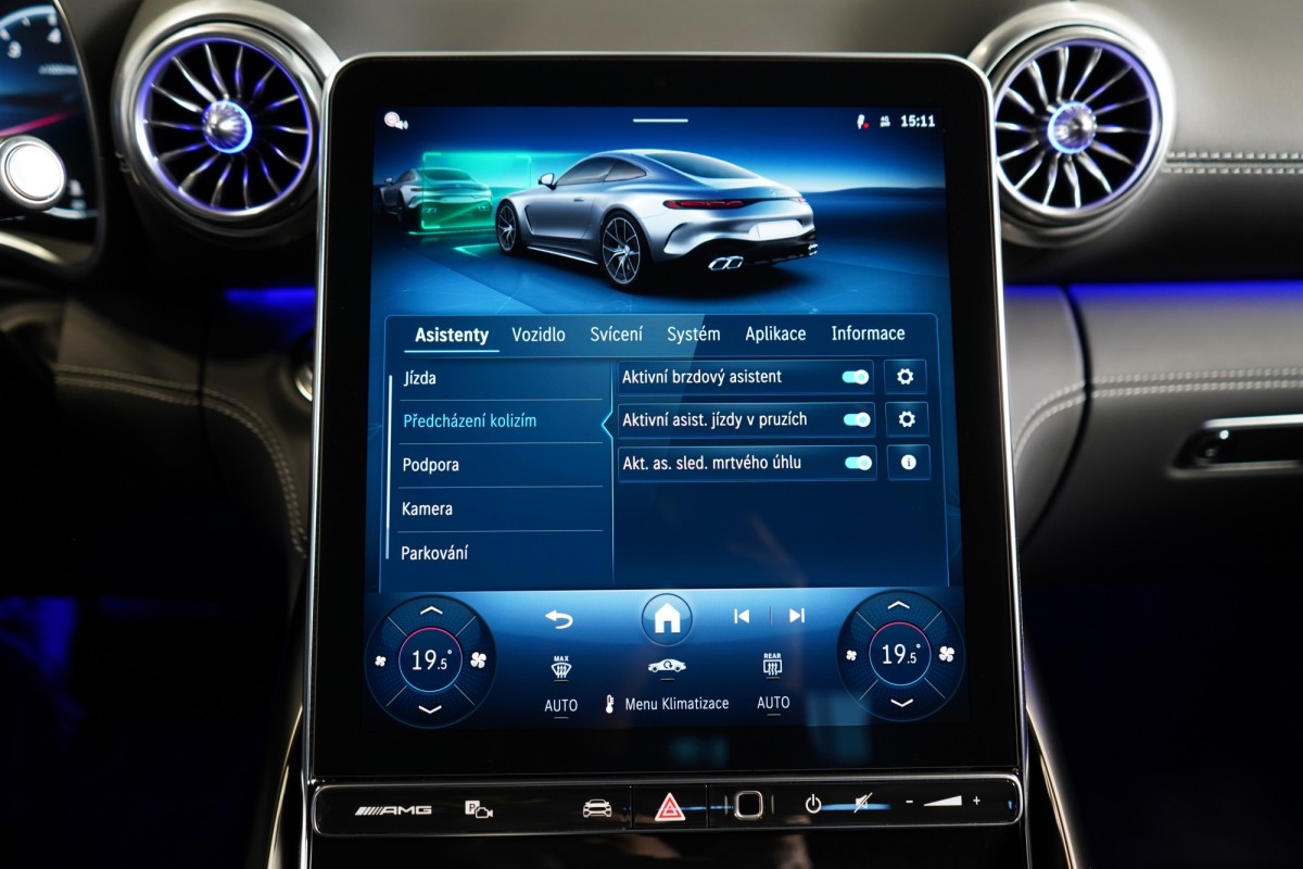 | Doplňující popis: | AS261857 Záruka: Vůz je v plnohodnotné tovární záruce Výbava: Barva: Šedá selenite – metalický lak Čalounění: Kůže/nappa/semianilin černá/anthracite 21 dvoupaprsková kola AMG Žlutě lakované brzdové třmeny AMG Apple CarPlay, Android Auto Řízení zadní nápravy Tempomat s regulací odstupu Plus (DISTRONIC PLUS) Aktivní parkovací asistent Aktivní asistent jízdního pruhu (kamera) Vnitřní a vnější zrcátka s automatickou změnou odrazivosti Track Pace Zadní snímače pro asistenta jízdy v pruzích Příčná podpora DISTRONIC PLUS (DTR+Q) Přední senzory pro monitoring křižovatek Paměťová sada (sedadlo řidiče, sloupek řízení a zrcátka) PRE,SAFE® Držák nápojů Světlomety LED digitální Skener otisku prstu Personalizace zvuku Zapínatelný zvuk motoru Systém tísňového volání eCall Multikonturové sedadlo vpředu s masážní funkcí Vysoce výkonná brzdová soustava AMG Plus Klimatizace předních sedadel Pevná panoramatická skleněná střecha Automatická 9stupňová převodovka Funkce projekce přes světlomety Head,Up displej Vyhřívaný multifunkční volant Elektronická uzávěrka diferenciálu Semiaktivní stabilizace jízdy (Semi ARS) Kontrola tlaku v pneumatikách (RDK) Multimediální systém MBUX Premium včetně videostreamingu Vnější zpětná zrcátka, elektricky sklopná Kamera 360° Rozpoznávání dopravních značek Digitální rádio se standardem DAB Automatická regulace rychlosti Zadní sedadla pro roadster (2+2 sedadla) Automatická klimatizace s 2zónovou regulací Projekce loga přes podélník Vnitřní obložení střechy, mikrovlákno, černá Automatické zapínání dálkových světel Plus (IHC+) Paket USB Nápisy a logo MB v černé barvě Soundsystém Burmester Sklo s tmavým tónováním Hands,free access MAGIC VISION CONTROL včetně vyhřívaných ostřikovačů KEYLESS Elektrické víko zavazadlového prostoru Ambientní osvětlení Premium Přístup a autorizace vozidla prostřednictvím smartphonu Bezdrátové nabíjení telefonu v přední části ISOFIX Ozdobné prvky, černý chrom Aktivní asistent změny jízdního pruhu Rozšířené rozjíždění při provozu Stop,And,Go Přizpůsobení rychlosti v závislosti na trase Záchranářská ulička s přejetím označení jízdního pruhu Asistent nouzového zastavení s varováním hands,off při změně jízdního pruhu Volant AMG,kůže Nappa Vozidlo s 4MATIC / pohonem všech kol Sada jízdních asistentů Parkovací paket Paket zrcátek Exteriérový Night paket AMG Paměťová sada vpředu Sada AMG Dynamic Plus Sada AMG Night II Navigace MBUX Premium Augmented Reality Video 12V zásuvka v zavazadlovém prostoru Tlačítka na volantu AMG (AMG DRIVE UNIT) | |