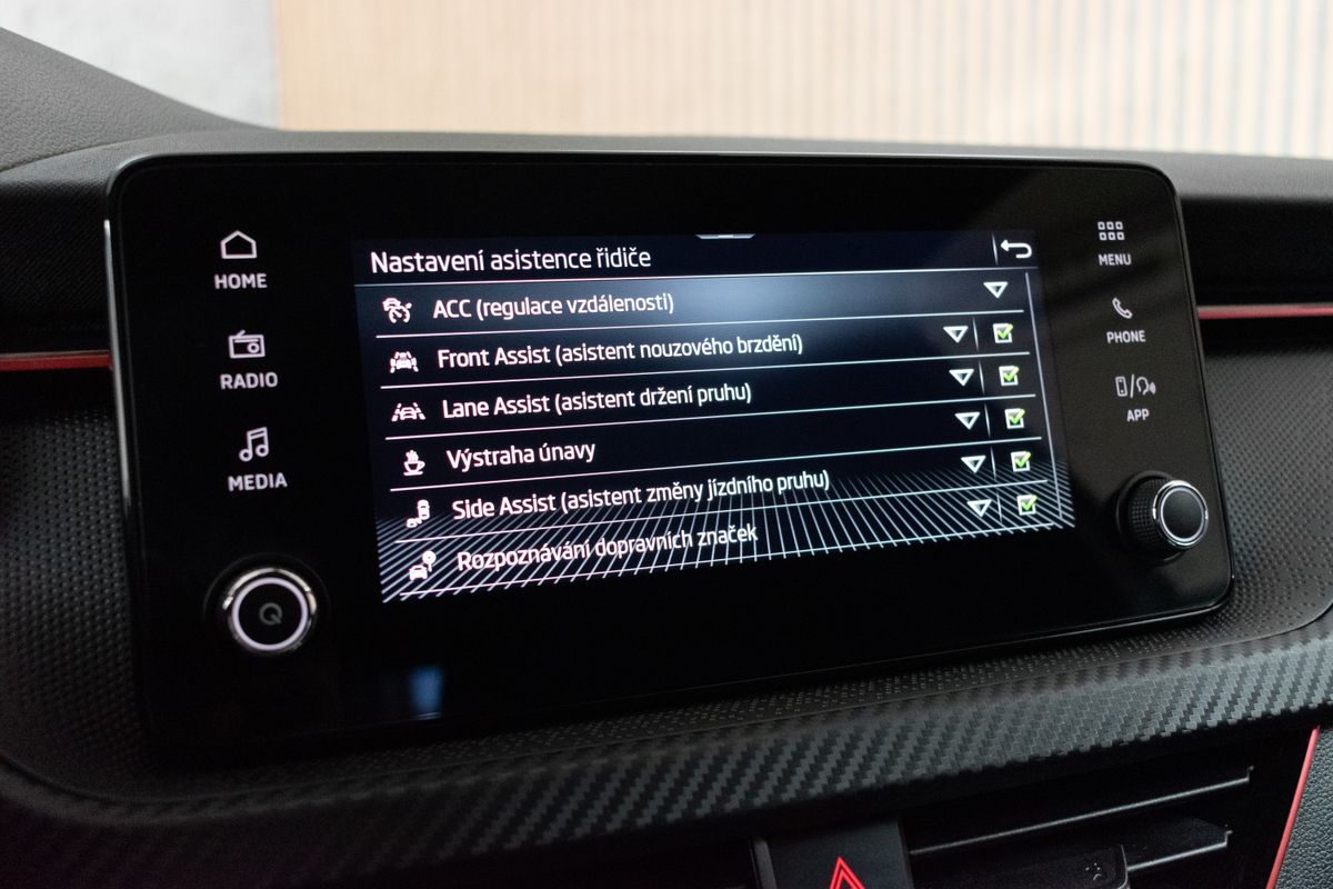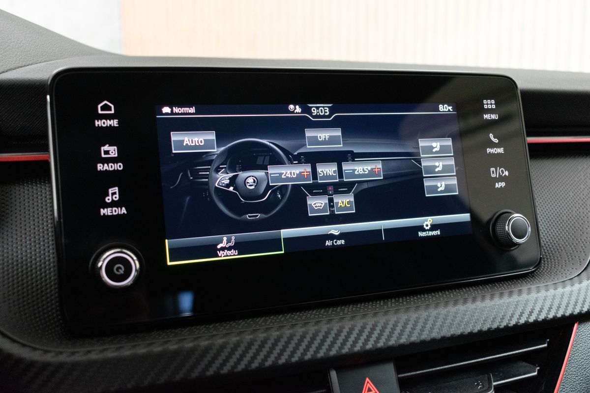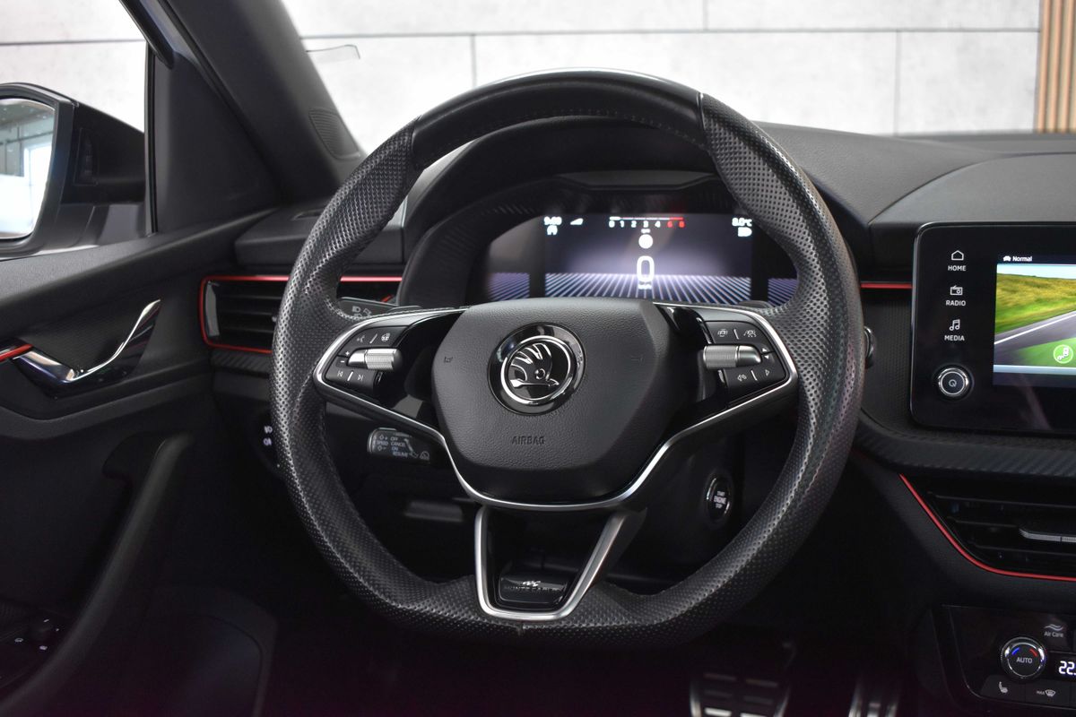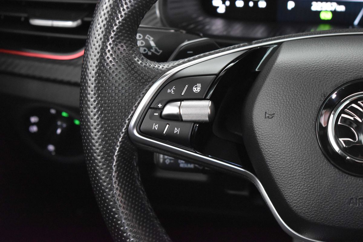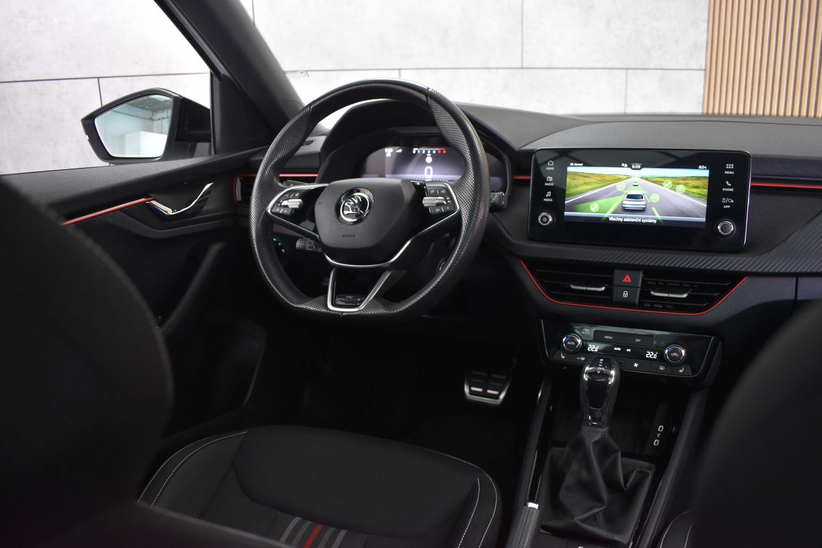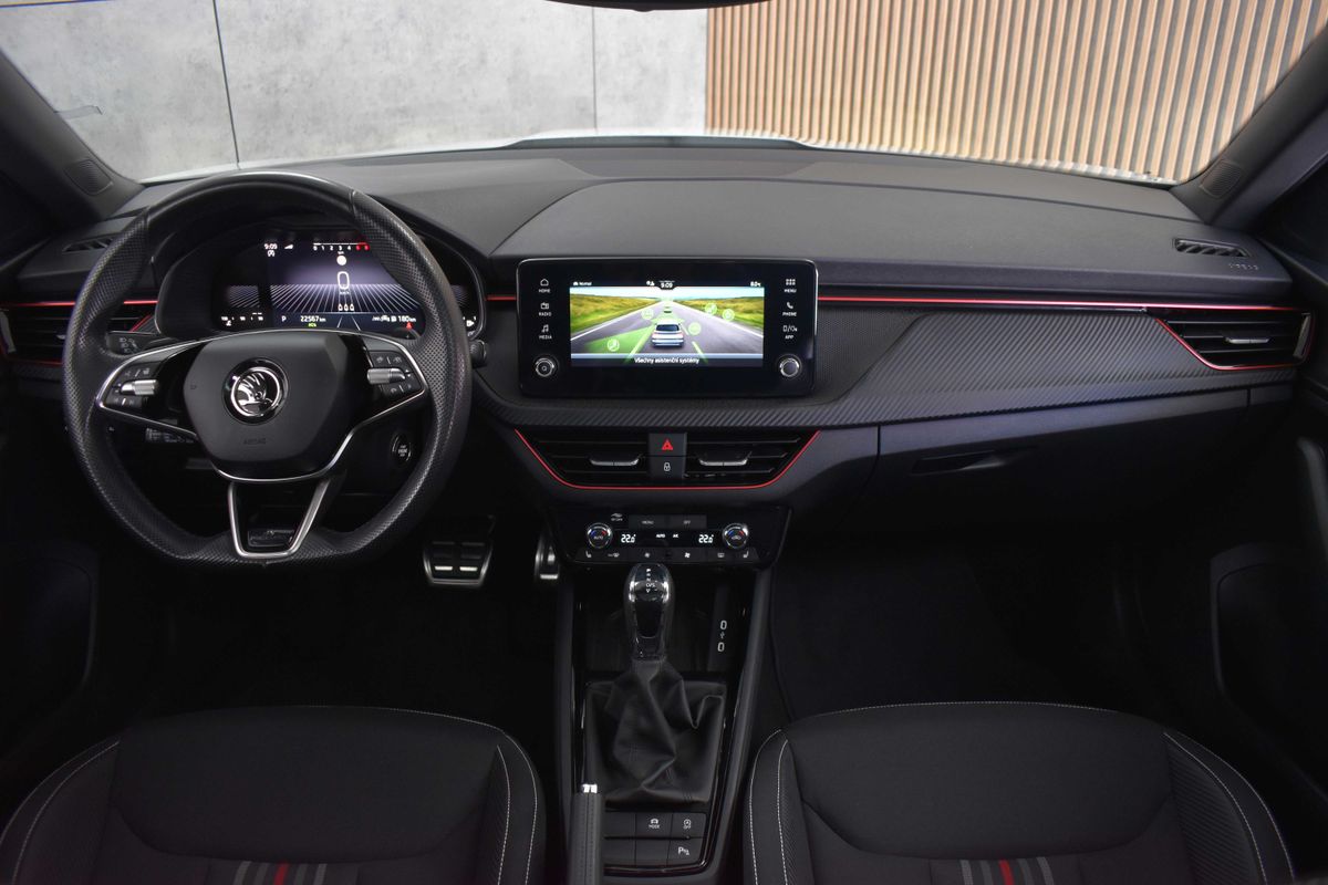 | Nadstandardní výbava: | bluetooth, senzor tlaku v pneumatikách, sledování únavy řidiče, hlídání mrtvého úhlu, bezklíčové odemykání, bezklíčové startování, start-stop systém, palubní počítač, digitální příjem rádia (DAB), USB, digitální přístrojový štít, dotykové ovládání palubního počítače, autorádio, bezdrátová nabíječka mobilních telefonů, Apple CarPlay, Android Auto, multifunkční volant, vyhřívaný volant, nastavitelný volant, ambientní osvětlení interiéru, zadní loketní opěrka, výškově nastavitelné sedadlo řidiče, výškově nastavitelná sedadla, vyhřívaná sedadla, sportovní sedadla, isofix, zadní stěrač, denní svícení, zadní světla LED, automatické přepínání dálkových světel, mlhovky, alu kola, el. zrcátka, vyhřívaná zrcátka, el. sklopná zrcátka, senzor stěračů, senzor světel, el. přední okna, el. okna, tónovaná skla, vyhřívané přední sklo, řazení pádly pod volantem, dvouzónová klimatizace, panoramatická střecha, přední světla LED, deaktivace airbagu spolujezdce, centrál dálkový, dělená zadní sedadla, hlasové ovládání palubního počítače, adaptivní tempomat, hands free, parkovací senzory přední, venkovní teploměr, posilovač řízení, stabilizace podvozku (ESP), protiprokluzový systém kol (ASR), nouzové brzdění (PEBS), 6x airbag, přední pohon, aut. převodovka, 7 rychlostních stupňů, asistent jízdy v jízdním pruhu, hlídání jízdního pruhu, ABS, | |
