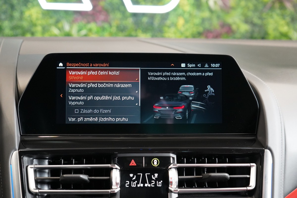 | Doplňující popis: | AS261882 Výbava: Barva: Černá Sapphire, metalický lak Čalounění: BMW Individual kůže Merino Fiona Red / Black 20” disky kol BMW Individual Modré brzdové třmeny s logem M M sportovní paket BMW Laserové světlomety LED denní svícení Asistent dálkových světel Komfortní přístupový systém Automatické měkké zavírání dveří, Soft Close Harman/Kardon Surround Sound System Elektricky nastavitelná sedadla s paměťovou funkcí Asistent sledování mrtvého úhlu Elektrické víko zavazadlového prostoru Deflektor, látkový M sportovní multifunkční volant Adaptivní tempomat s regulací odstupu Head,Up displej Senzor světel Skleněné prvky interiéru CraftedClarity Systém Airscarf vpředu Volič jízdních režimů Elektricky nastavitelná bederní opěrka vpředu ISOFIX Pádla řazení pod volantem BMW Live Cockpit Professional DAB tuner (digitální příjem rádia) Apple CarPlay, Android Auto Vyhřívaná a ventilovaná přední sedadla Varování před čelní kolizí Varování před bočním nárazem Varování při opuštění jízdního pruhu Varování při změně jízdního pruhu Varování o přednosti v jízdě Ambientní osvětlení Nezávislá ventilace Satelitní navigace 360° kamery Přední a zadní parkovací senzory | |