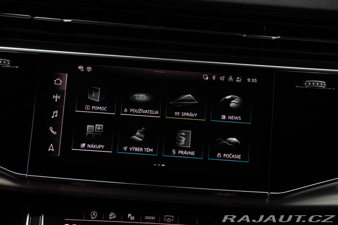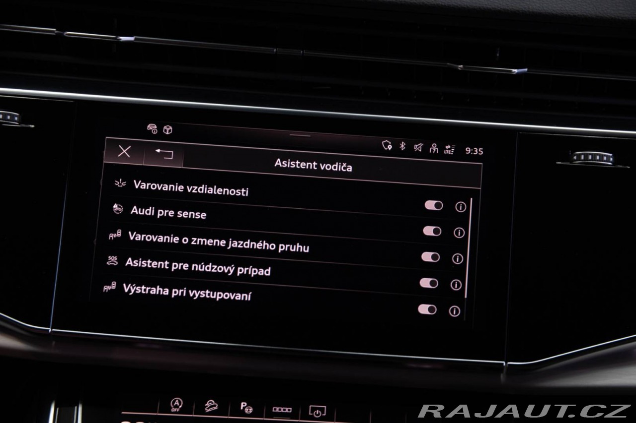 | Nadstandardní výbava: | Výbava: ABS, Adaptívny tempomat, Airbagy, Airbagy - počet, Alarm, ASR, Brzdový asistent, Centrálne zamykanie, Deaktivácia airbagov, ESP, Imobilizér, Isofix, Natáčacie svetlomety, Parkovacia kamera, Systém kontroly tlaku v pneumatikách (TPMS), Asistent rozpoznávania dopravných značiek (ISLW/ISLA), Varovanie o vzdialenosti (BAS Plus), Systém rozpoznania únavy vodiča (DAW), Systém tiesňového volania (e-Call), Upozornenie premávky za vozidlom (RCTA), Asistent diaľkových svetiel (HBA), Autorádio, Bezdotykové otváranie kufra, Bezkľúčové štartovanie, Bluetooth handsfree, Diaľkové ovládanie zamykania, Dotykový displej, Elektrické okná, Elektrické sedadlá, Elektrické zrkadlá, Elektrické ovládanie kufra, Klimatizácia, Klimatizovaná priehradka, Kožený interiér, Kožený paket, Lakťová opierka, LED svetlomety, LED svietenie, Multifunkčný volant, Navigačný systém, Palubný počítač, Parkovacie senzory, Parkovací asistent, Posilňovač riadenia, Tempomat, Vyhrievané sedačky, Vyhrievané zrkadlá, Vyhrievaný volant, Vzduchové odpruženie podvozku, Vonkajší teplomer, Apple CarPlay, Android Auto, Welcome light, Virtuálny kokpit, Radenie pod volantom, Bezdrôtové nabíjanie pre smartphony, Ambientné osvetlenie, Asistent jazdných pruhov, Asistent rozjazdu do kopca, Dažďový senzor, Doťahovanie dverí, Hliníkové disky, Hmlovky, Kontrola mŕtveho uhla, Sezónne prezutie, Stop&start systém, Svetelný senzor | |