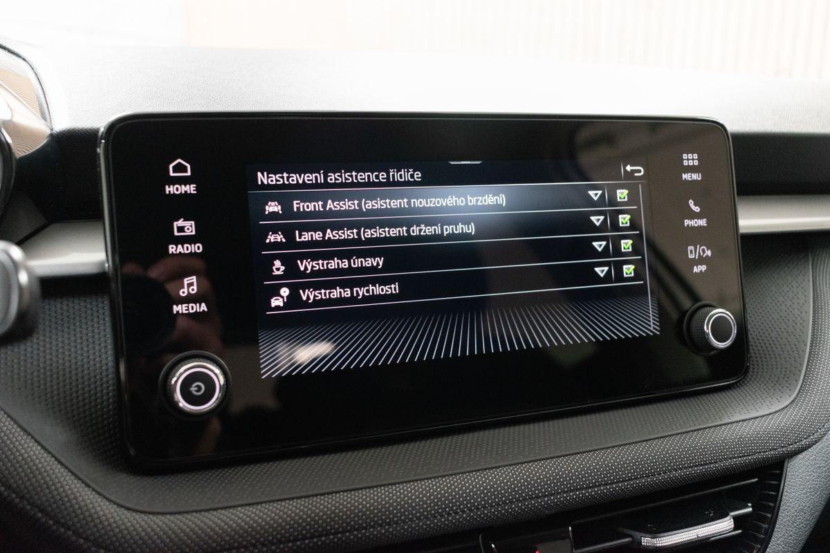 | Nadstandardní výbava: | bluetooth, sledování únavy řidiče, bezklíčové odemykání, bezklíčové startování, start-stop systém, palubní počítač, digitální příjem rádia (DAB), USB, digitální přístrojový štít, dotykové ovládání palubního počítače, autorádio, Apple CarPlay, Android Auto, multifunkční volant, nastavitelný volant, výškově nastavitelné sedadlo řidiče, výškově nastavitelná sedadla, isofix, zadní stěrač, denní svícení, zadní světla LED, mlhovky, alu kola, el. zrcátka, vyhřívaná zrcátka, senzor světel, el. přední okna, el. okna, tónovaná skla, dvouzónová klimatizace, přední světla LED, deaktivace airbagu spolujezdce, centrál dálkový, dělená zadní sedadla, tempomat, hands free, parkovací senzory přední, venkovní teploměr, posilovač řízení, stabilizace podvozku (ESP), protiprokluzový systém kol (ASR), nouzové brzdění (PEBS), 6x airbag, přední pohon, aut. převodovka, 7 rychlostních stupňů, asistent jízdy v jízdním pruhu, hlídání jízdního pruhu, ABS, | |