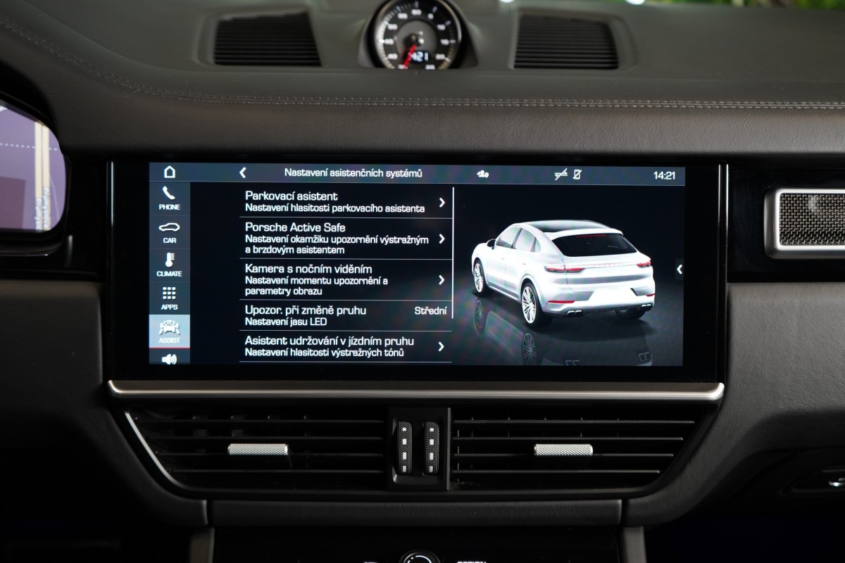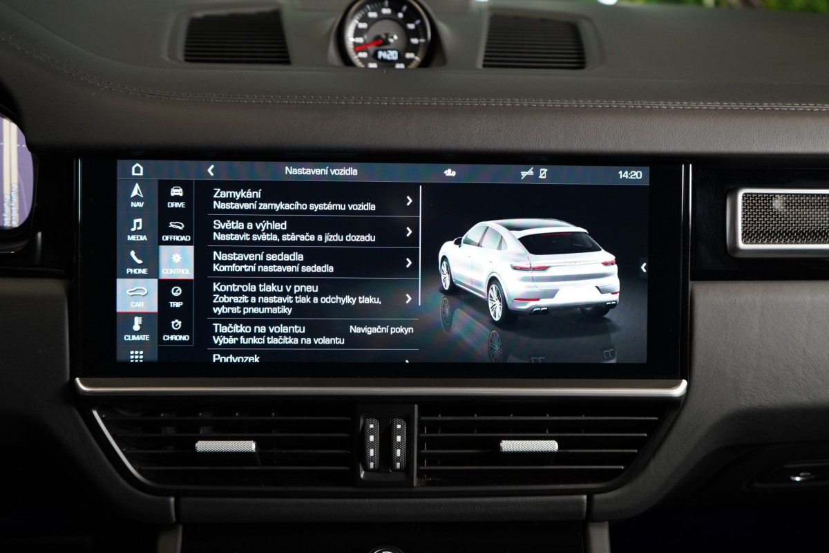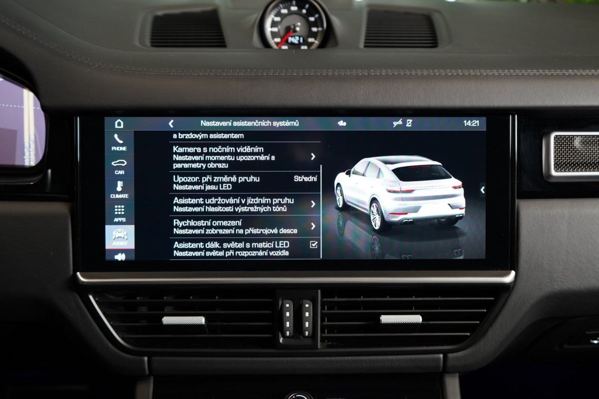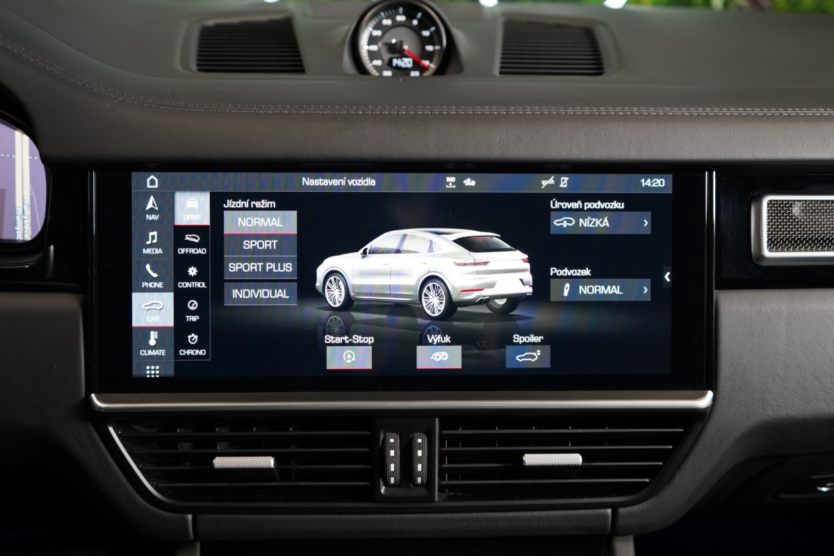 | Doplňující popis: | AS261909 Fólie: Vůz je kompletně potažen matně šedou designovou fólií Výbava: Barva: Jet černá, metalický lak Čalounění: Rozšířený částečně kožený interiér v Černé se středními částmi sedadel v látce Paketem Lightweight Sport 22 kola GT Design Satin Platinum Porsche keramicko,kompozitní brzdy (PCCB) s brzdovými třmeny ve žluté Burmester® 3D High,End Surround Sound System Ambientní osvětlení Asistent pro udržování v jízdních pruzích Automatický parkovací asistent Automaticky stmívatelná vnitřní a vnější zpětná zrcátka Digitální rádio (DAB+) ISOFIX Komfortní sedadla vpředu (18 směrů, elektrické) LED zadní světla včetně světelné lišty Matrix LED hlavní světlomety Multifunkční volant s řadicími pádly a přepínačem režimů ParkAssist včetně Surround View Porsche Dynamic Chassis Control (PDCC) adaptivní podvozek Porsche Entry, přístup bez aktivního použití klíče Nápis Turbo na opěrkách hlavy Porsche InnoDrive včetně aktivního udržování v jízdních pruzích Přední a zadní parkovací senzory Satelitní navigace Sedadlo řidiče s paměťovou funkcí Servozavírání dveří, Soft Close Stropní obložení v materiálu Race,Tex Varování a brzdový asistent včetně ochrany chodců Volant s manuálním nastavením pro výšku a hloubku Volič převodovky v kůži Vyhřívaní předních a zadních sedadel ISOFIX Zadní loketní opěrka Adaptivní vzduchové odpružení s nastavitelnou výškou a tuhostí Elektrické víko zavazadlového prostoru Automatická klimatizace s 4zónovou klimatizací Head,Up displej Čtení dopravních značek určujících rychlost Vyhřívaný multifunkční volant Volič jízdních režimů DAB tuner CD přehrávač Bluetooth Sportovní výfuková soustava s klapkami Asistent nočního vidění 360° kamery Přední a zadní parkovací senzory | |