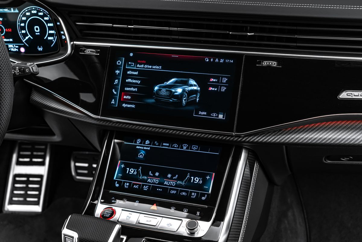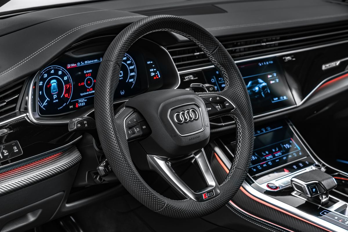 | Doplňující popis: | Na vozidle ochranný polep. Doplňky z Carbonu Akustická skleněná boční okna, tažné zařízení s asistentem pro přívěs, balíček parkovacích asistentů s dálkovým parkovacím asistentem, balíček asistenčních služeb ve městě, klíč Audi connect, rozhraní pro chytrý telefon Audi, elektricky nastavitelná vnější zpětná zrcátka. Nastavitelná, vyhřívaná a sklopná vnější zpětná zrcátka s automatickým stmíváním a pamětí, handsfree systém Bluetooth s rozpoznáváním hlasu (Audi Phone Box), čalounění stropu z Alcantary, čalounění stropu z mikrovlákna Dinamica, černá barva, černé střešní lyžiny, zámky kol, DVD mechanika, paket Dynamic Plus, systém ochrany cestujících na zadních sedadlech Audi pre sense, asistent nočního vidění, vyhřívané akustické čelní sklo, head-up displej, karbonové keprové obložení interiéru, rozšířené kožené prvky interiéru, úchyty Isofix pro dětské sedačky na sedadle spolujezdce, keramické brzdy vpředu a vzadu, modře lakované brzdové třmeny, digitální přístrojový panel (virtuální kokpit plus) s designem RS, světlomety Matrix LED, hliníkový stylingový paket Matný lak, systém pneumatik Performance, sportovní výfukový systém RS, integrovaný vysílač otevírání garážových vrat, centrální zavírání dveří, odvětrávaná a masážní přední sedadla, perforované kožené čalounění Valcona s voštinovým prošíváním a odvětráváním, mechanická sluneční clona pro zadní okno a elektrická sluneční clona pro zadní boční okna, audiosystém Bang & Olufsen, nezávislé topení, RS nárazníky, kompletní lakování, digitální televizní a rádiový příjem (tuner), dva nabíjecí porty USB typu C pro cestující vzadu, tónovaná skla v zadních oknech. Termín prohlídky si prosím předem domluvte. Děkujeme. | |