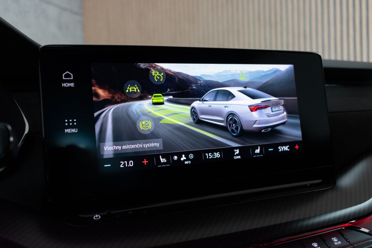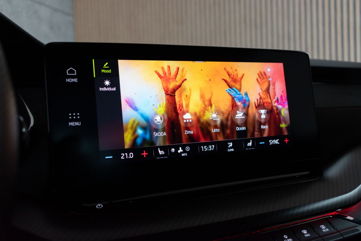 | Nadstandardní výbava: | bluetooth, senzor tlaku v pneumatikách, sledování únavy řidiče, elektronická ruční brzda, bezklíčové odemykání, bezklíčové startování, start-stop systém, palubní počítač, digitální příjem rádia (DAB), USB, satelitní navigace, digitální přístrojový štít, dotykové ovládání palubního počítače, autorádio, Apple CarPlay, Android Auto, multifunkční volant, vyhřívaný volant, nastavitelný volant, ambientní osvětlení interiéru, zadní loketní opěrka, výškově nastavitelné sedadlo řidiče, výškově nastavitelná sedadla, vyhřívaná sedadla, sportovní sedadla, isofix, zadní stěrač, denní svícení, zadní světla LED, automatické přepínání dálkových světel, mlhovky, alu kola, el. zrcátka, vyhřívaná zrcátka, el. sklopná zrcátka, senzor světel, el. přední okna, el. okna, tónovaná skla, vyhřívané přední sklo, el. víko zavazadlového prostoru, dvouzónová klimatizace, deaktivace airbagu spolujezdce, centrál dálkový, dělená zadní sedadla, hlasové ovládání palubního počítače, adaptivní tempomat, hands free, parkovací senzory přední, střešní spoiler, venkovní teploměr, posilovač řízení, stabilizace podvozku (ESP), protiprokluzový systém kol (ASR), nouzové brzdění (PEBS), 7x airbag, přední pohon, manuální převodovka, 6 rychlostních stupňů, plní 'EURO VI', asistent jízdy v jízdním pruhu, hlídání jízdního pruhu, ABS, | |