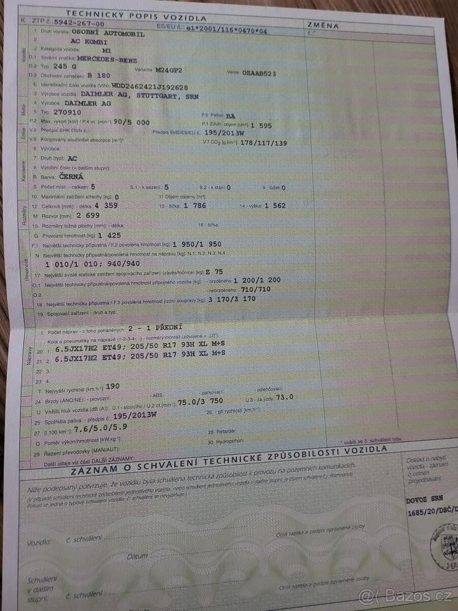 | Doplňující popis: | TEL: 606370116 OKR: NOVÝ JIČÍN Prodám Mercedes-Benz B180 benzin, r.v. 2013, výkon 90kw, nájezd 248tis.km, automat, pravidelný servis, olej v motoru měněn po 15tis.km nebo každý rok, olej v automatu menen po 80tis.km, klimatizace, panoramatická střecha, ambulantní osvětlení interiéru, el.okna, přidám sadu zimních kol na alu discích., | |