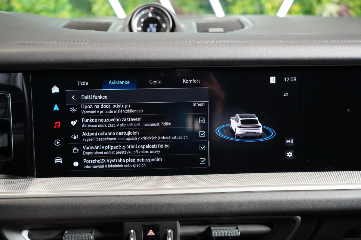 | Doplňující popis: | AS261954 Ochrana: Přední část vozu ochráněna fólií PPF Výbava: Barva: Dolomite stříbrná, metalický lak Čalounění: Kožený interiér Černá kůže s hladkým povrchem 21,palcová kola AeroDesign Červeně lakované brzdové třmeny Vyhřívání sedadel vpředu i vzadu Adaptivní sportovní sedadla vpředu (18 směrů, elektrická) Ventilace sedadel vpředu Příprava pro tažné zařízení Zatmavené HD,Matrix LED světlomety Dekorační prošívání v kontrastní barvě Interiérový paket v hluboce broušeném hliníku Látkové obložení střechy v černé barvě Hasicí přístroj 8,stupňová Tiptronic S Sportovní koncovky výfuku stříbrné Surround View with Active Parking Support Systémy tísňového volání eCall a bCall Head,Up displej Asistent pro změnu jízdního pruhu Porsche InnoDrive včetně aktivního udržování v jízdním pruhu Porsche Entry Čtyřzónová automatická klimatizace Elektrická sluneční clona pro zadní boční okna Displej spolujezdce BOSE® Surround Sound System Sport Chrono Paket Multifunkční volant s pádly pro řazení a přepínačem režimů Sportovní systém zadních sedadel ISOFIX Exteriérový paket Black (vysoký lesk) Spodní kryty vnějších zpětných zrcátek včetně podstavce zrcátek v černé barvě Střešní spoiler v barvě exteriéru Kliky dveří lakované v barvě exteriéru Panoramatická střecha, pevná Příprava pro tažné zařízení Posilovač řízení Plus Adaptivní vzduchové odpružení s vyrovnávacím systémem a nastavením výšky Porsche Active Suspension Management (PASM) 70,litrová palivová nádrž LED zadní světla včetně světelného pásu Automaticky stmívaná interiérová a exteriérová zrcátka Rozpoznávání dopravních značek Varování a asistent brzdění včetně ochrany chodců Driver Awareness Detection Soft,close Ambientní osvětlení Navigace High Přihrádka na chytrý telefon s bezdrátovým nabíjením (až 15 W) Hlasové ovládání DAB rádio Electric Sound | |