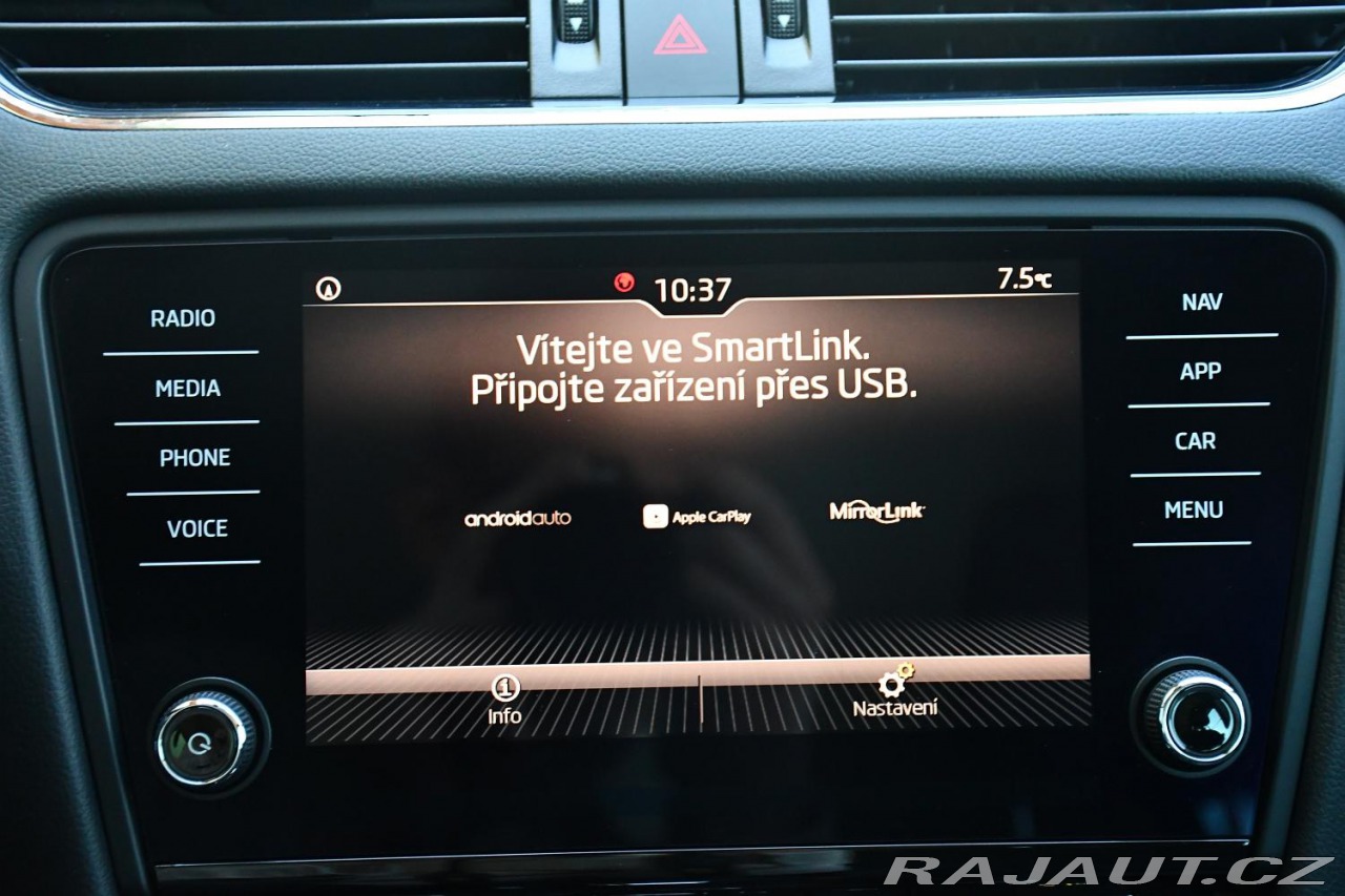 | Nadstandardní výbava: | aut. převodovka, 6x airbag, ABS, brzdový asistent, stabilizace podvozku (ESP), protiprokluzový systém kol (ASR), posilovač řízení, dvouzónová klimatizace, aut. klimatizace, tempomat, LED denní svícení, alu kola, palubní počítač, dotykové ovládání palubního počítače, parkovací senzory přední, parkovací senzory zadní, parkovací asistent, senzor světel, nastavitelný volant, multifunkční volant, deaktivace airbagu spolujezdce, hands free, Android Auto, Apple CarPlay, bluetooth, el. okna, střešní nosič, el. sklopná zrcátka, el. zrcátka, imobilizér, centrál dálkový, centrální zamykání, isofix, výškově nastavitelná sedadla, polohovací sedadla, senzor tlaku v pneumatikách, senzor opotřebení brzdových destiček, přední světla LED, mlhovky, USB, autorádio, venkovní teploměr, vyhřívaná zrcátka, zadní loketní opěrka, vnitřní teploměr, zadní stěrač, tónovaná skla, | |